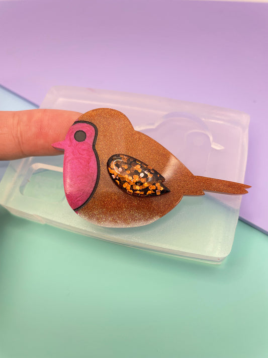 2022 Large 6 cm Layered Robin Brooch Mold with Predomed wing
