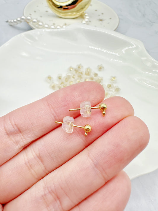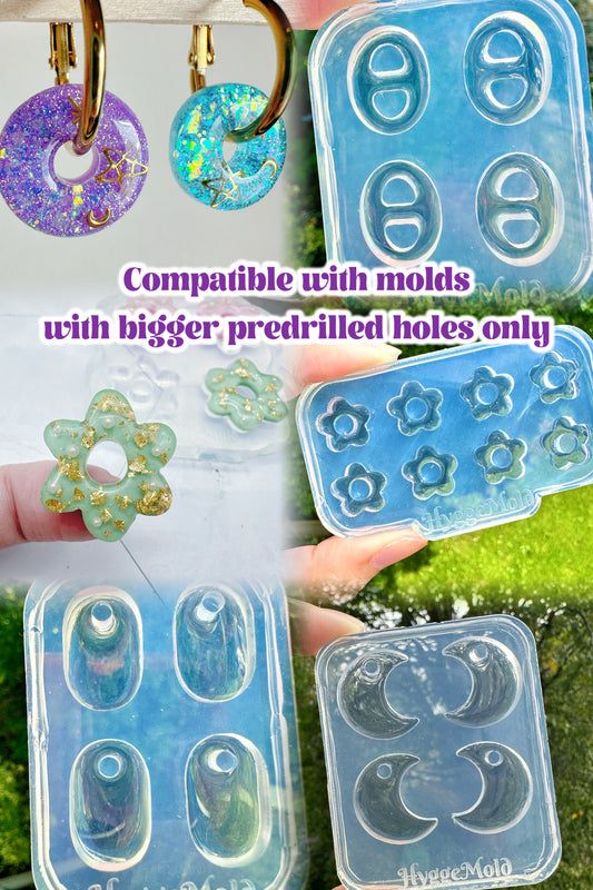 To create your own earrings, you will need earring findings, such as posts, hooks, hoops and jump rings. For studs, simply glue the back of earring posts onto your resin with UV resin or other permanent glue.