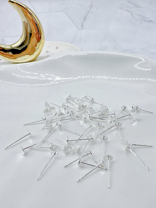 Silver Plated Earring Posts and Flower-shaped Silicone Backs