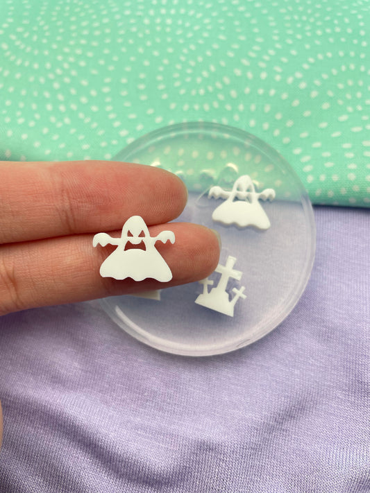 Clear Flexible Silicone Molds to create your own Halloween earrings, such as ghosts, pumpkin, cats, tomb, skull, coffin etc.