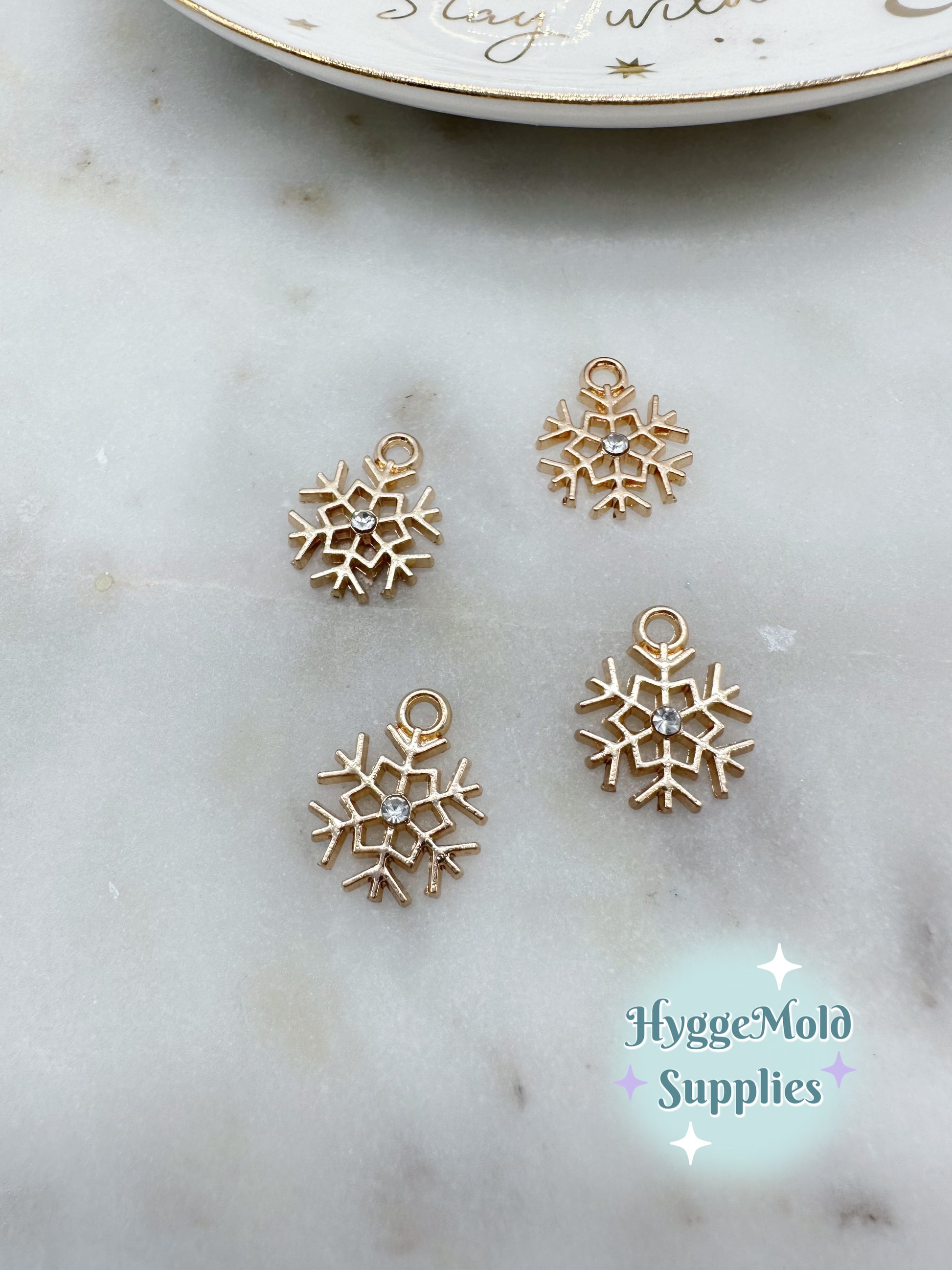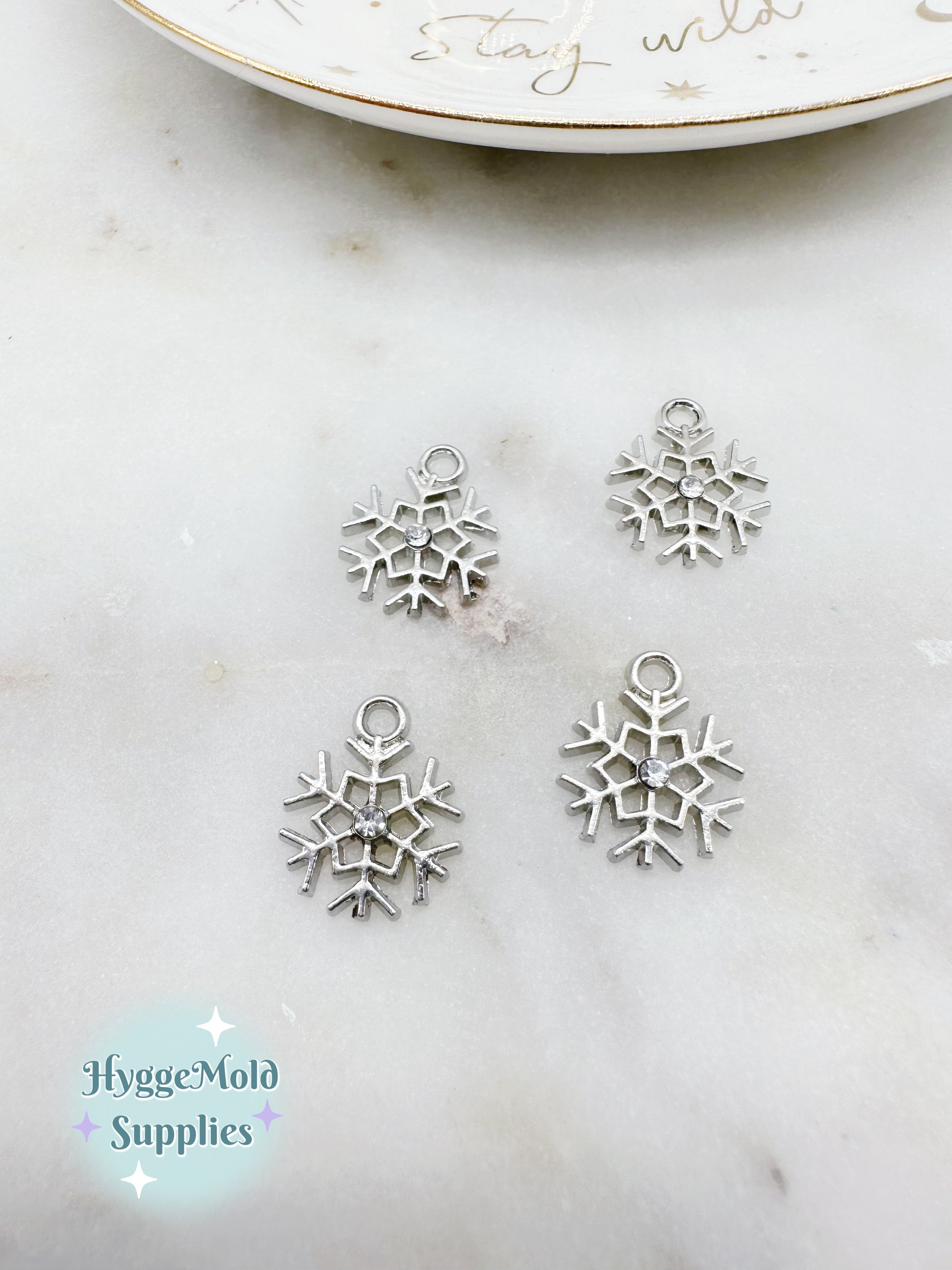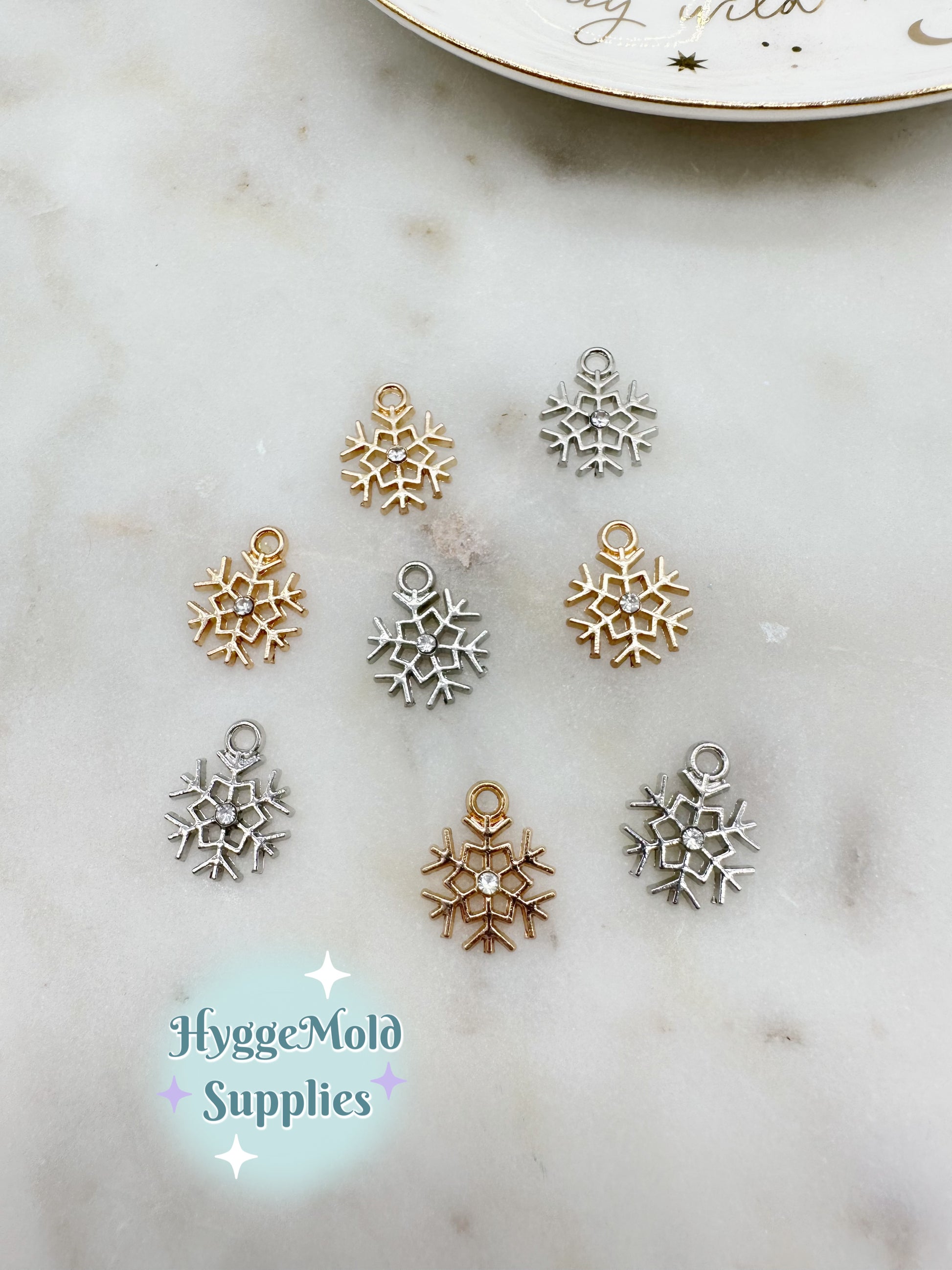 Small snowflake charms adored with a tiny crystal at the centre