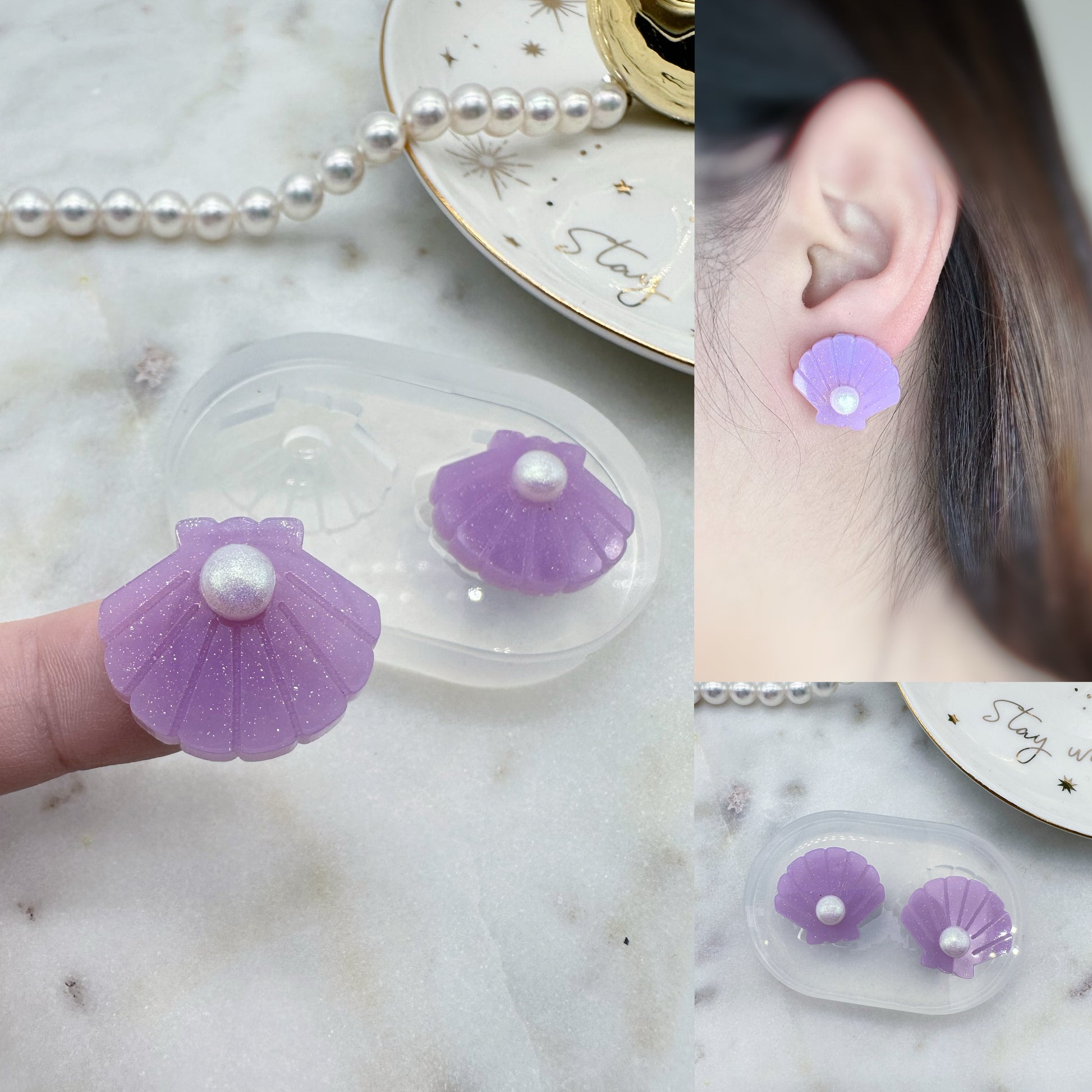 2.3 cm Mermaid Pearl on Seashell Stud Earring Mold