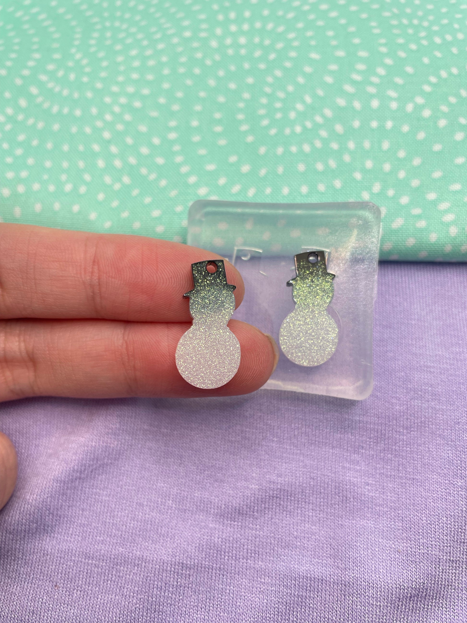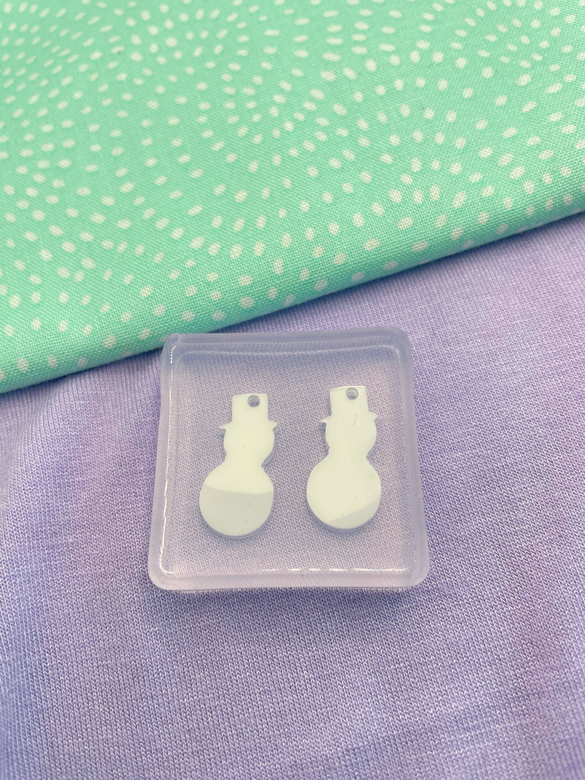 Makes one pair of 3mm thick 2 cm tall snowman dangle earrings with predrilled holes