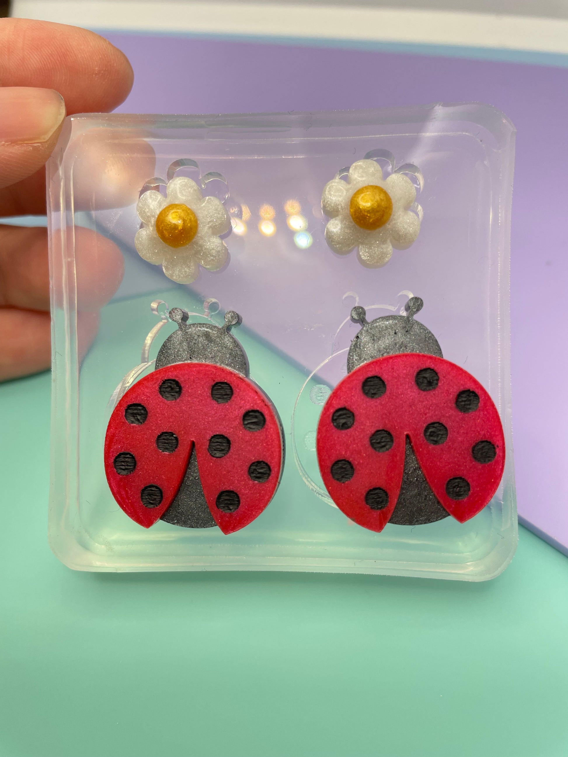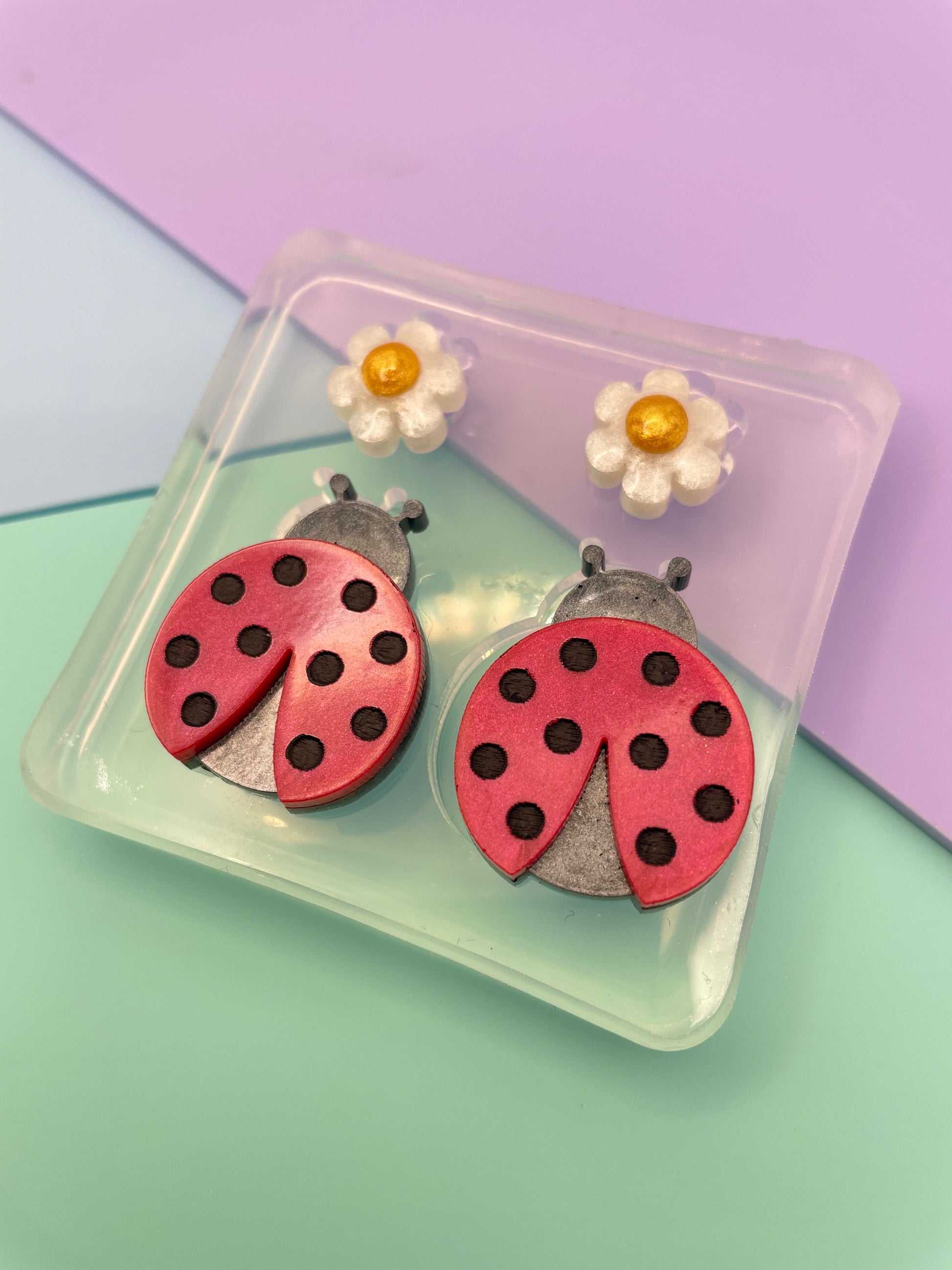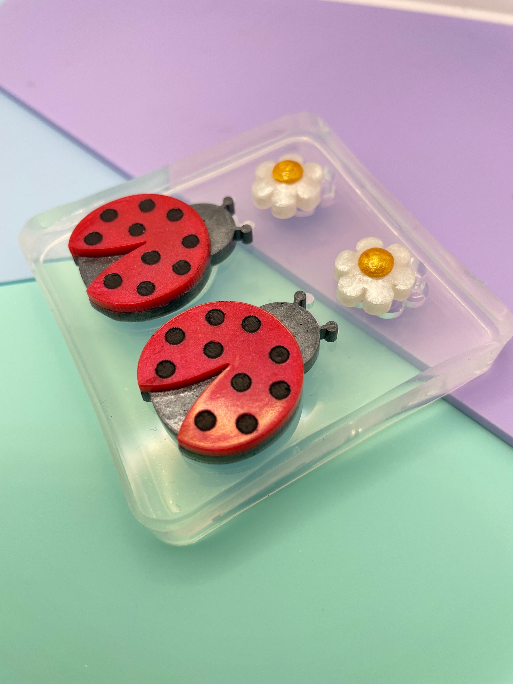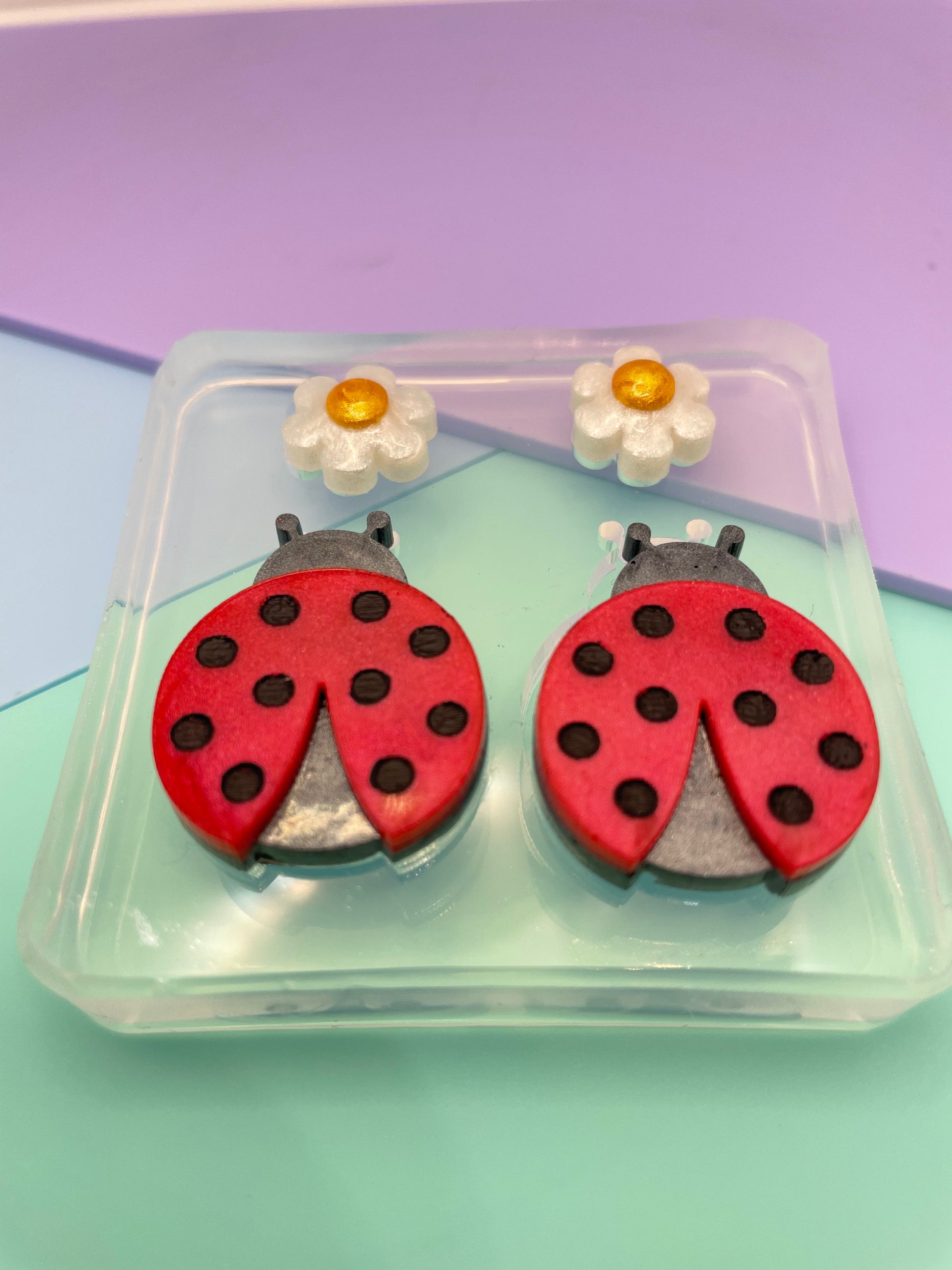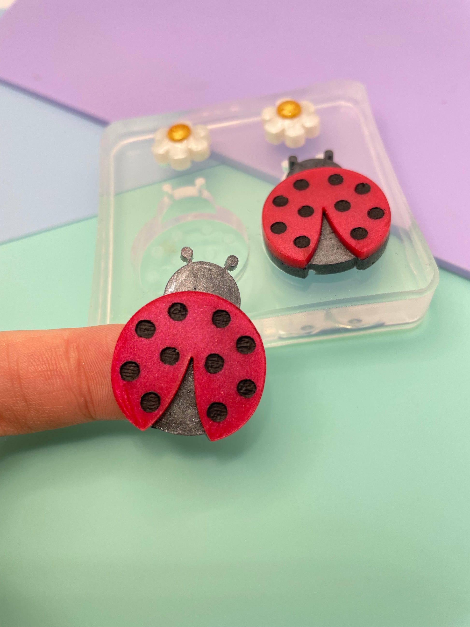 3 cm Ladybug Love bug Daisy Flower Brooch Dangle Earring Mold