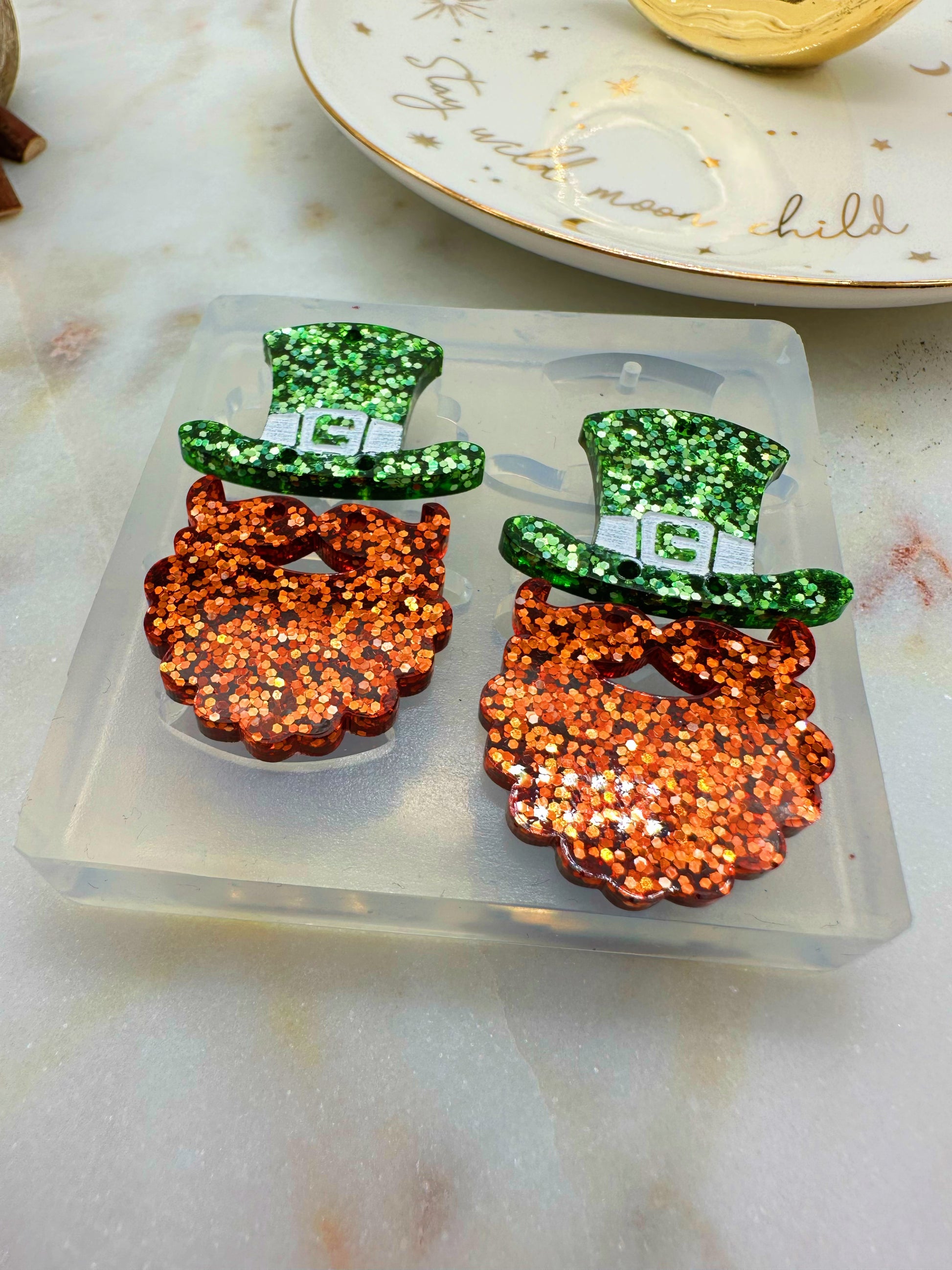5cm Leprechaun Hat and Beard Dangle Earring Mold