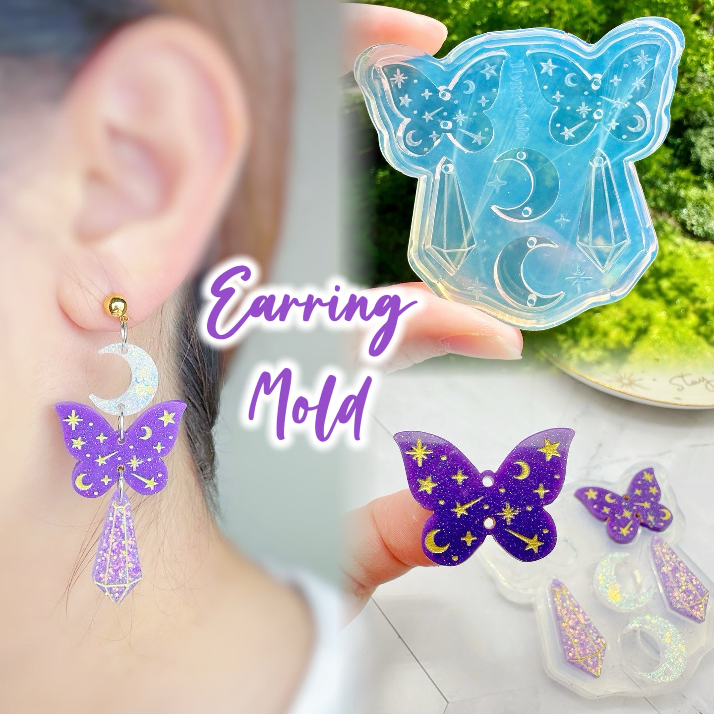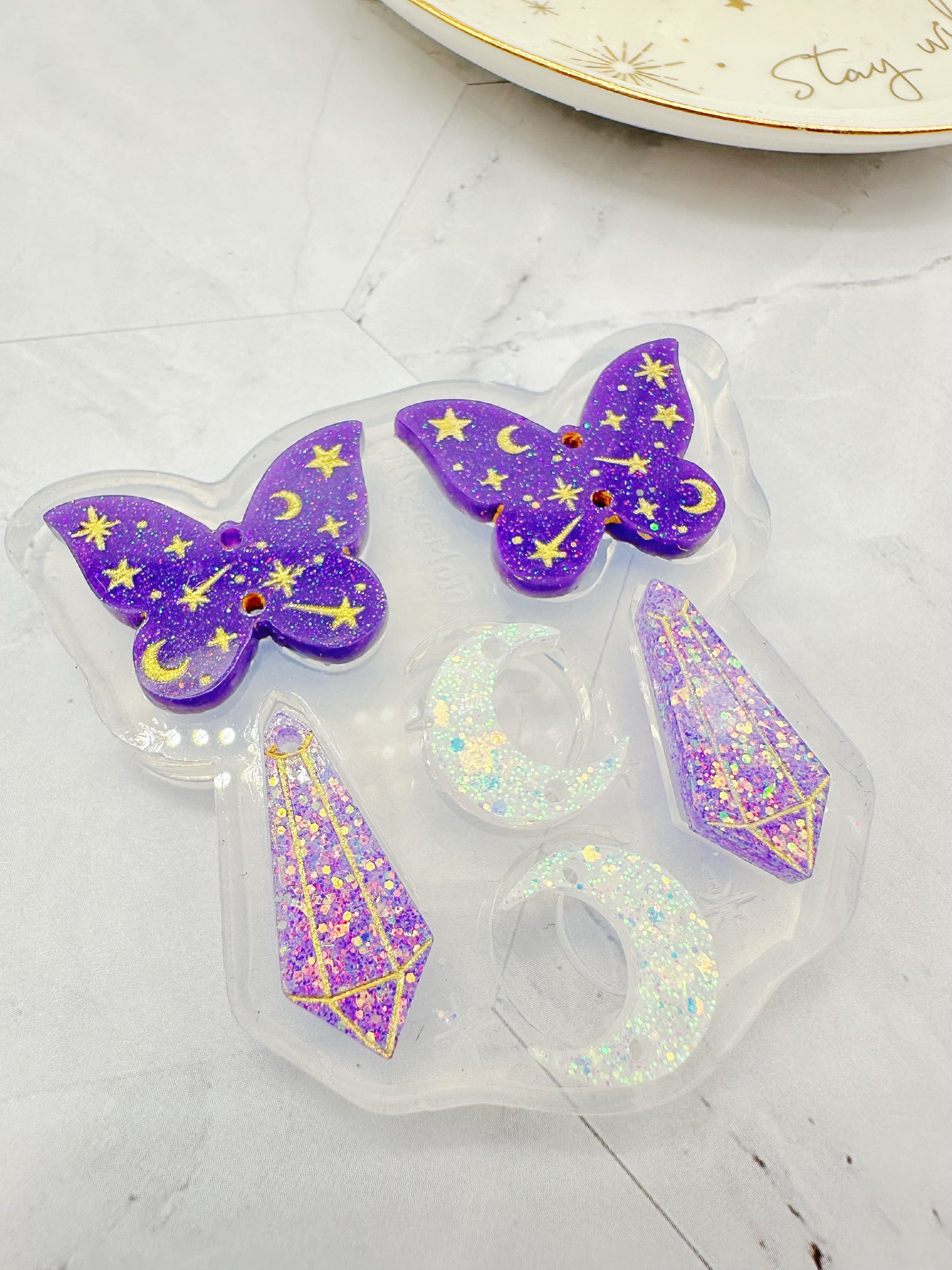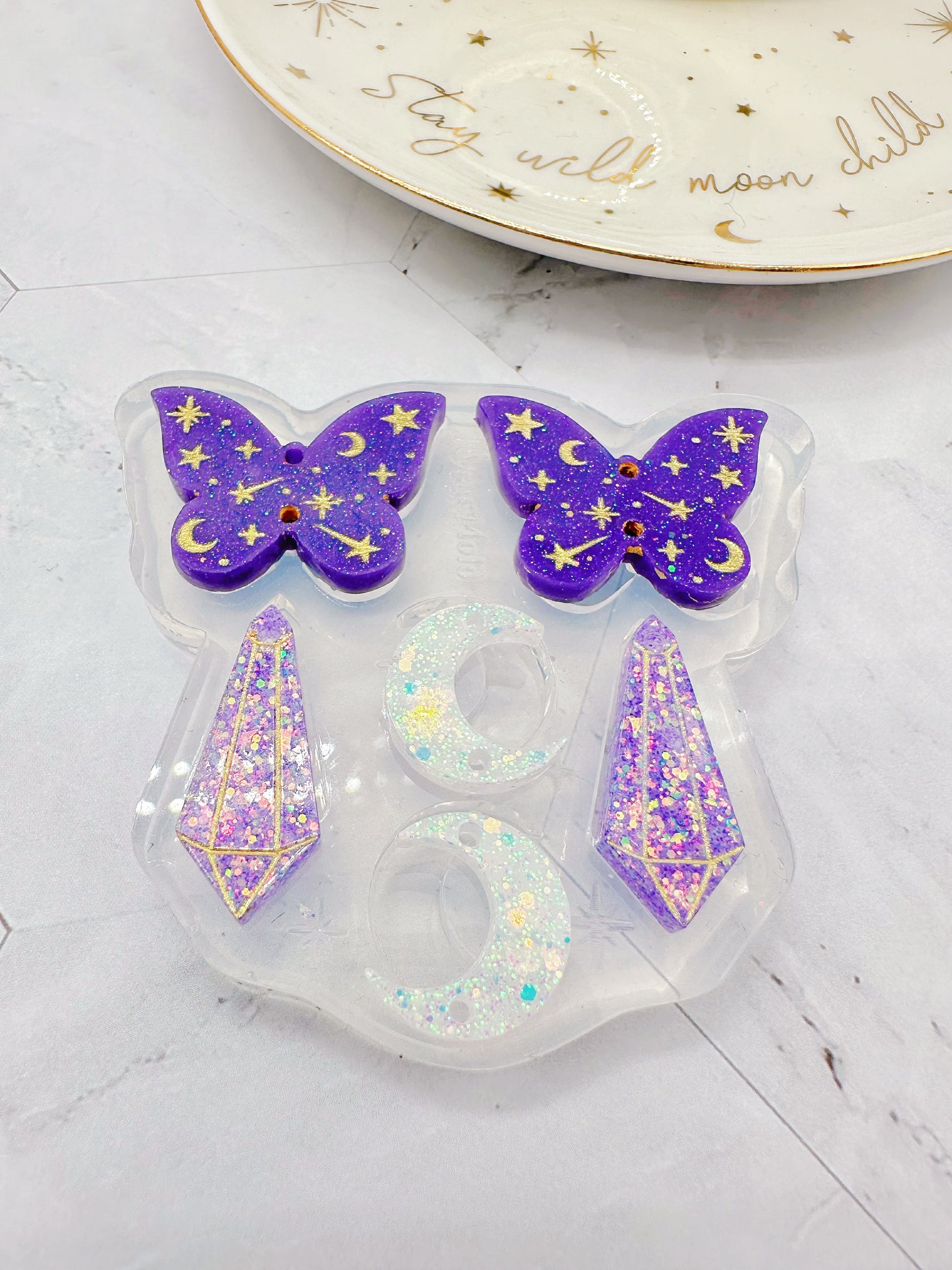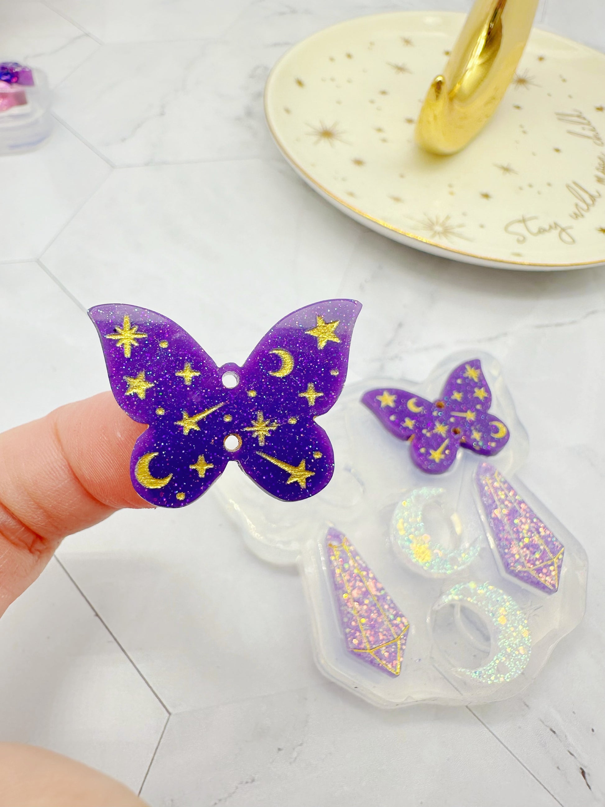 Make beautiful celestial butterfly dangle earrings with this mold!