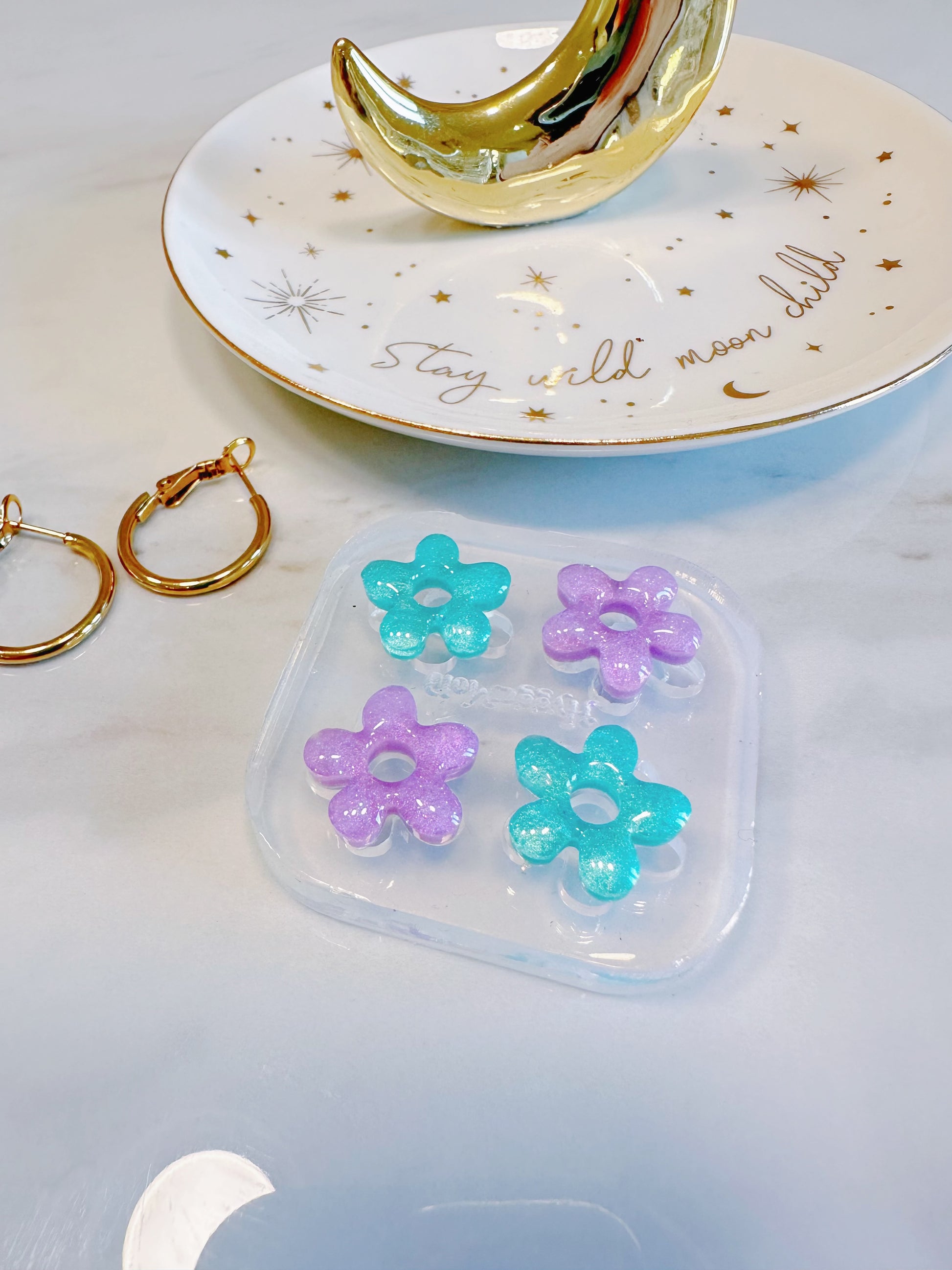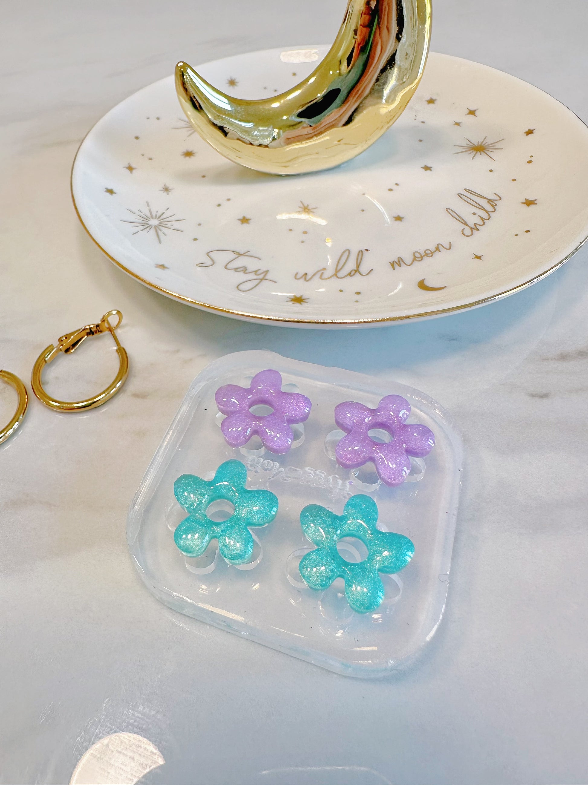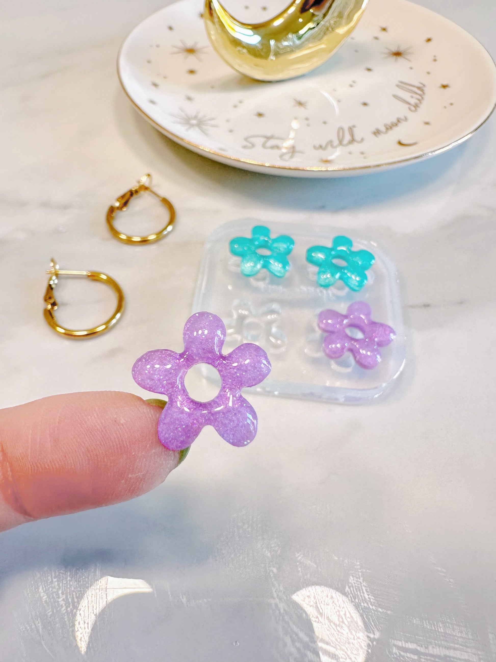 Dainty 1.6 cm Organic Open Flower Shape Hoop Spinner Earring Mold Stud Mold