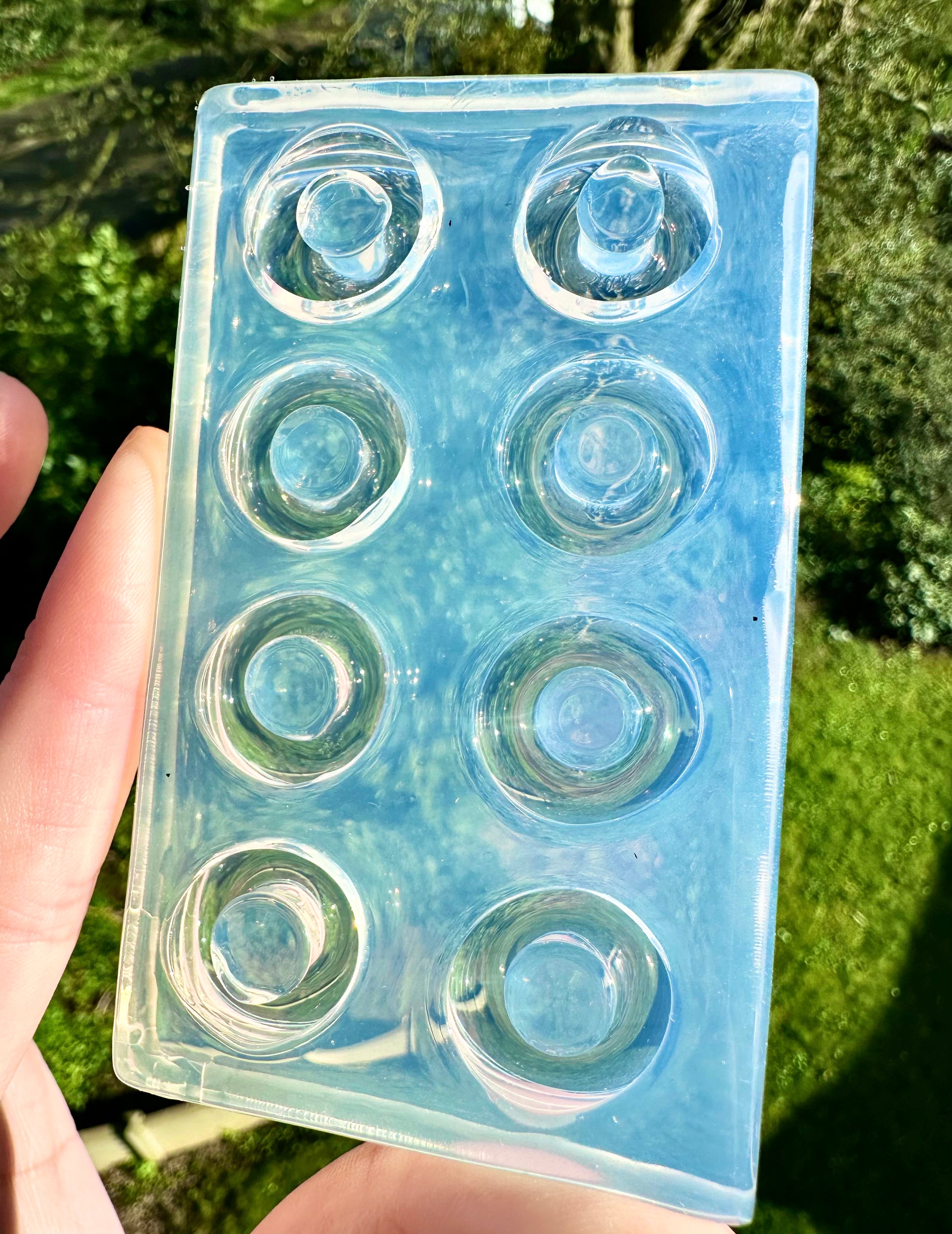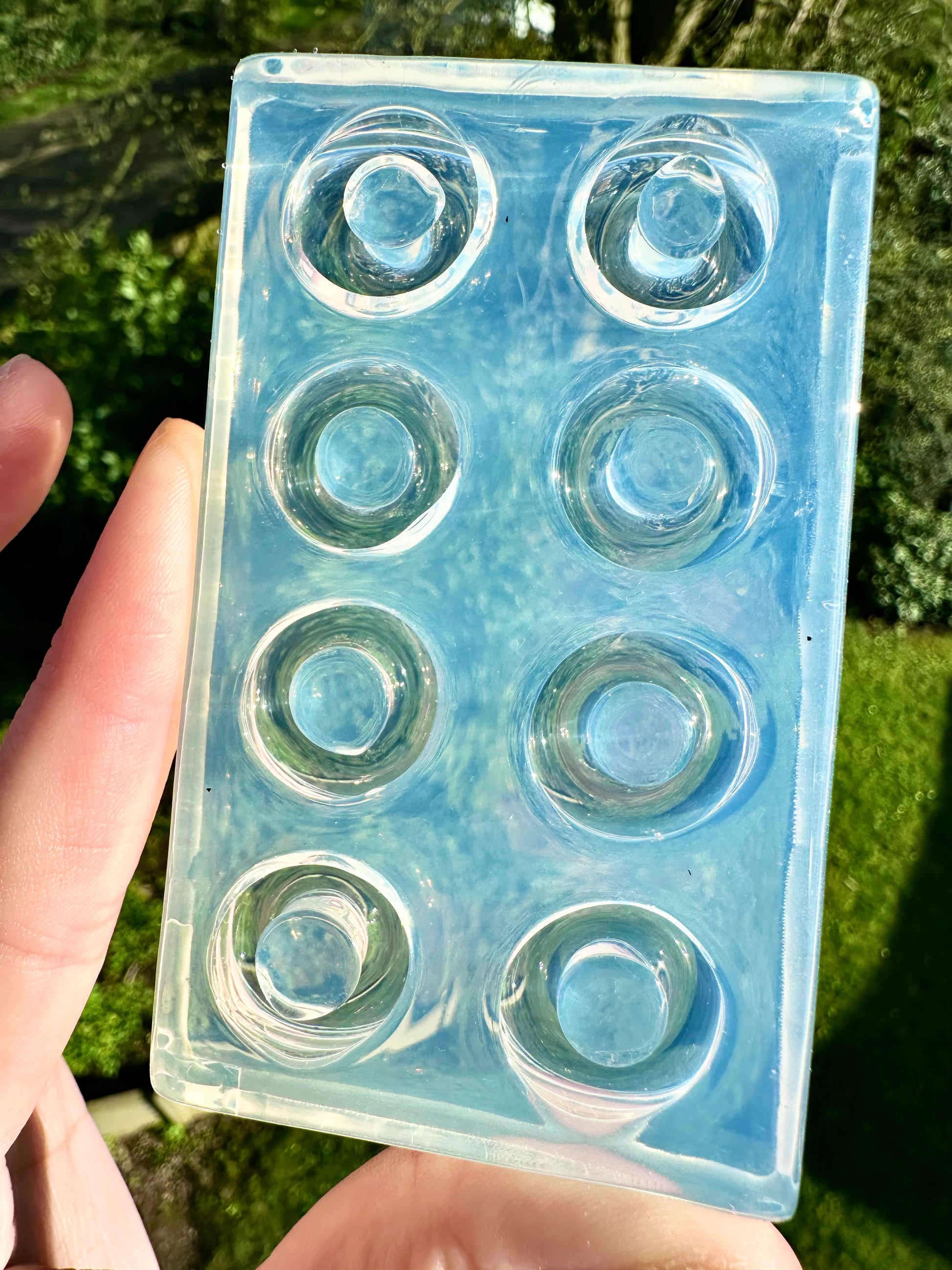 Although colored silicone molds with mica or glitter are very attractive, we usually don't recommend them because clear silicone molds give you a better vision as to what's going on inside e.g. trapped bubbles and so are more practical for resin artists. However, if you would like to get a colored mold, we have the pigment needed. Please contact us for more details.