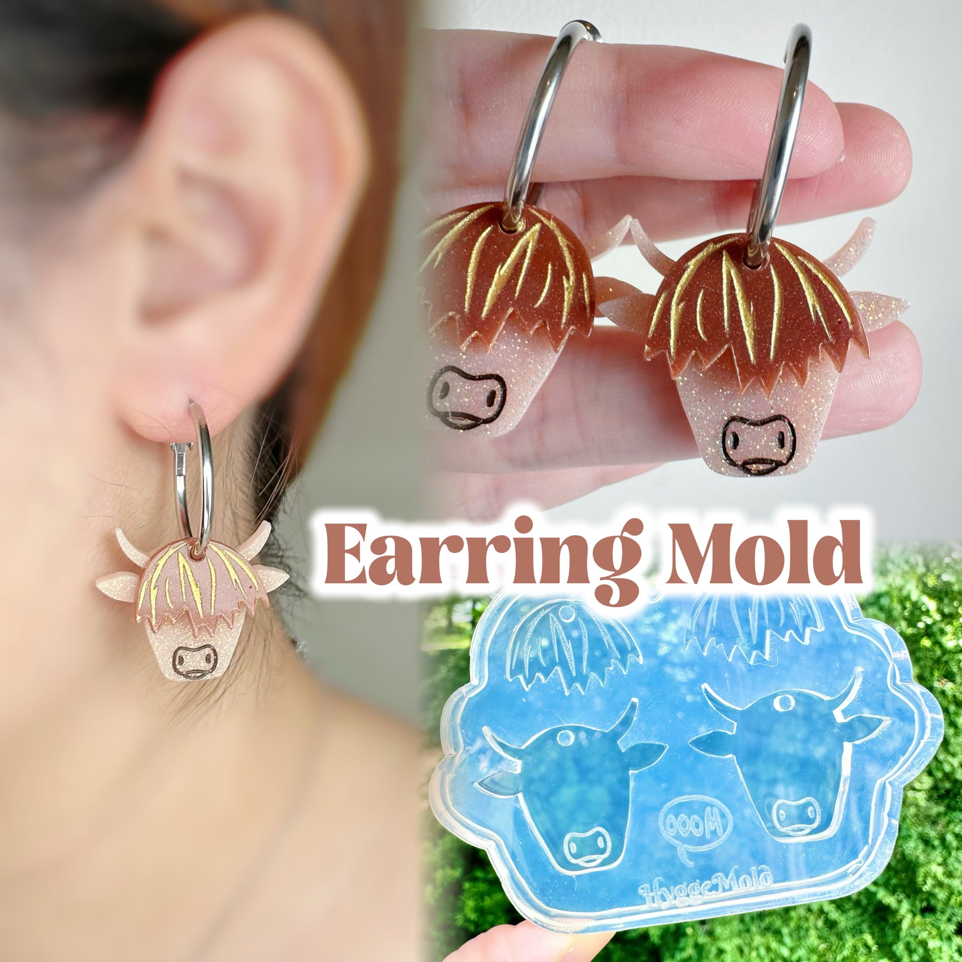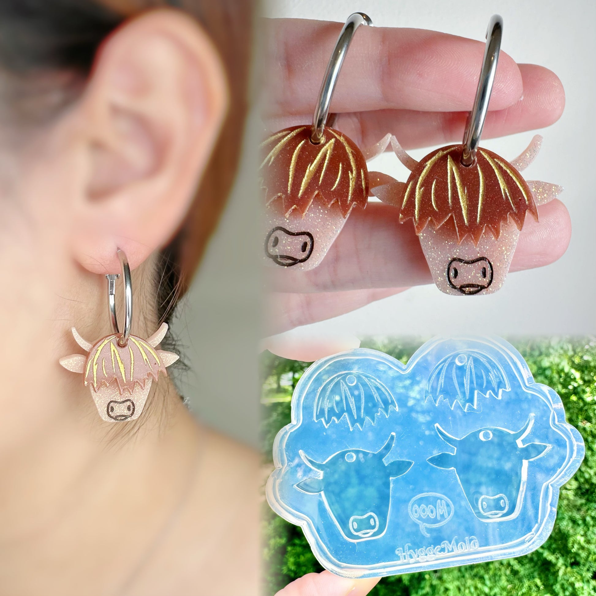 Highland Cow Dangly Charm Earring Mold for Hoops and Hooks