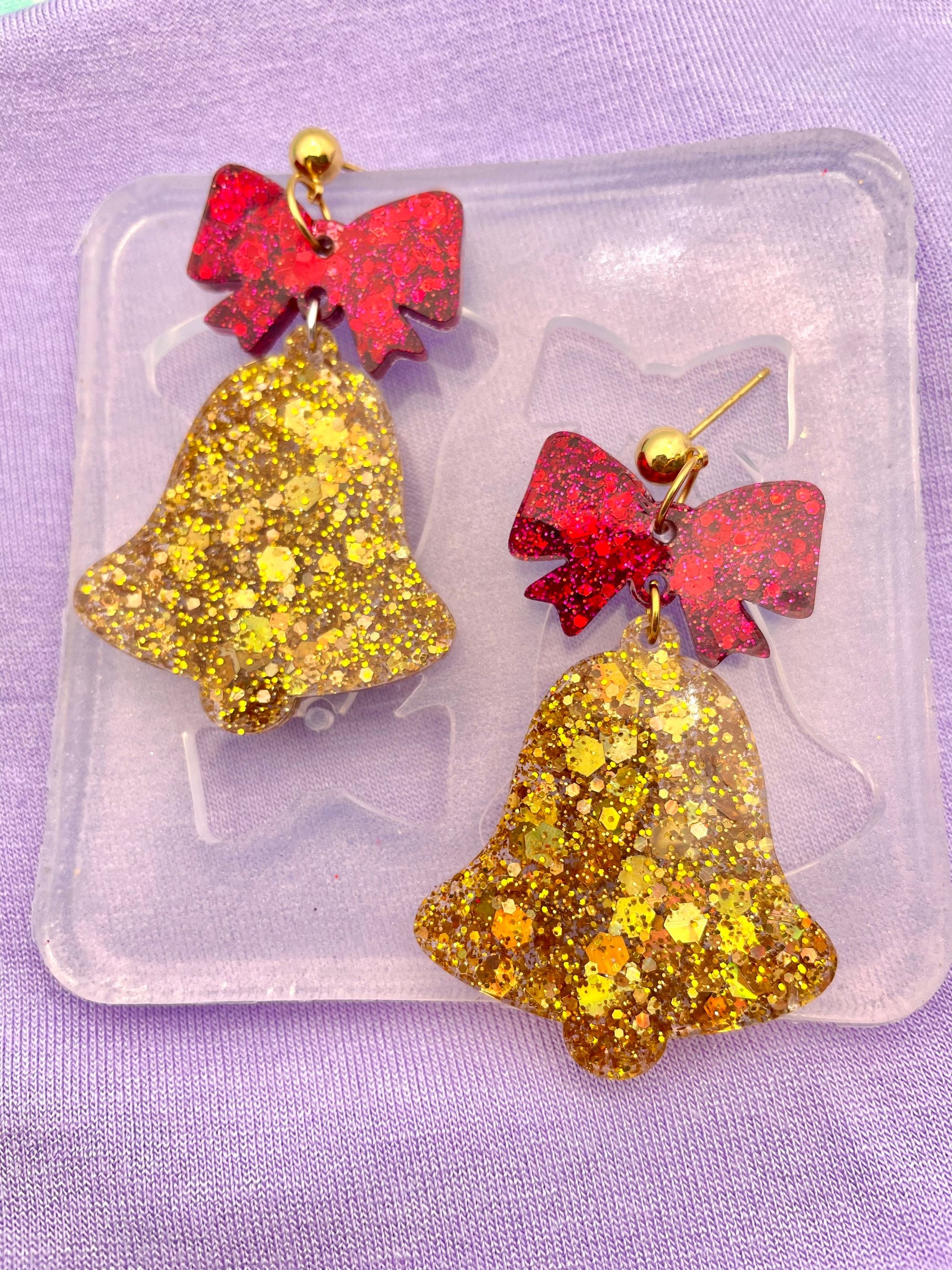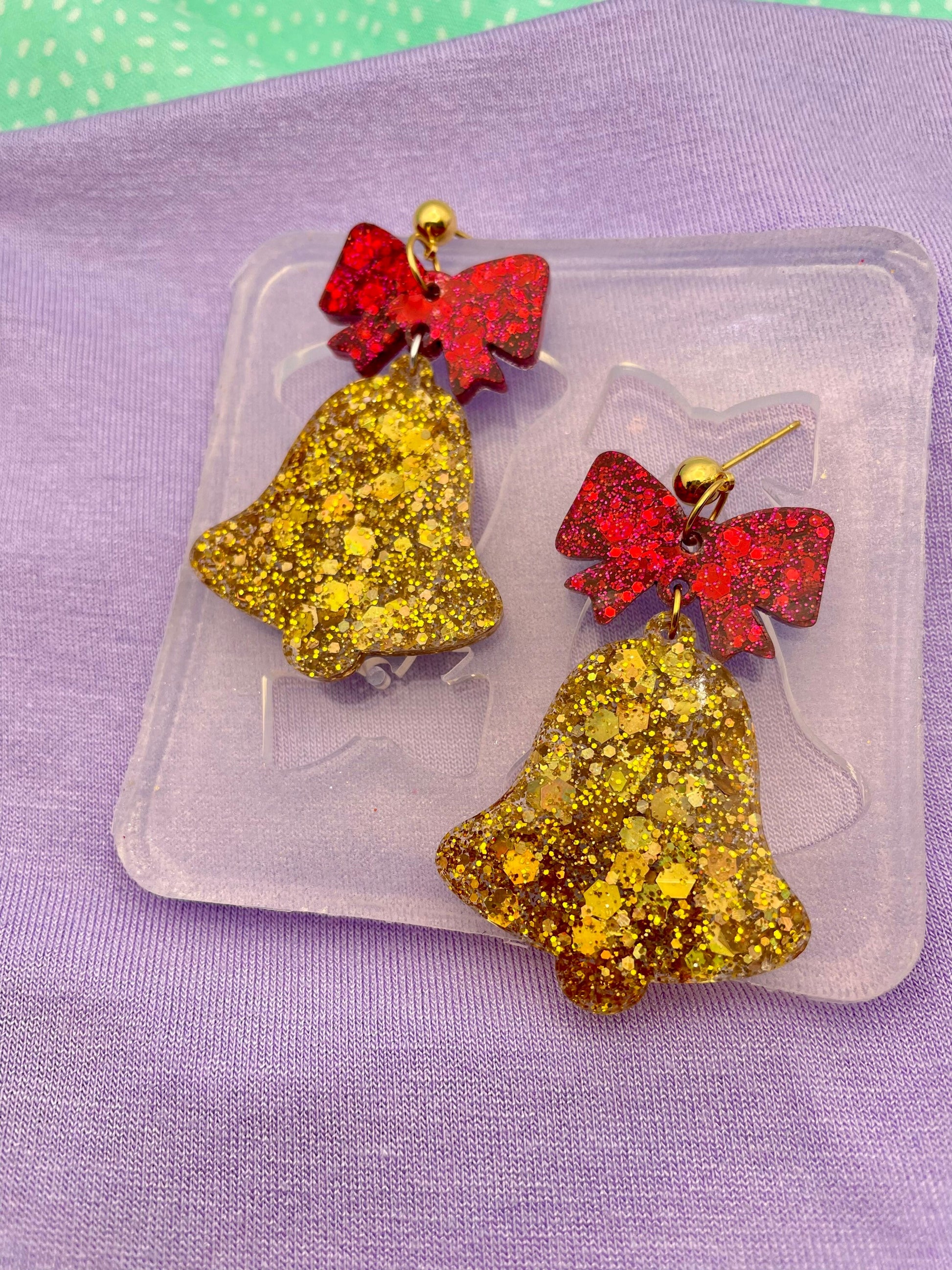 Jingle Bell Christmas Dangle Earring Mold with Ribbon Bows