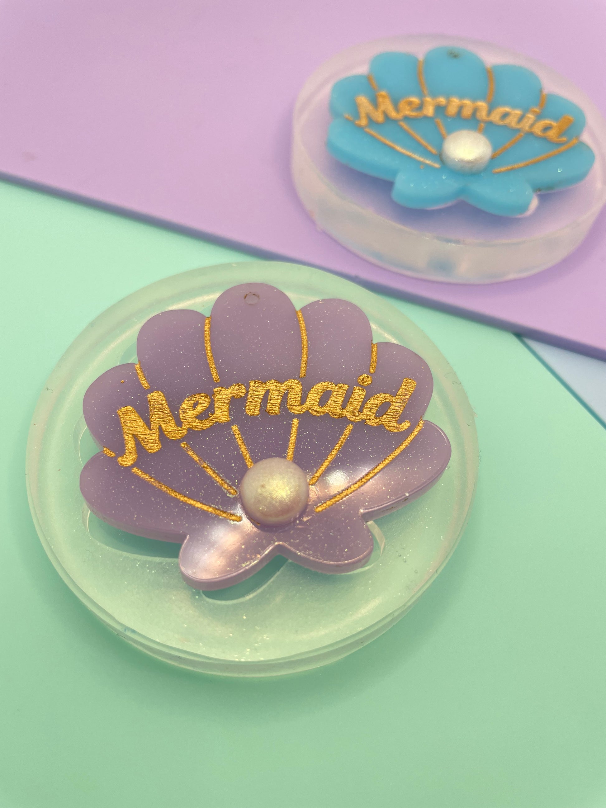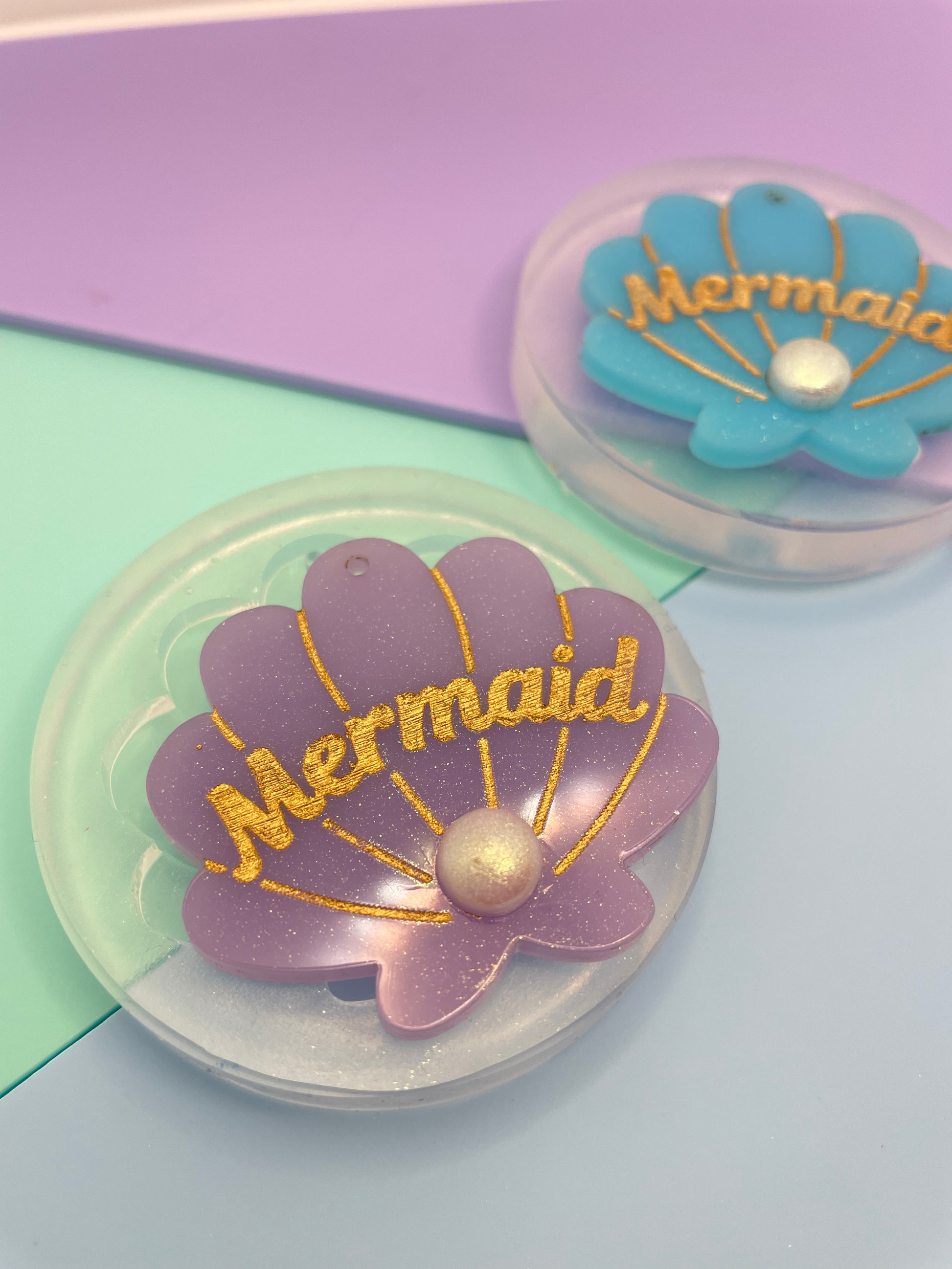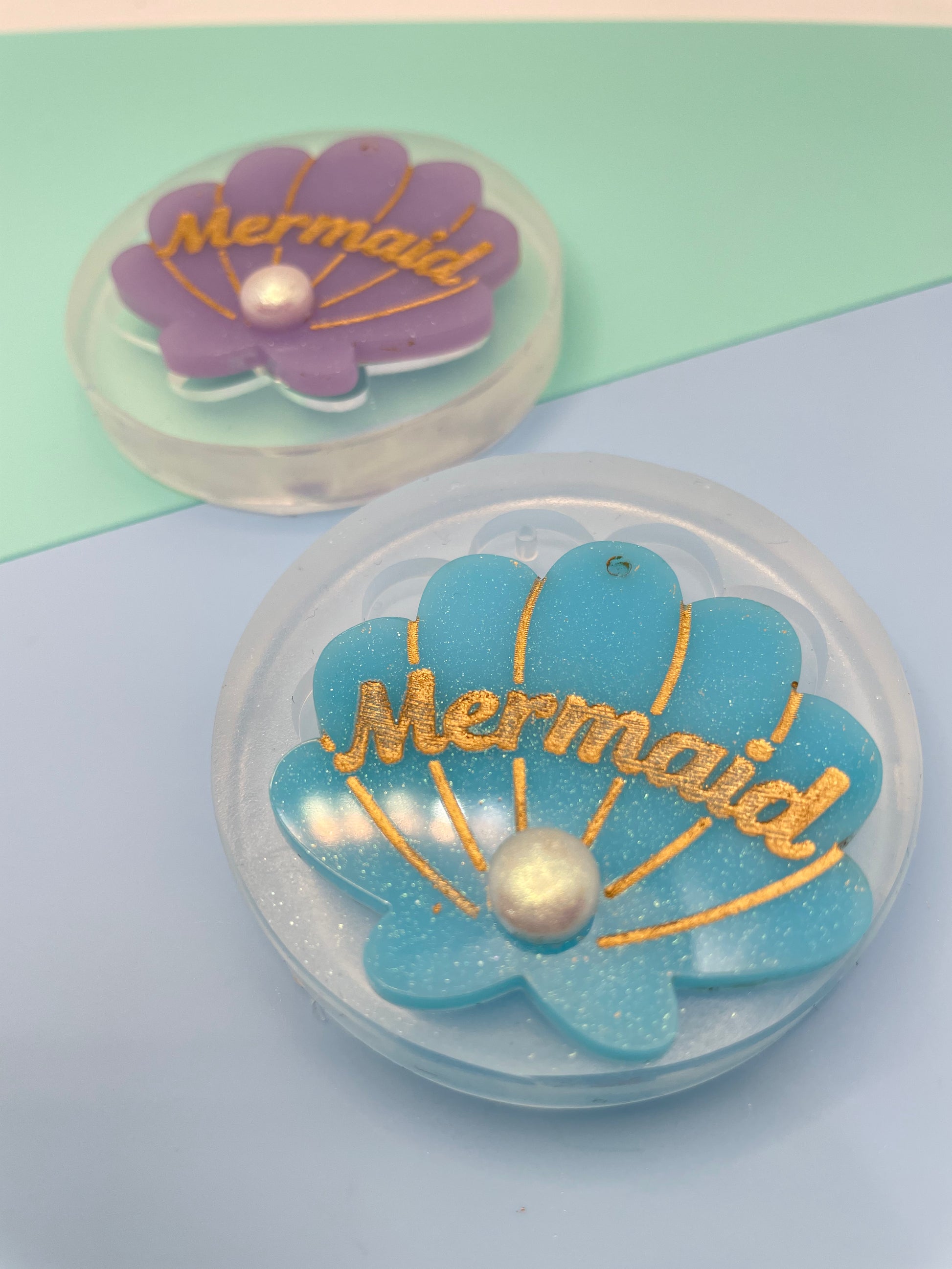 4.5 cm predrilled Mermaid Pearl on Scallop Shell Dangle Earring Keychain Mold