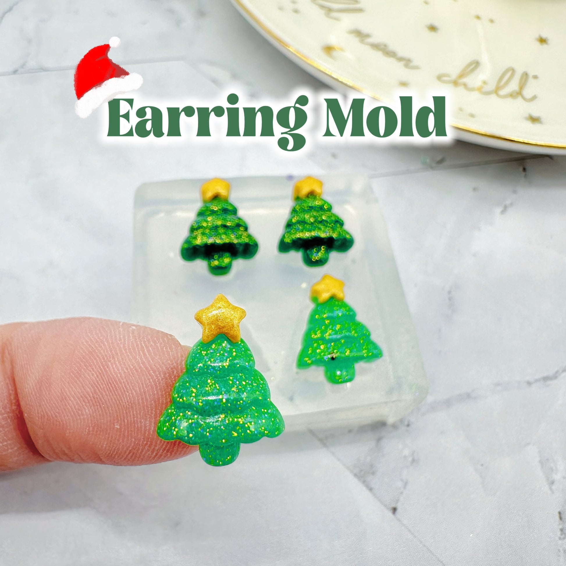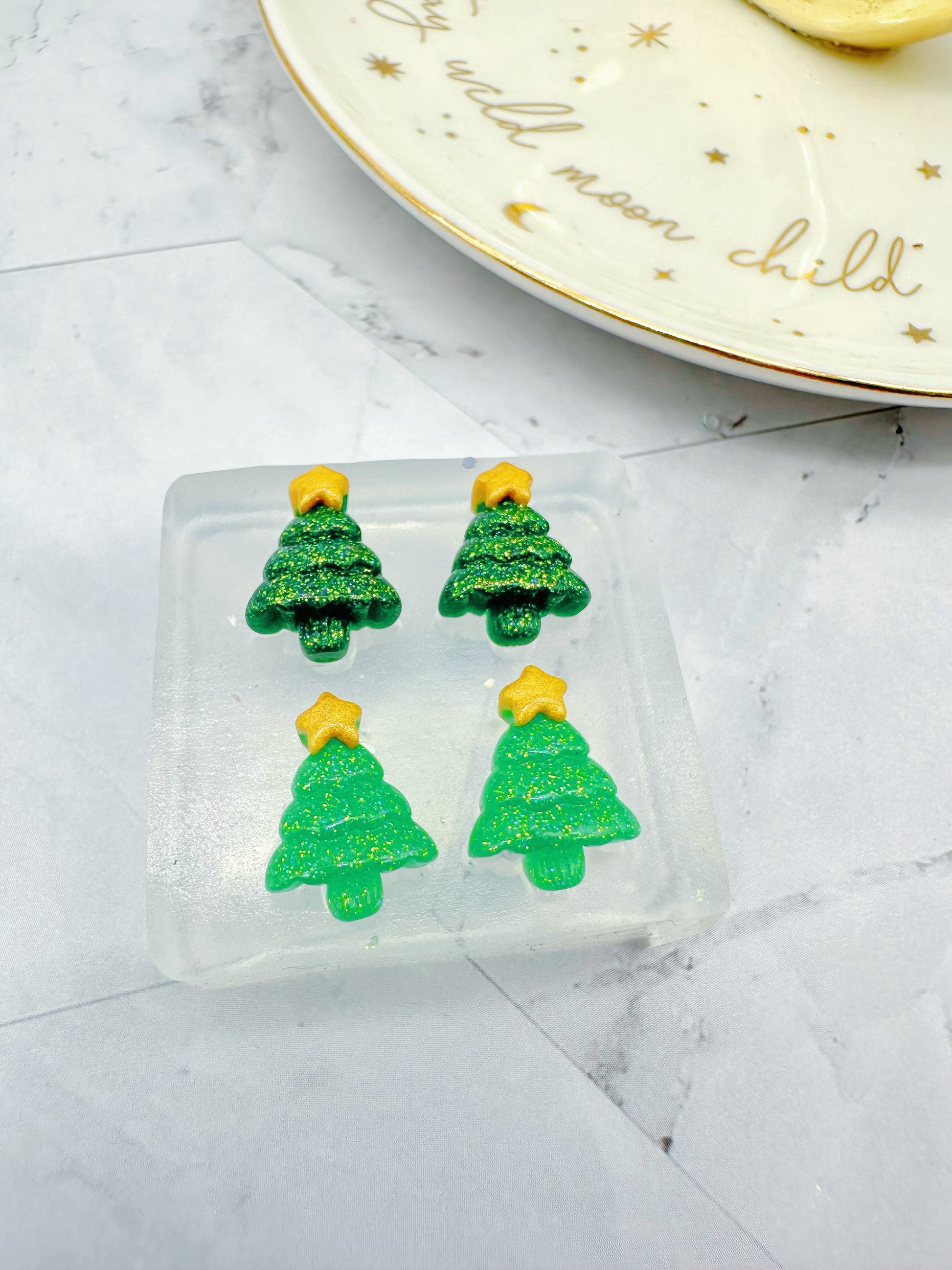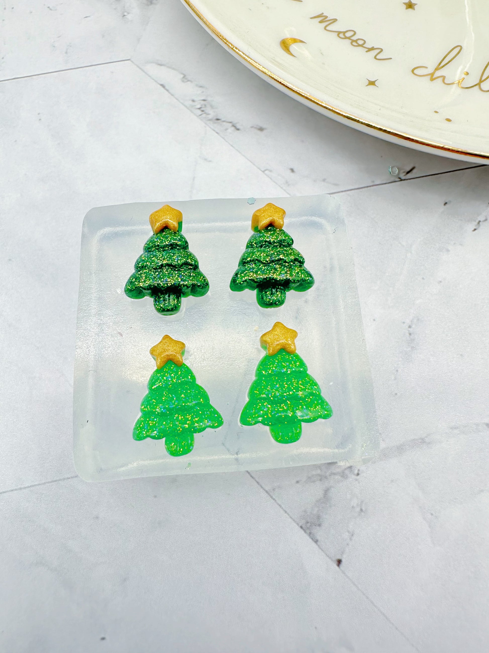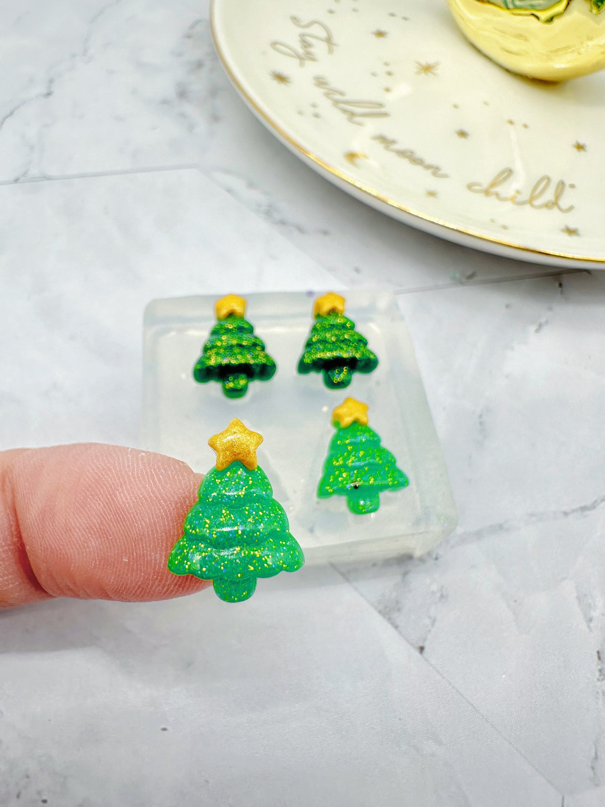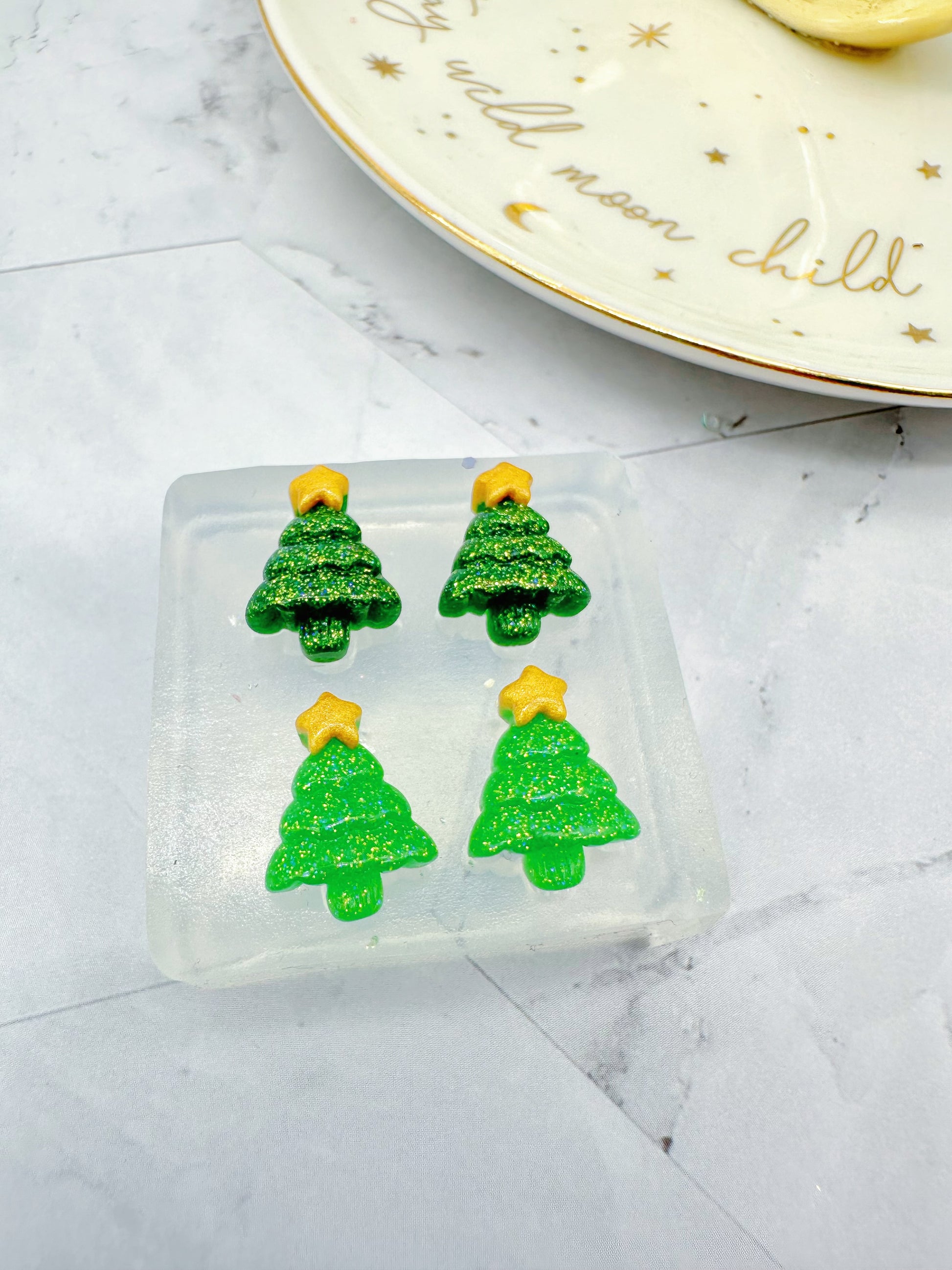 Mini 3D Christmas Tree with star Stud Earring Mold