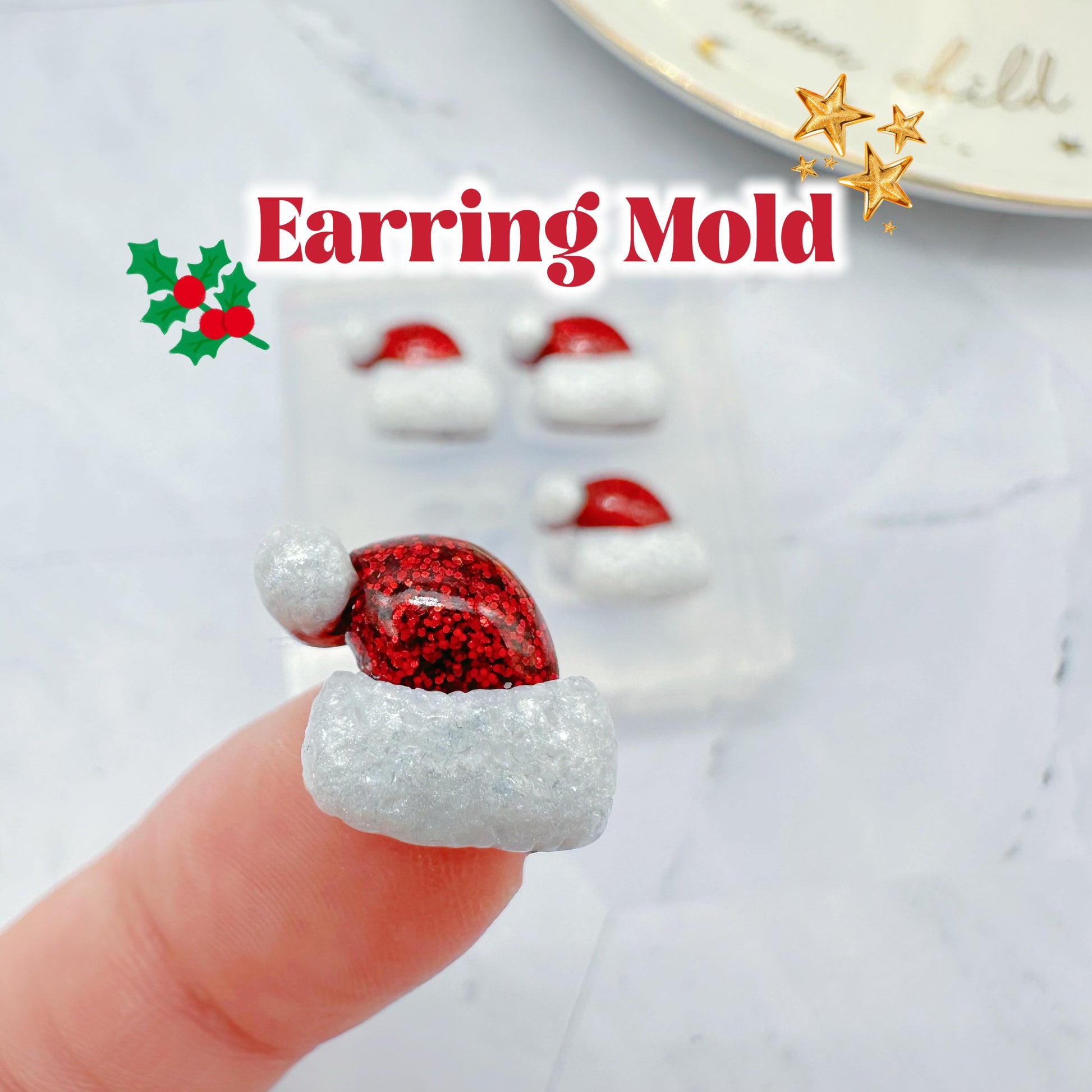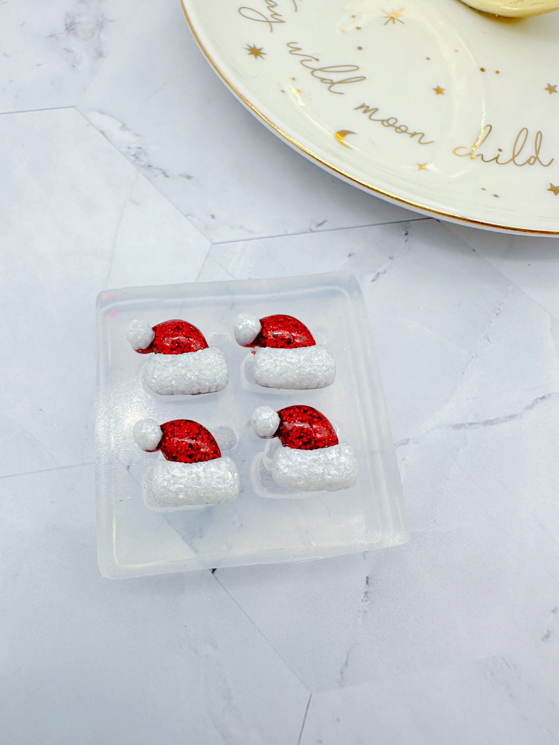 Mini 3D Textured Santa Hat Stud Earring Mold