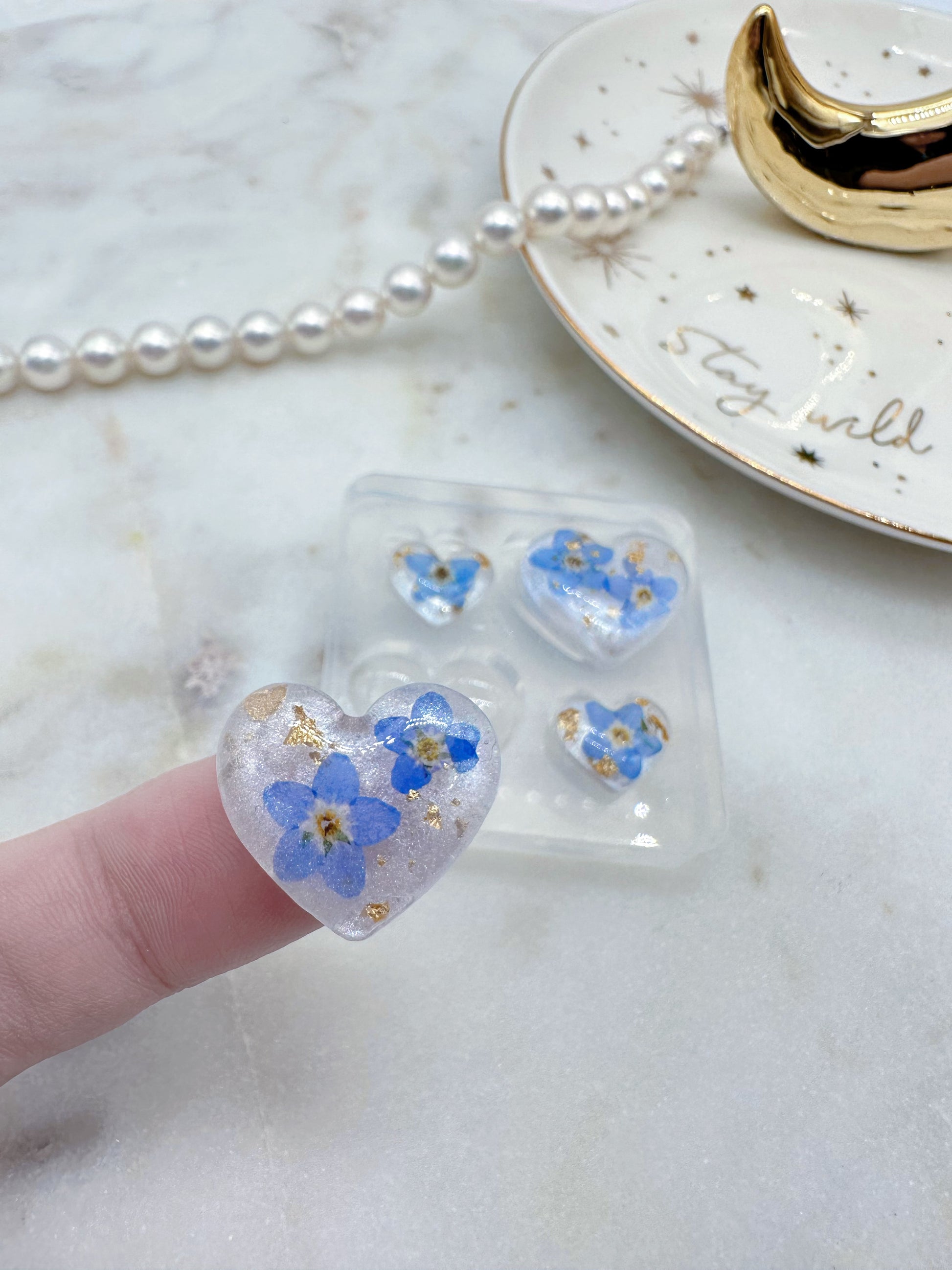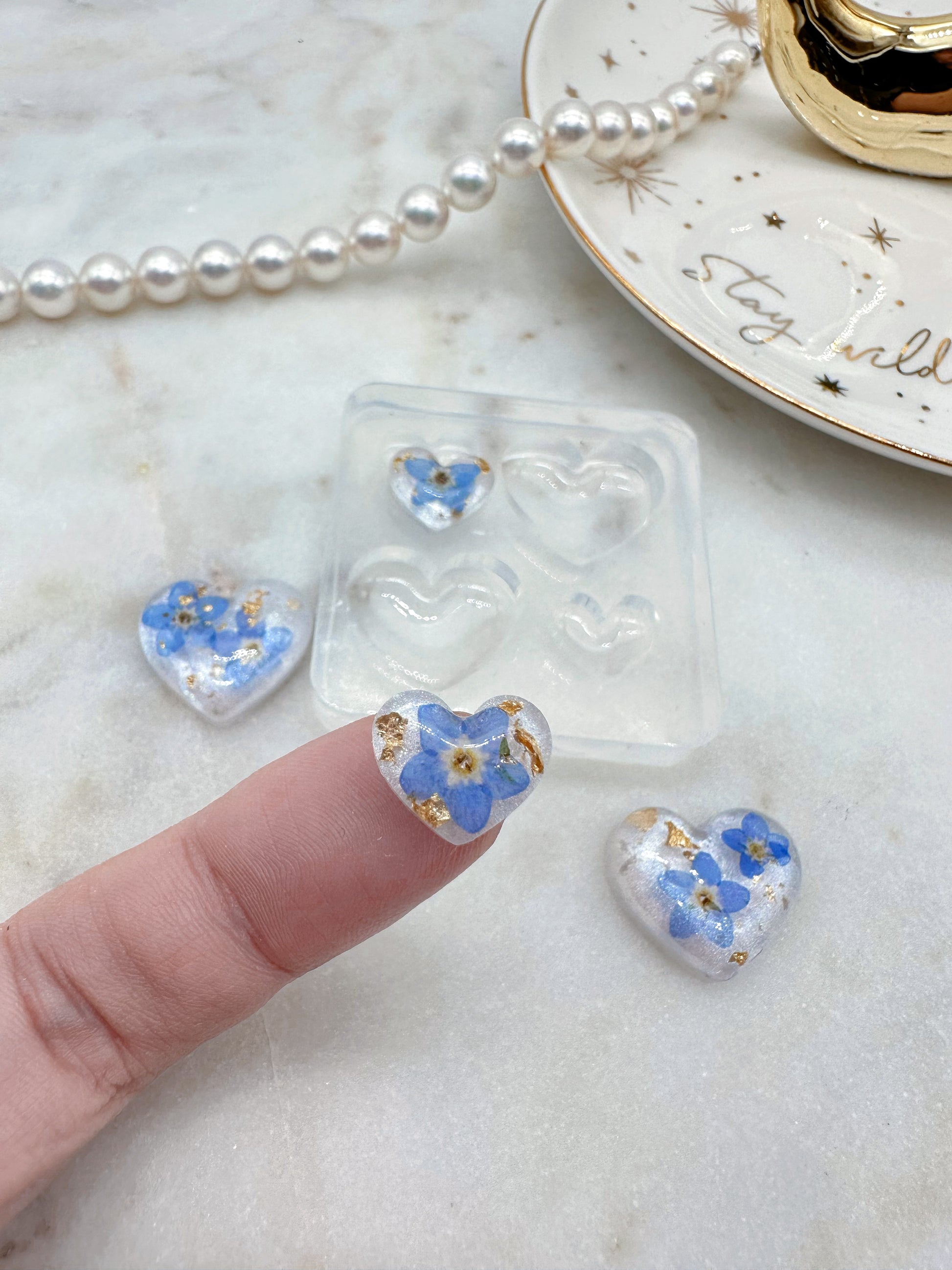Create your own heart studs with the Mini Predomed Heart Duo Stud Mold! This versatile mold offers two sizes in one for you to choose from - 1.8cm or 1.2 cm - so you can make the perfect size earrings for every earlobe! Plus, the lovely domed finish makes it perfect for encasing flowers, glitter, mylar flakes and more. Have fun personalizing your mini studs!