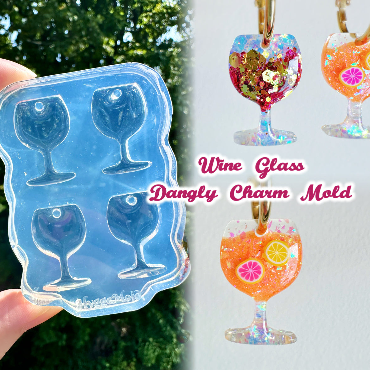 Mini Predomed Wine Glass Dangly Charm Mold for Hoop Earrings and Dangle Earrings