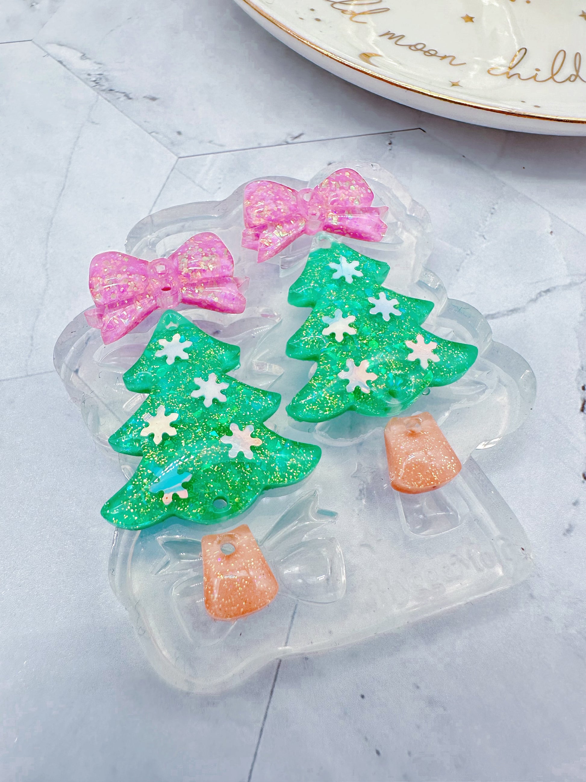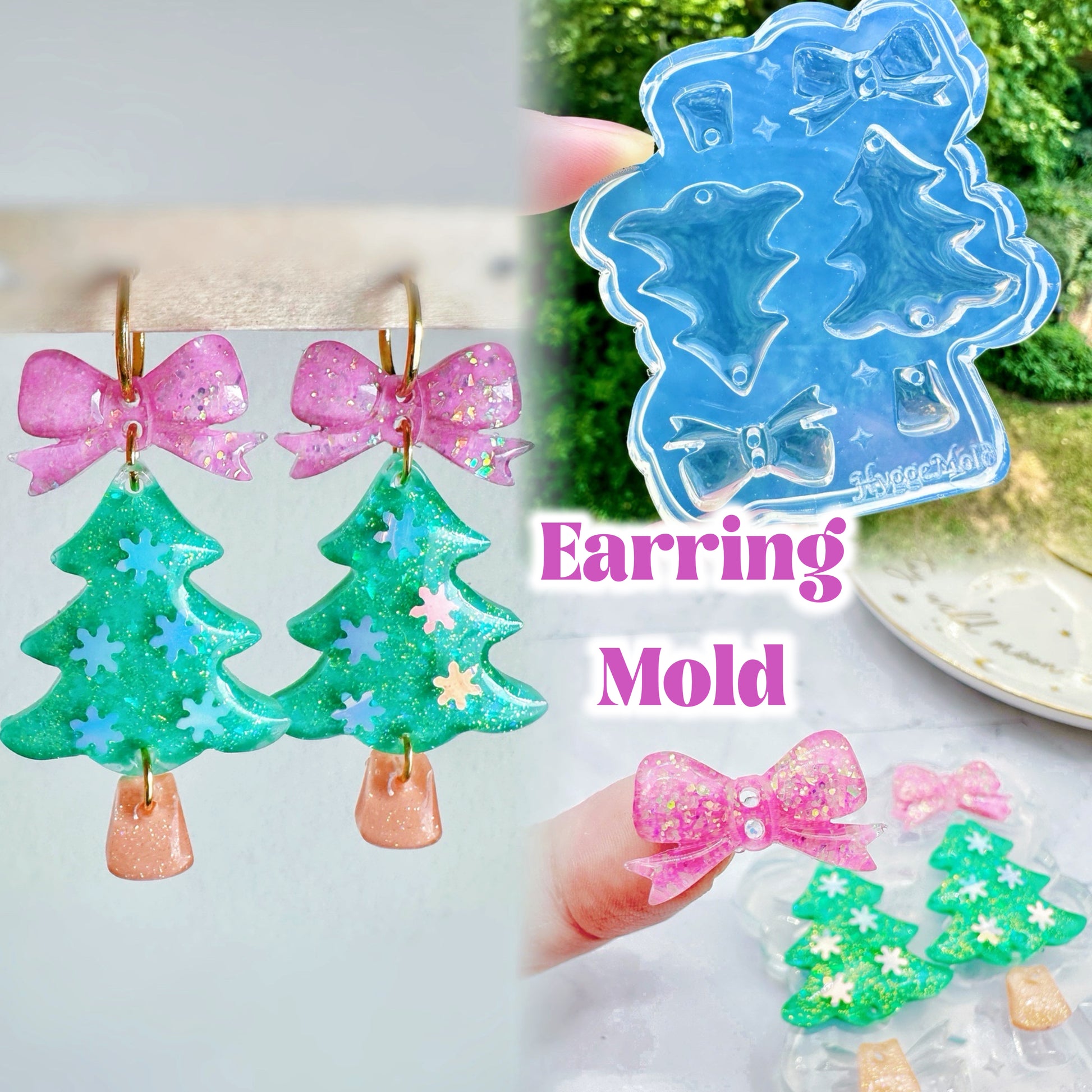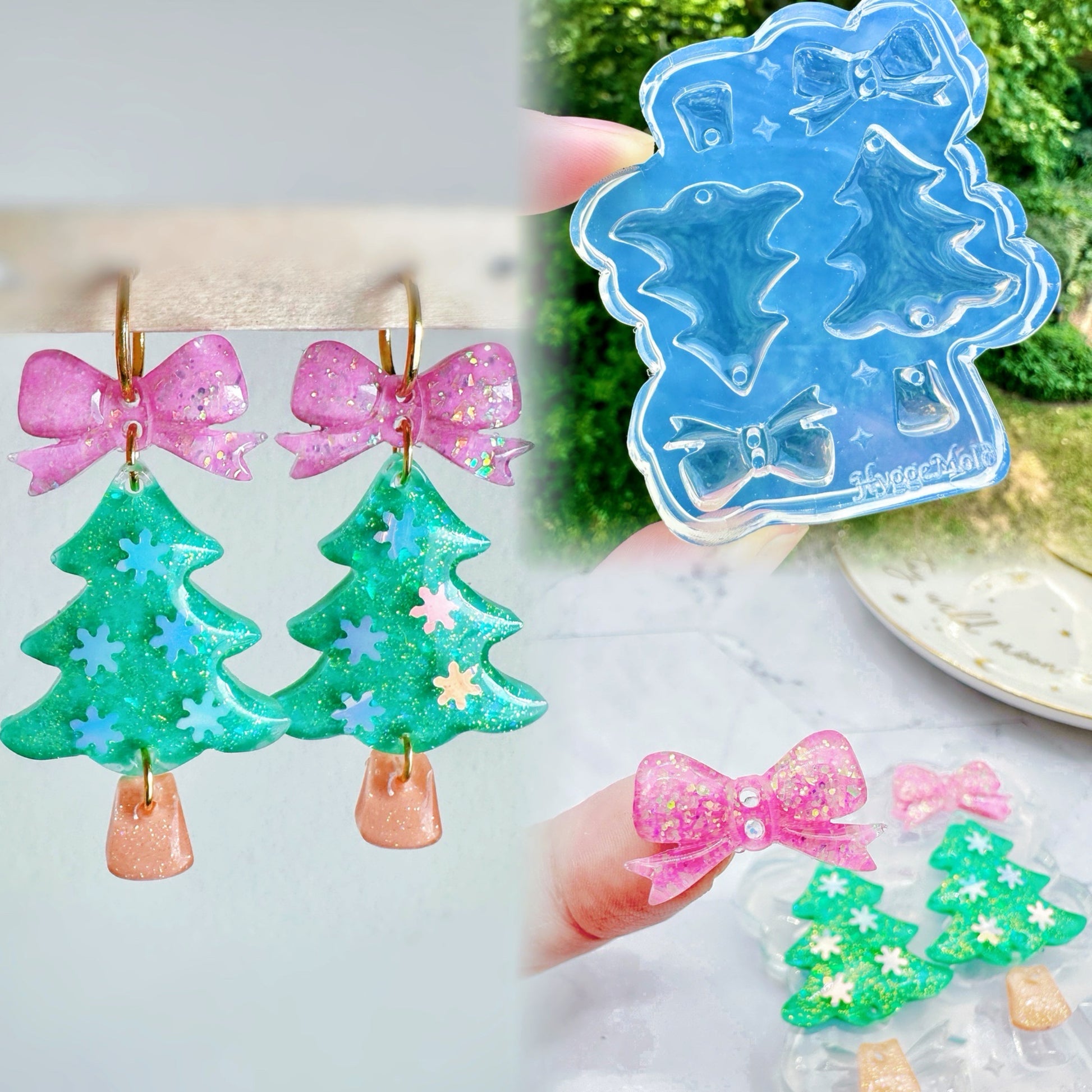 Predomed Ribbon Bow Christmas Tree Dangle Earring Mold