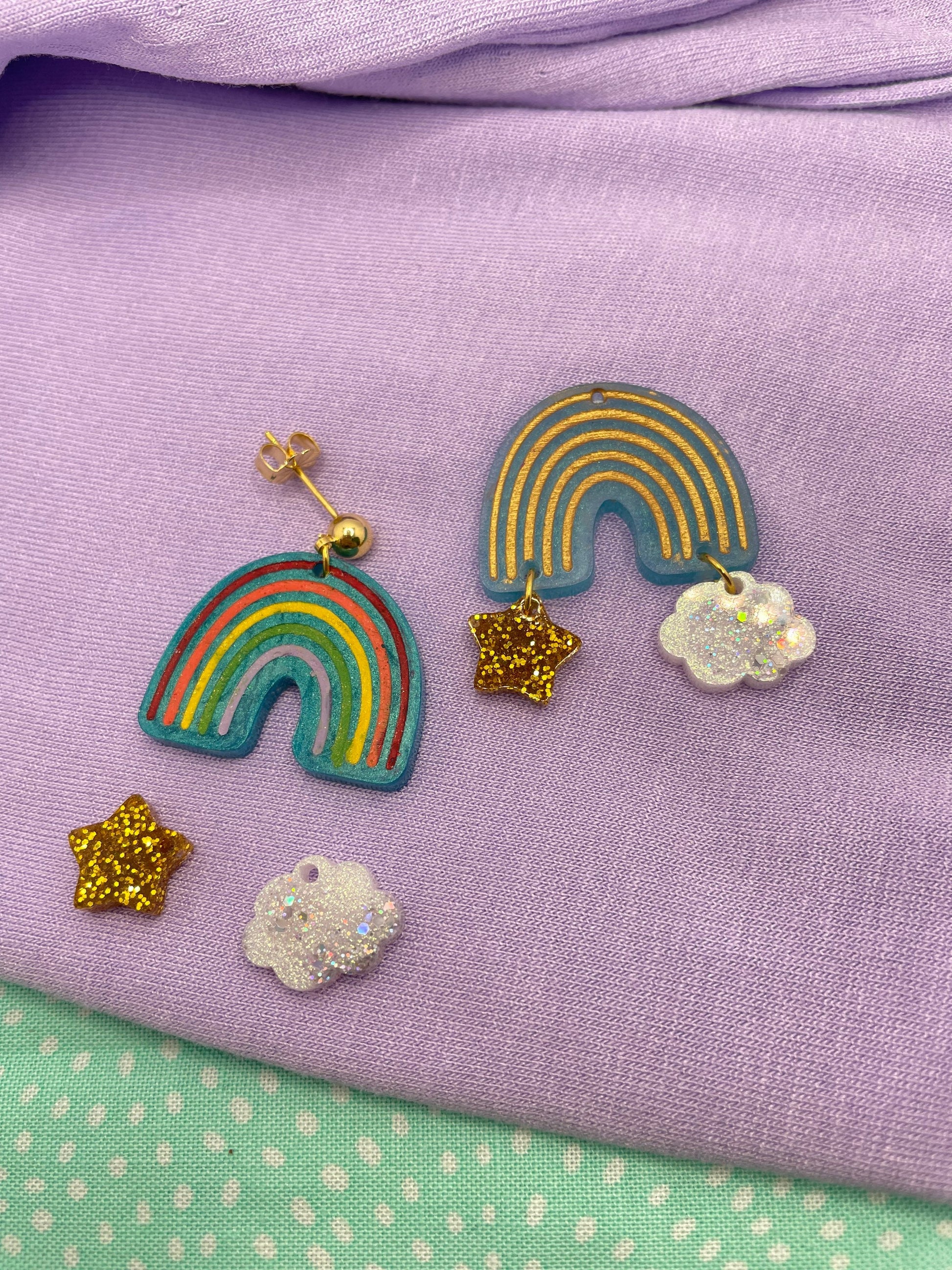 The rainbow has one hole at the top. To connect the star/ cloud to the rainbow, you will need to drill holes on the rainbow. But the design of having no pre-drilled holes on the bottom of the rainbow gives you the freedom to make standalone rainbow danglies without the stars and the clouds.