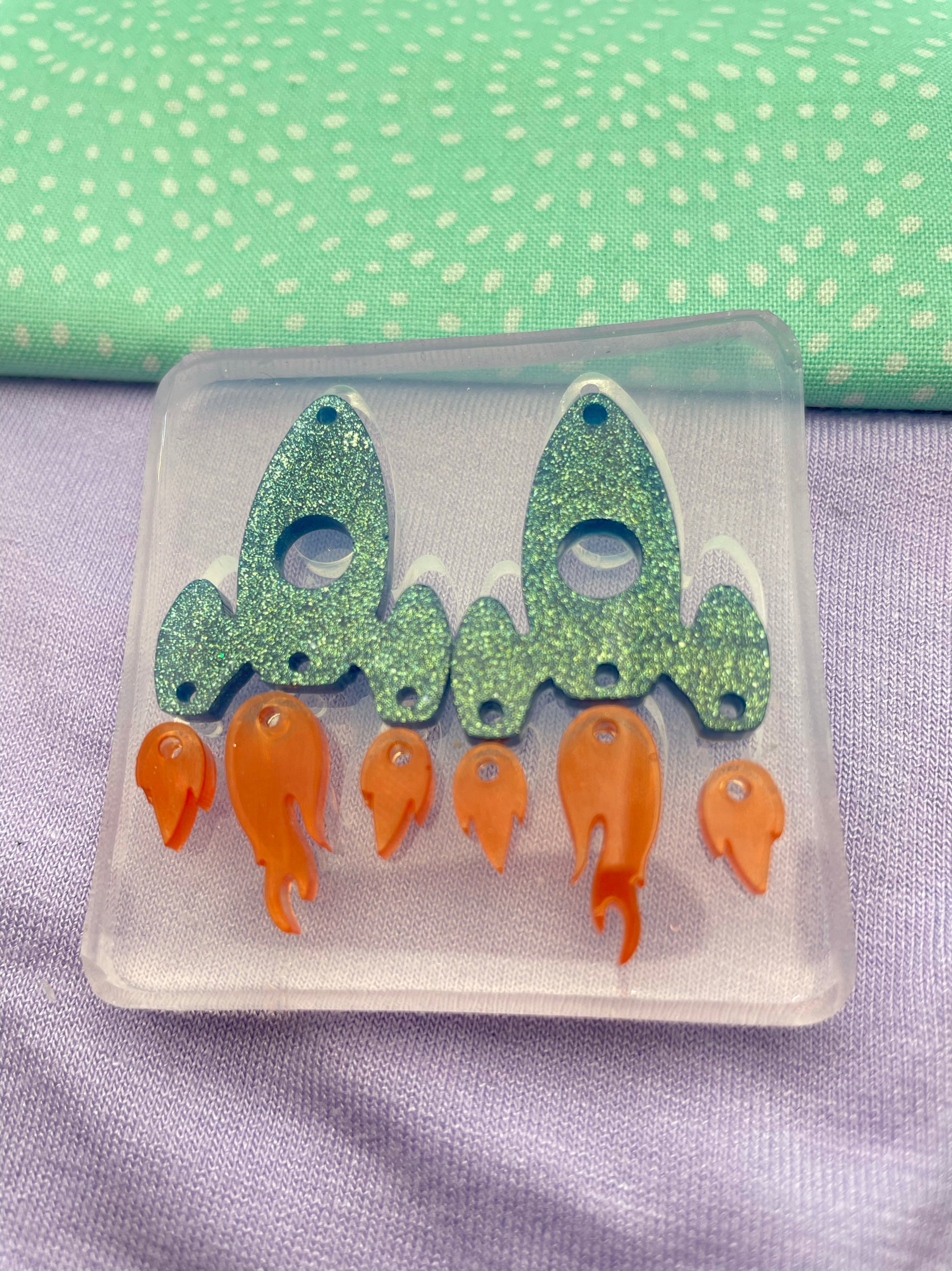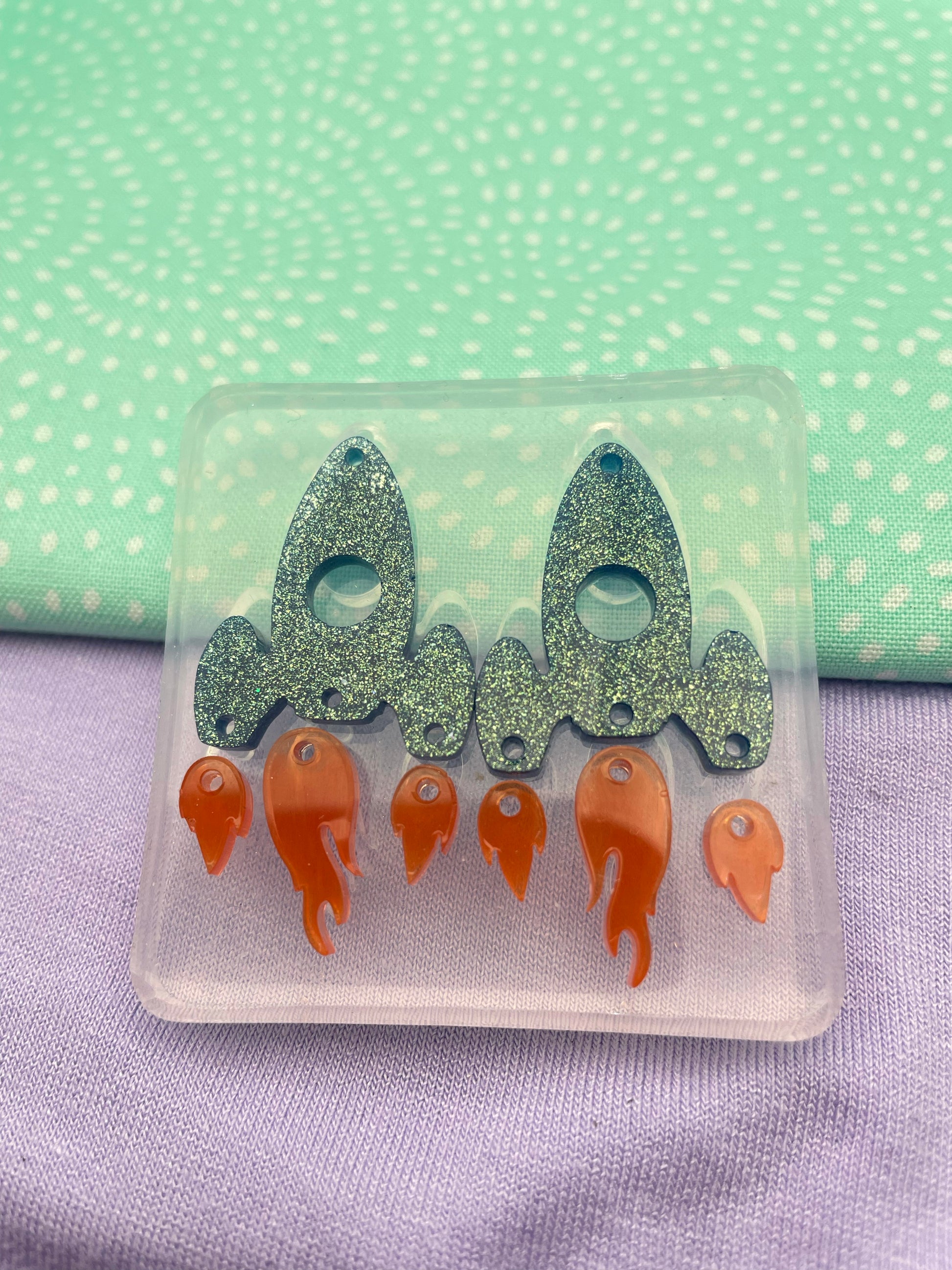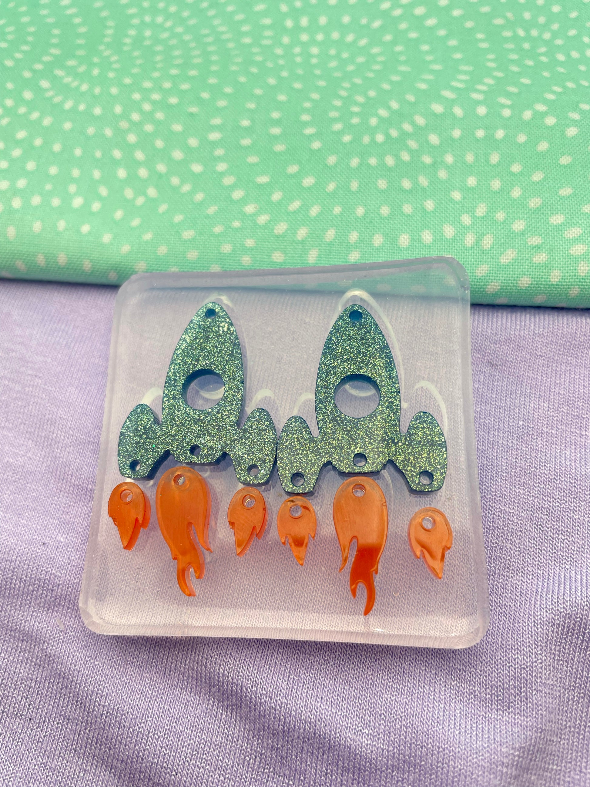 4.2 cm Rocket Fire Dangle Earring Mold Spaceship Space travel