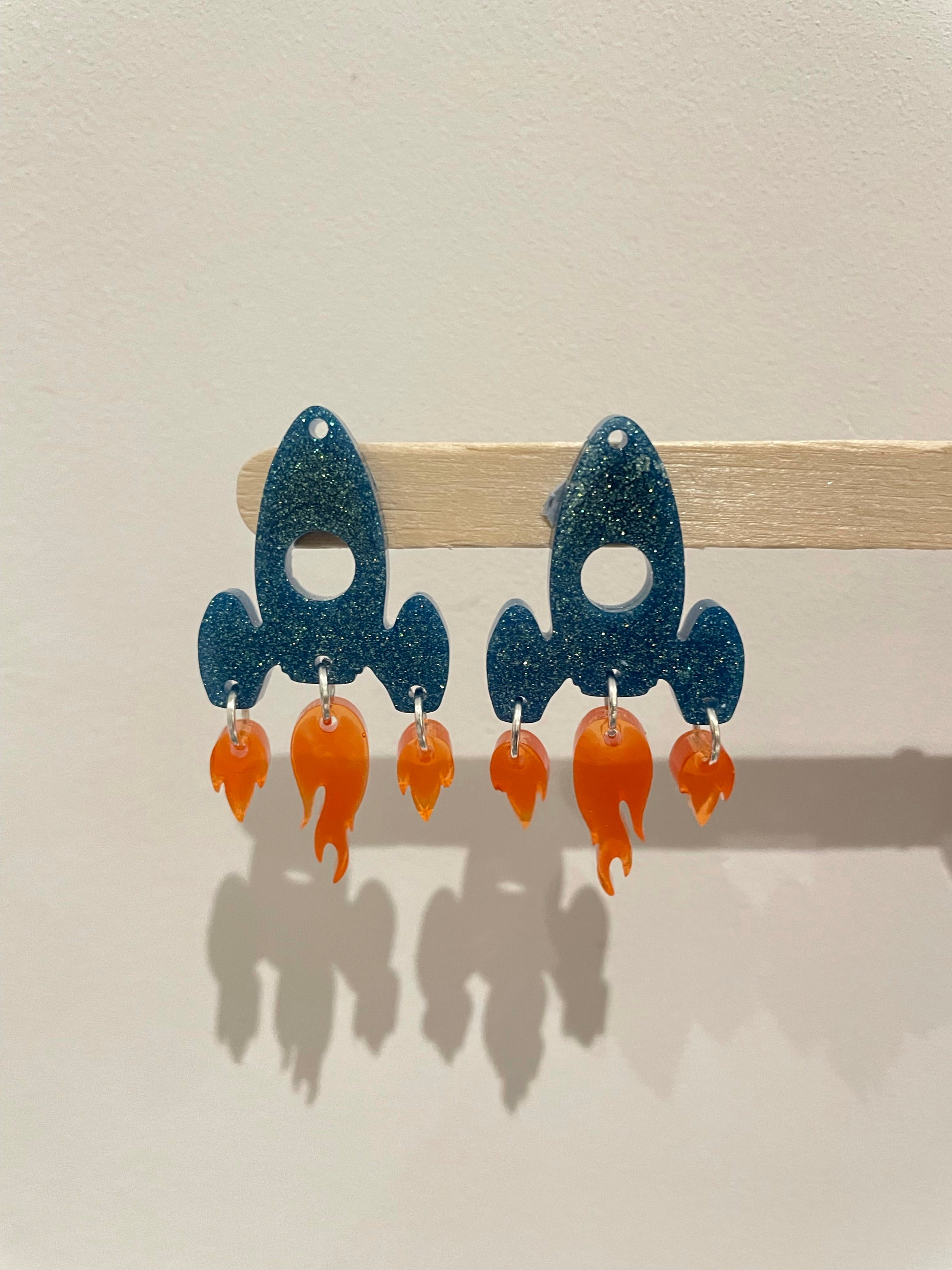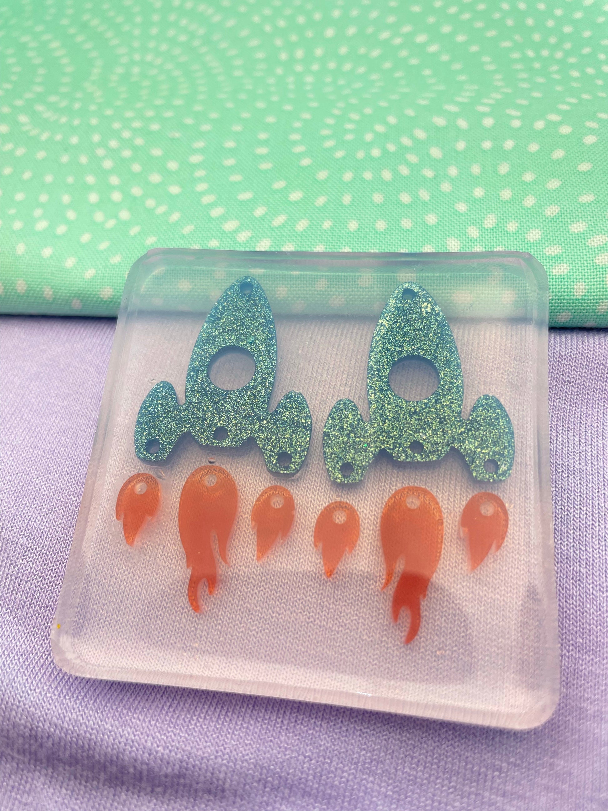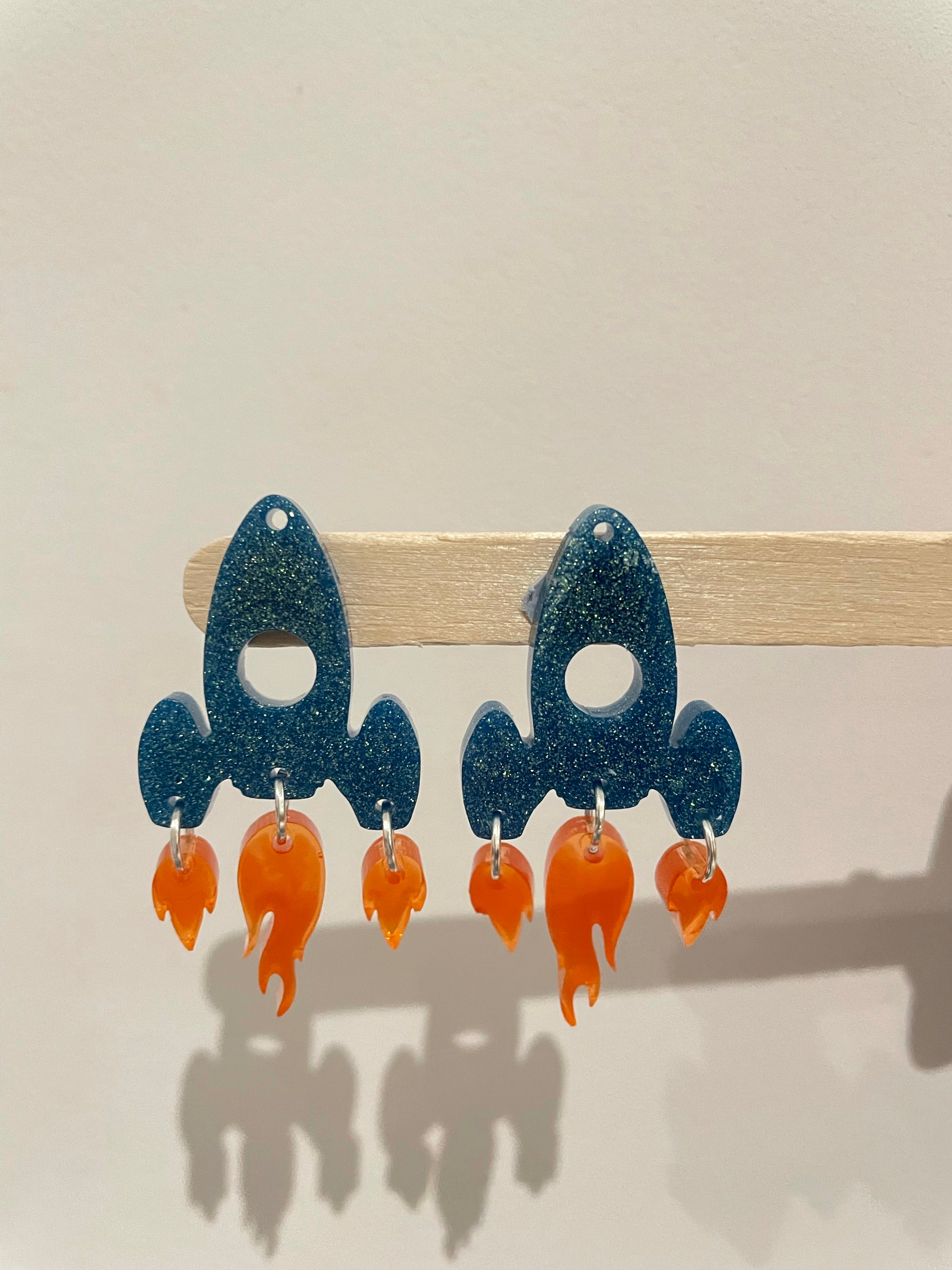 4.2 cm Rocket Fire Dangle Earring Mold Spaceship Space travel