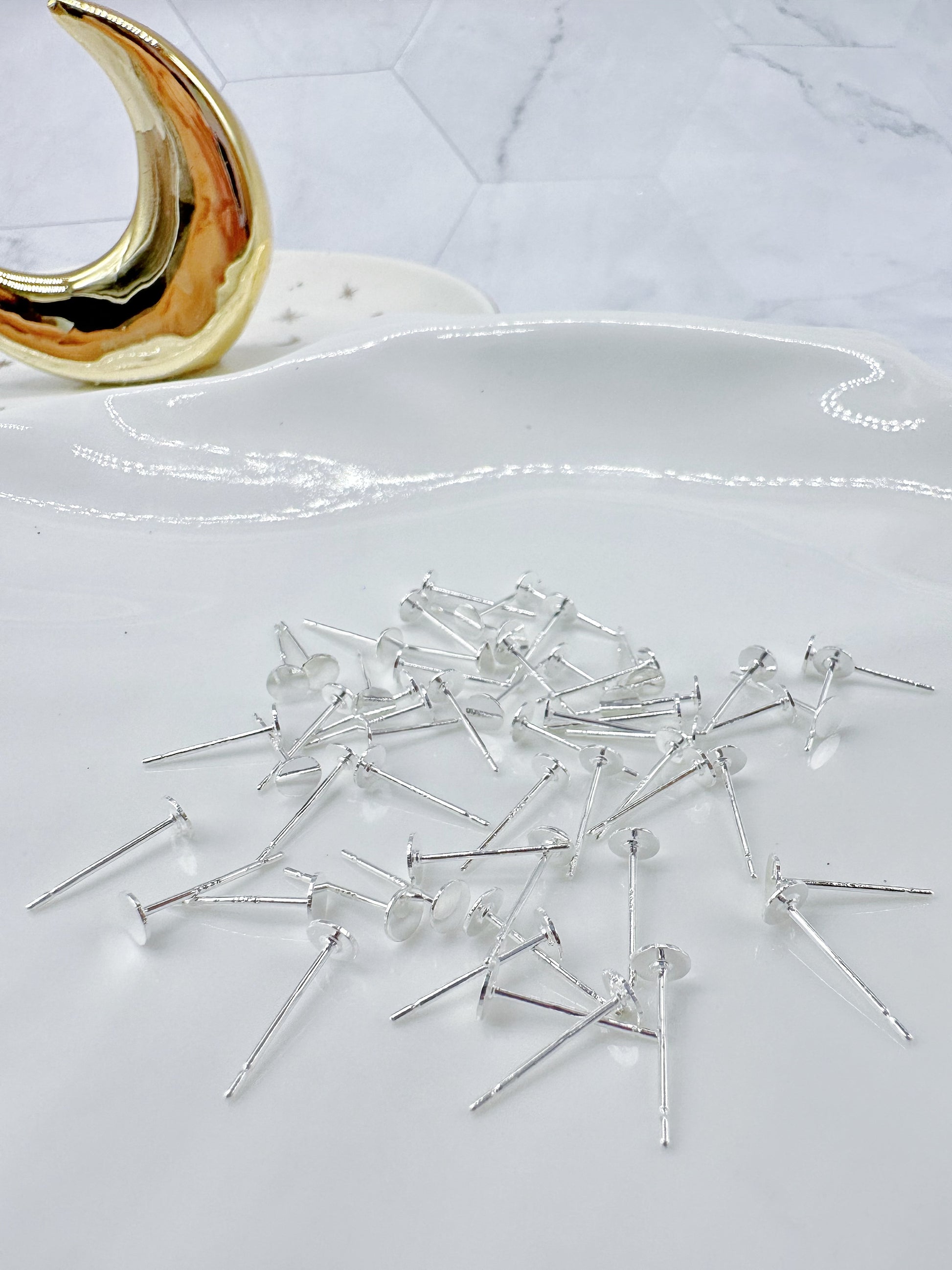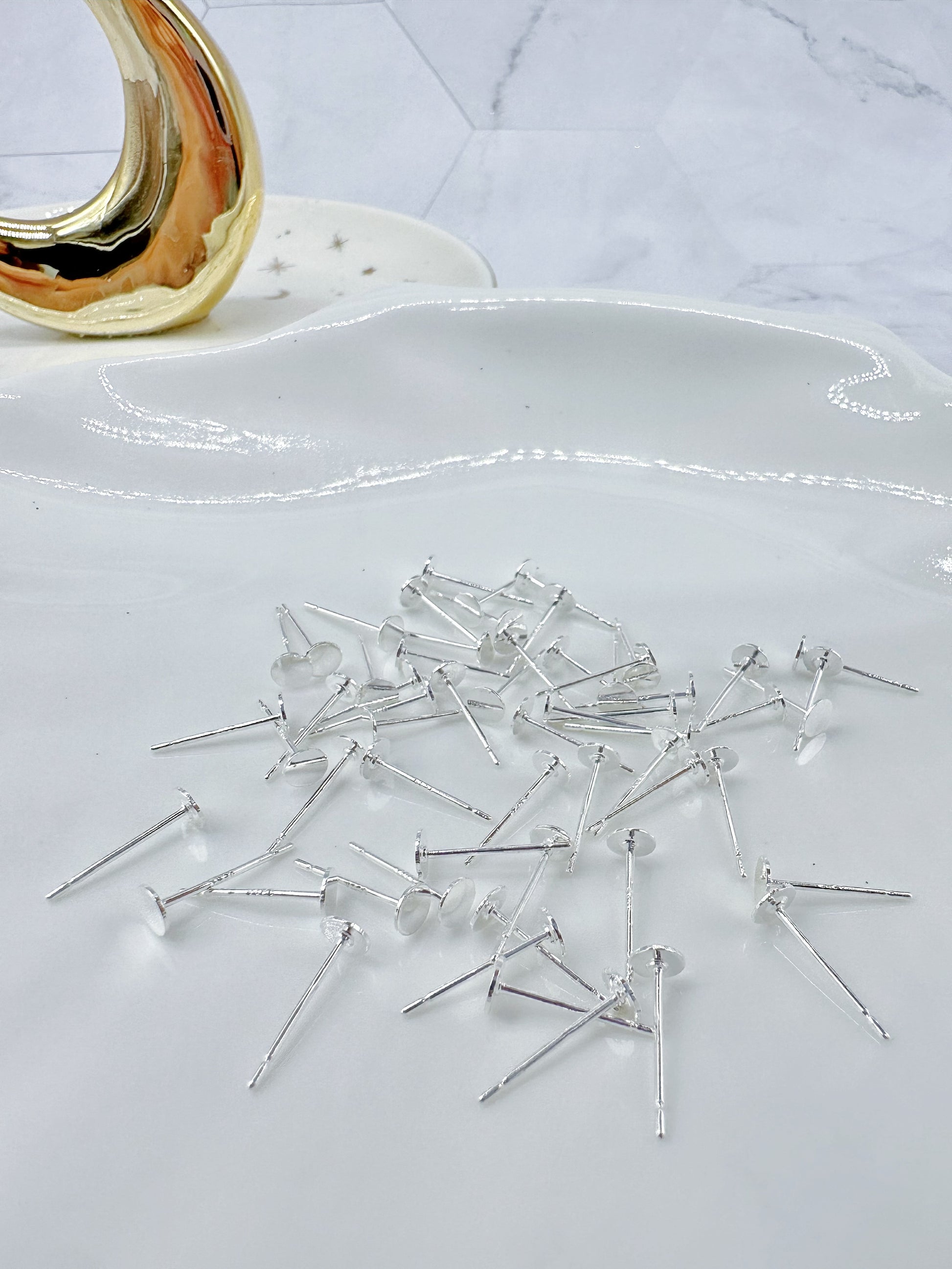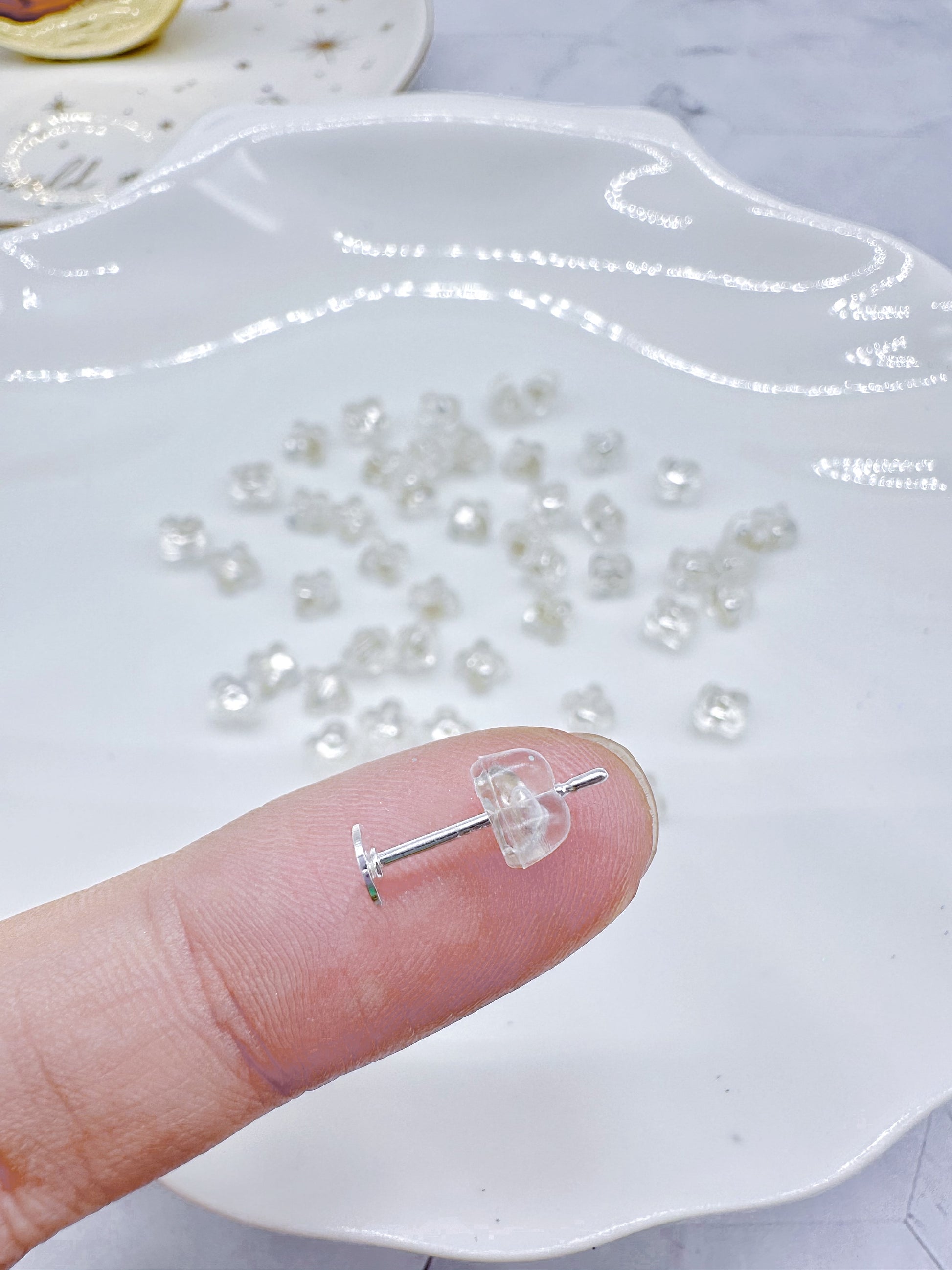 Silver Plated Earring Posts and Flower-shaped Silicone Backs