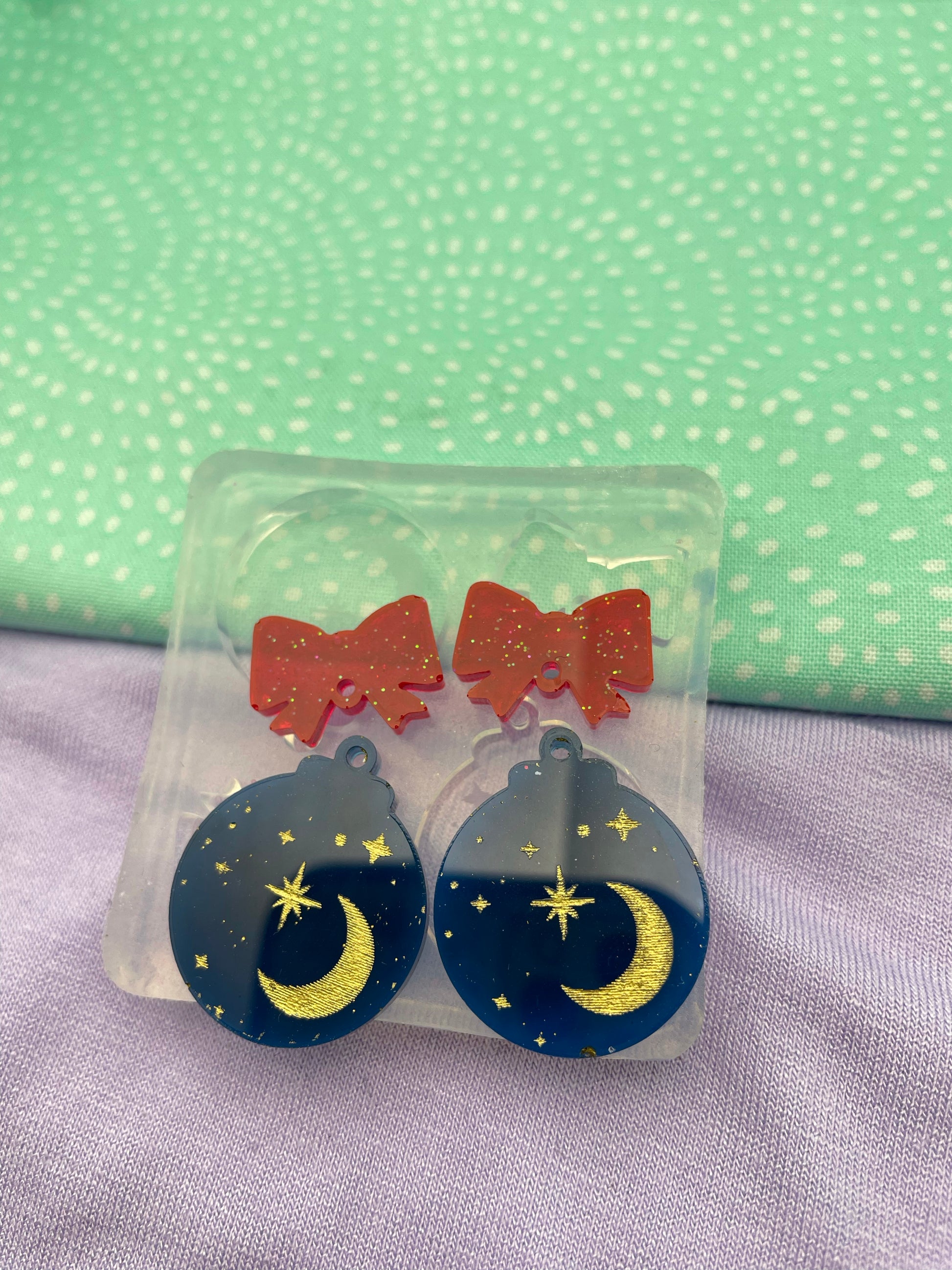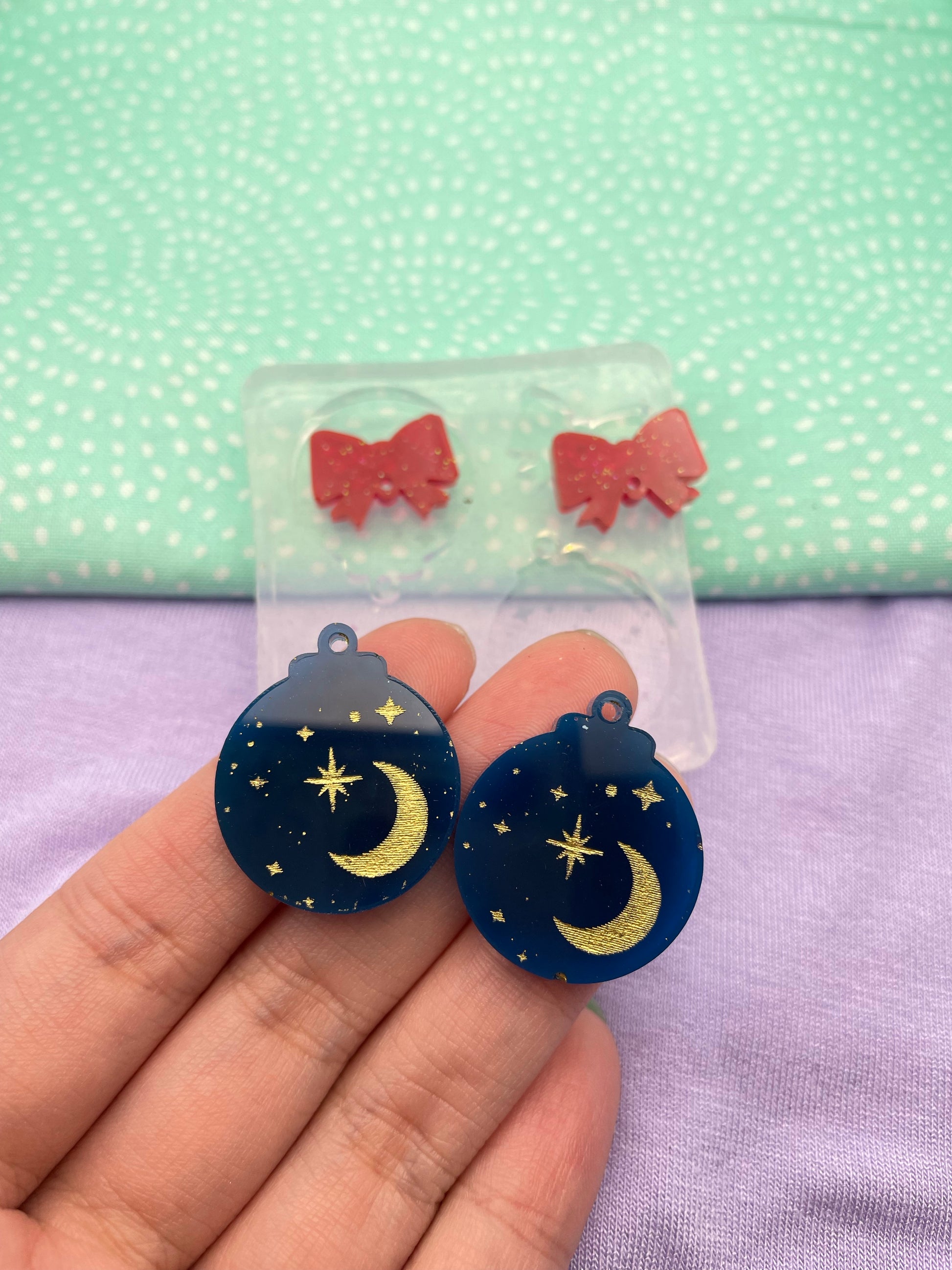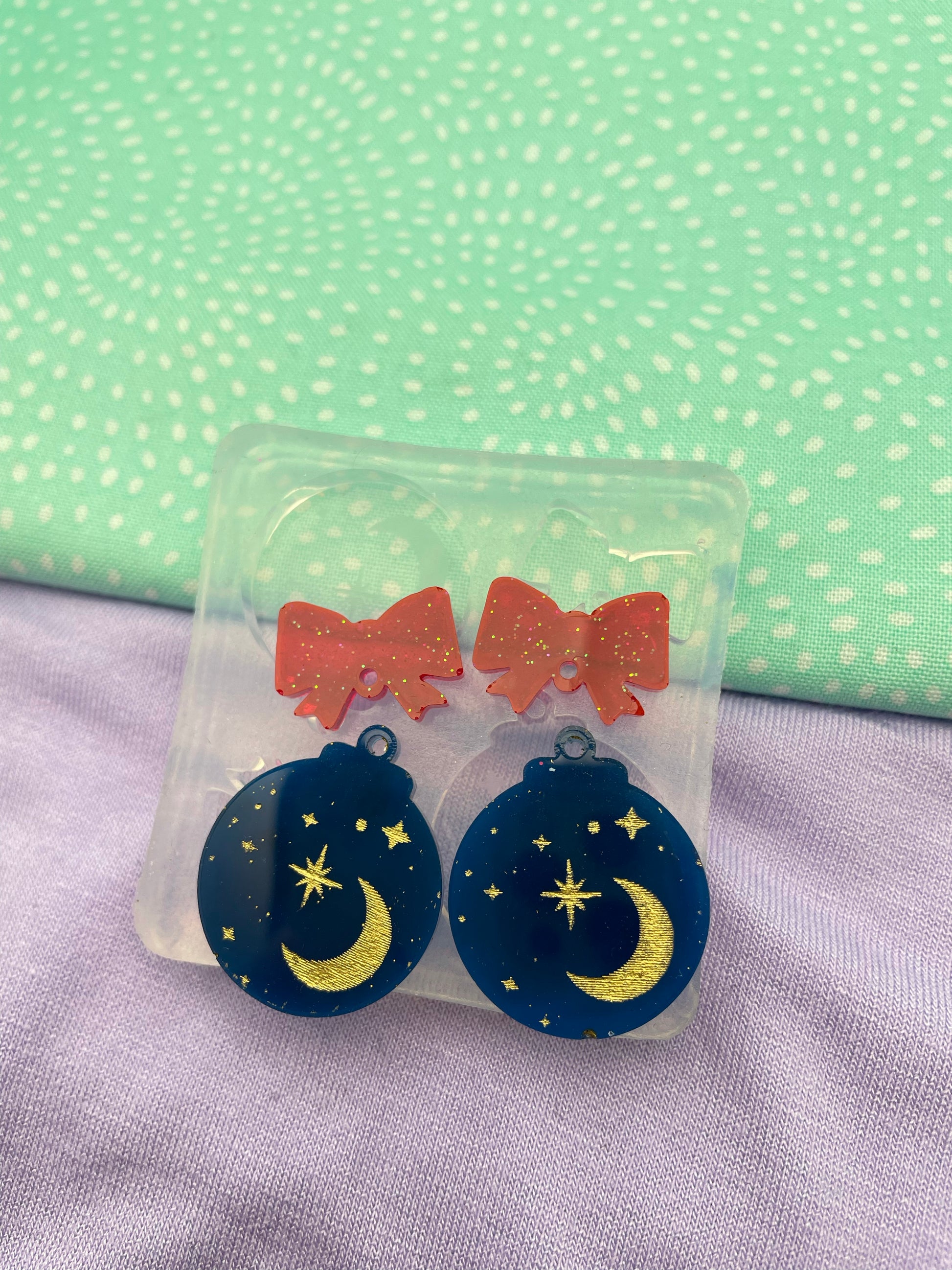 Small Celestial Bauble Christmas Earring Mold with Ribbow Bow Toppers