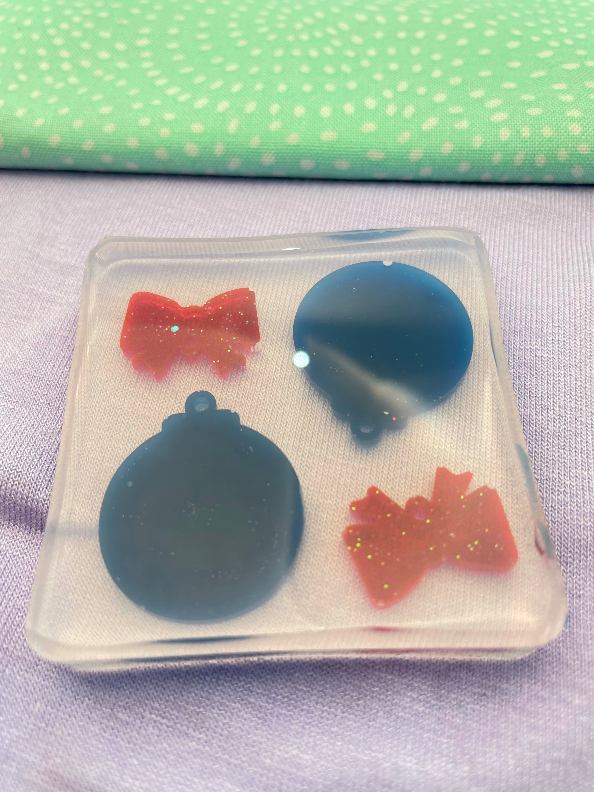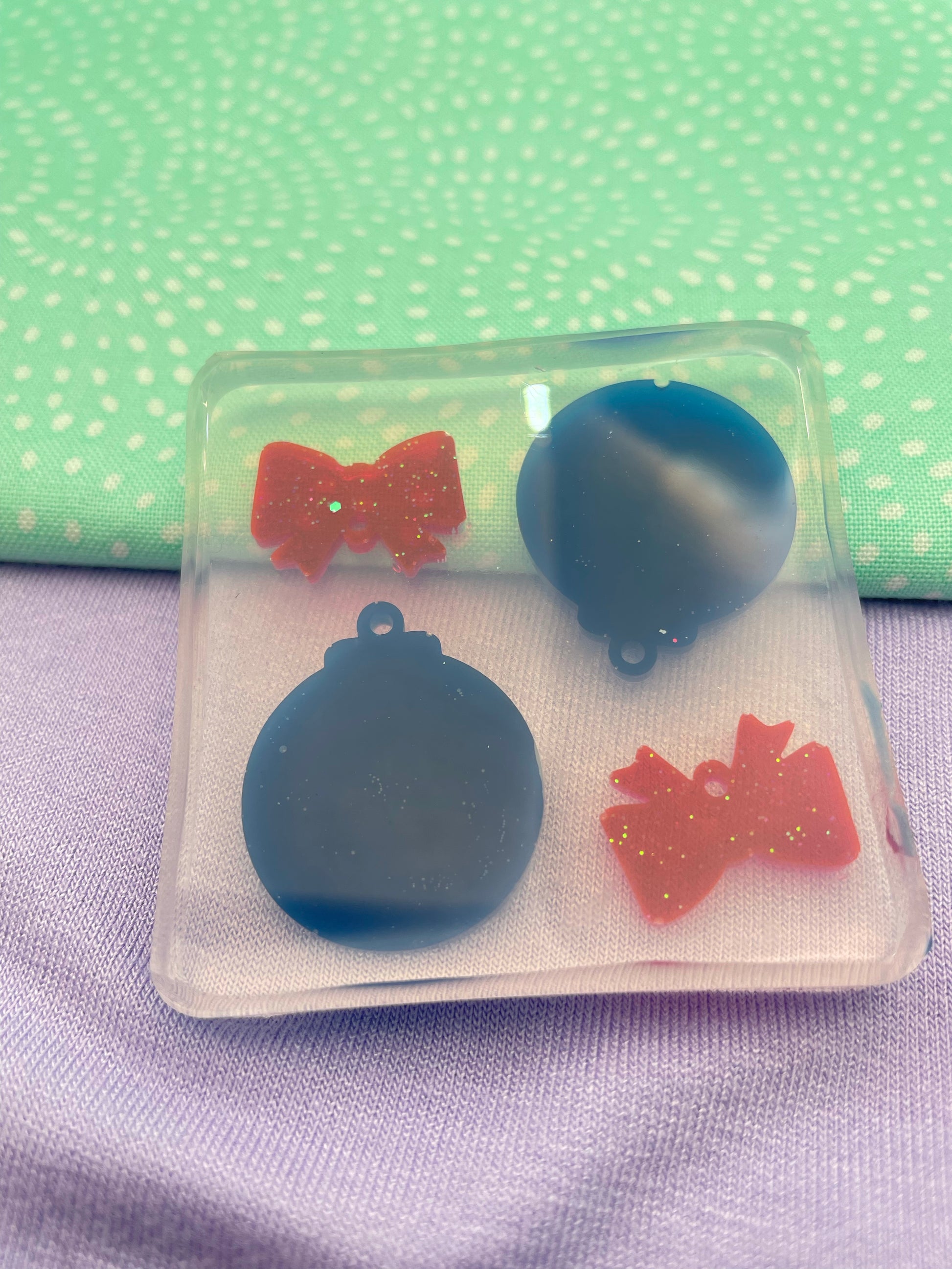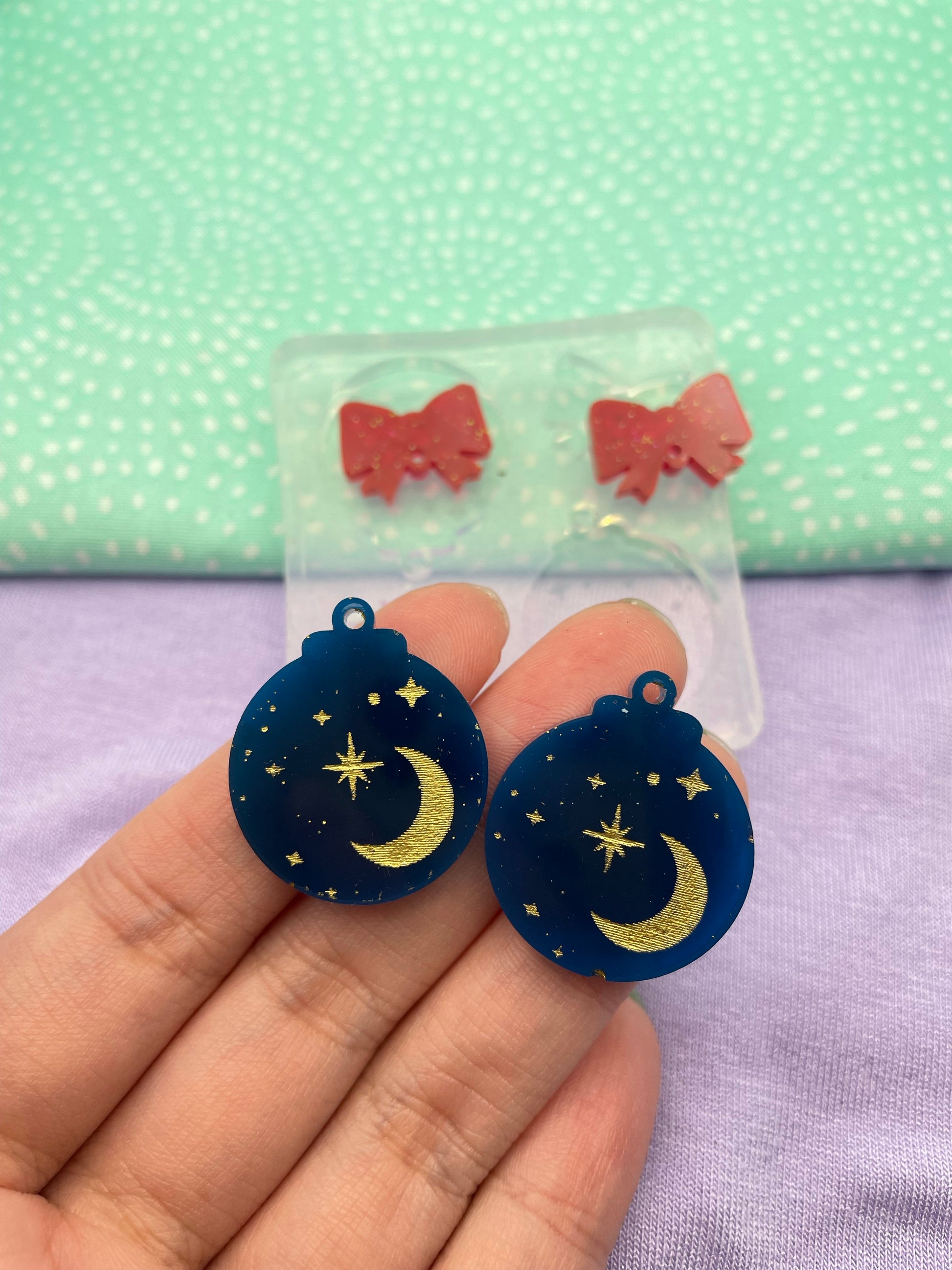 Small Celestial Bauble Christmas Earring Mold with Ribbow Bow Toppers
