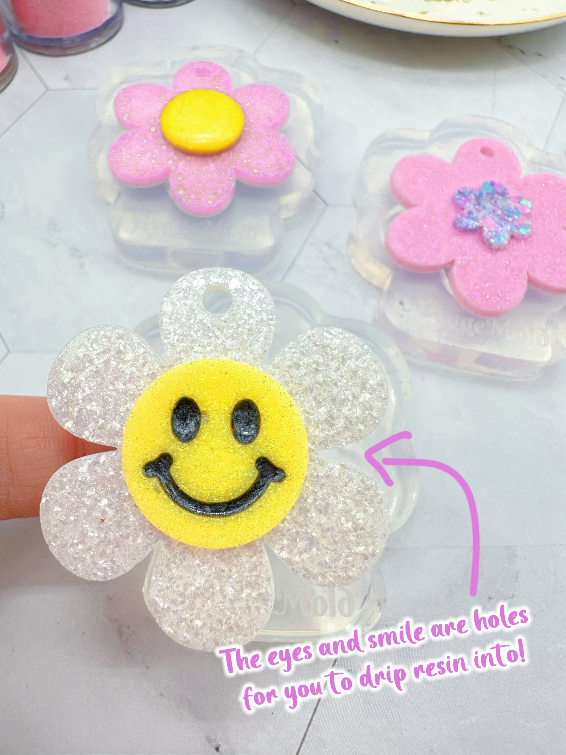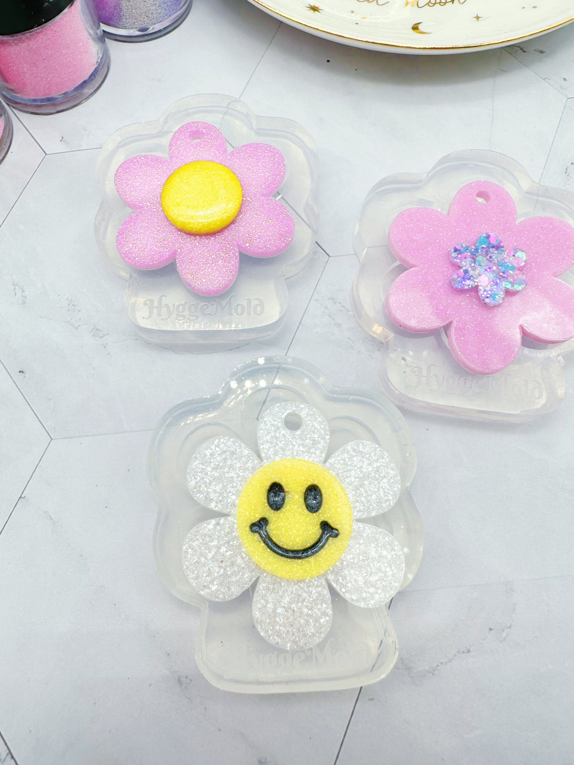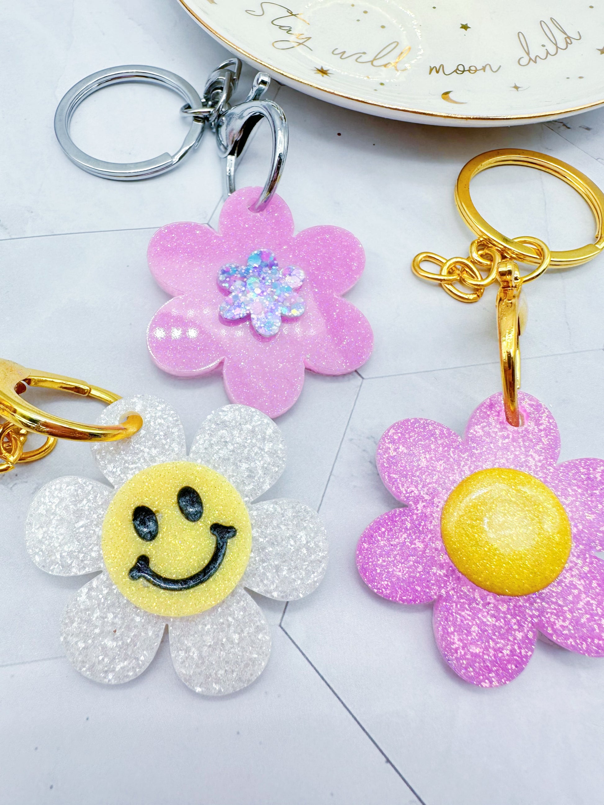Happy Face Domed centre Flower Keychain Keyring Mold Choose your style