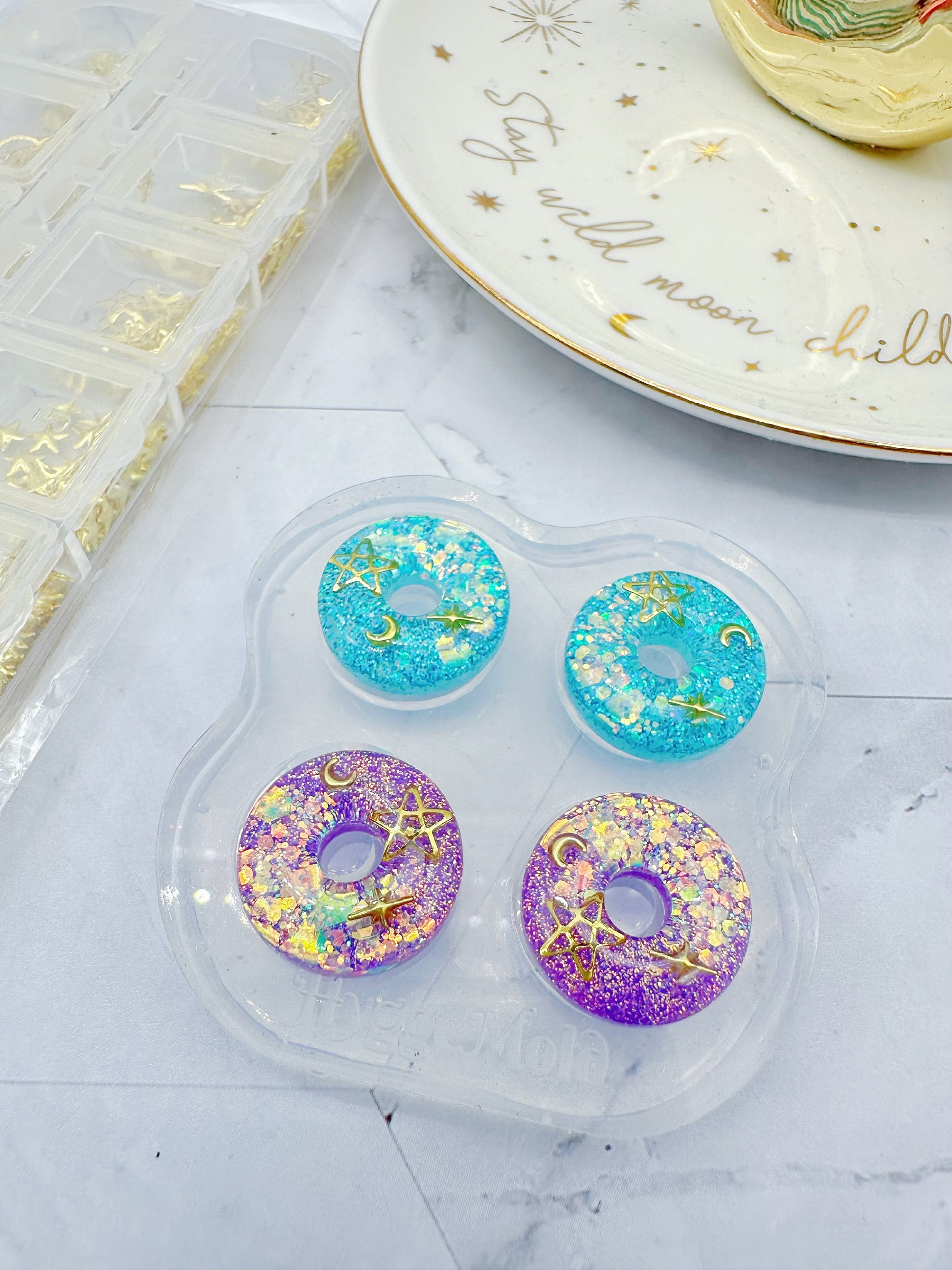 Although colored silicone molds with mica or glitter are very attractive, we usually don't recommend them because clear silicone molds give you a better vision as to what's going on inside e.g. trapped bubbles and so are more practical for resin artists. However, if you would like to get a colored mold, we have the pigment needed. Please contact us for more details.
