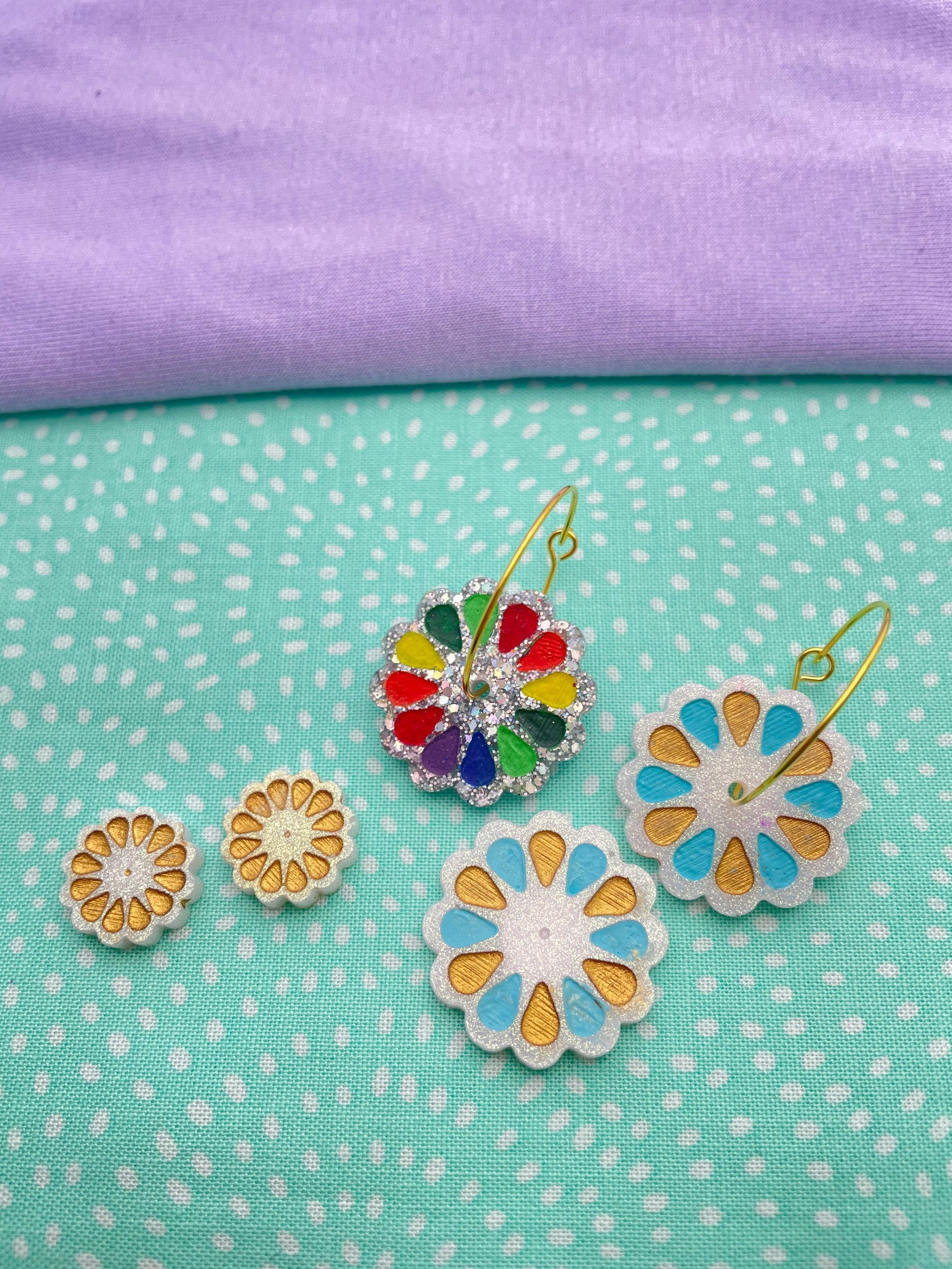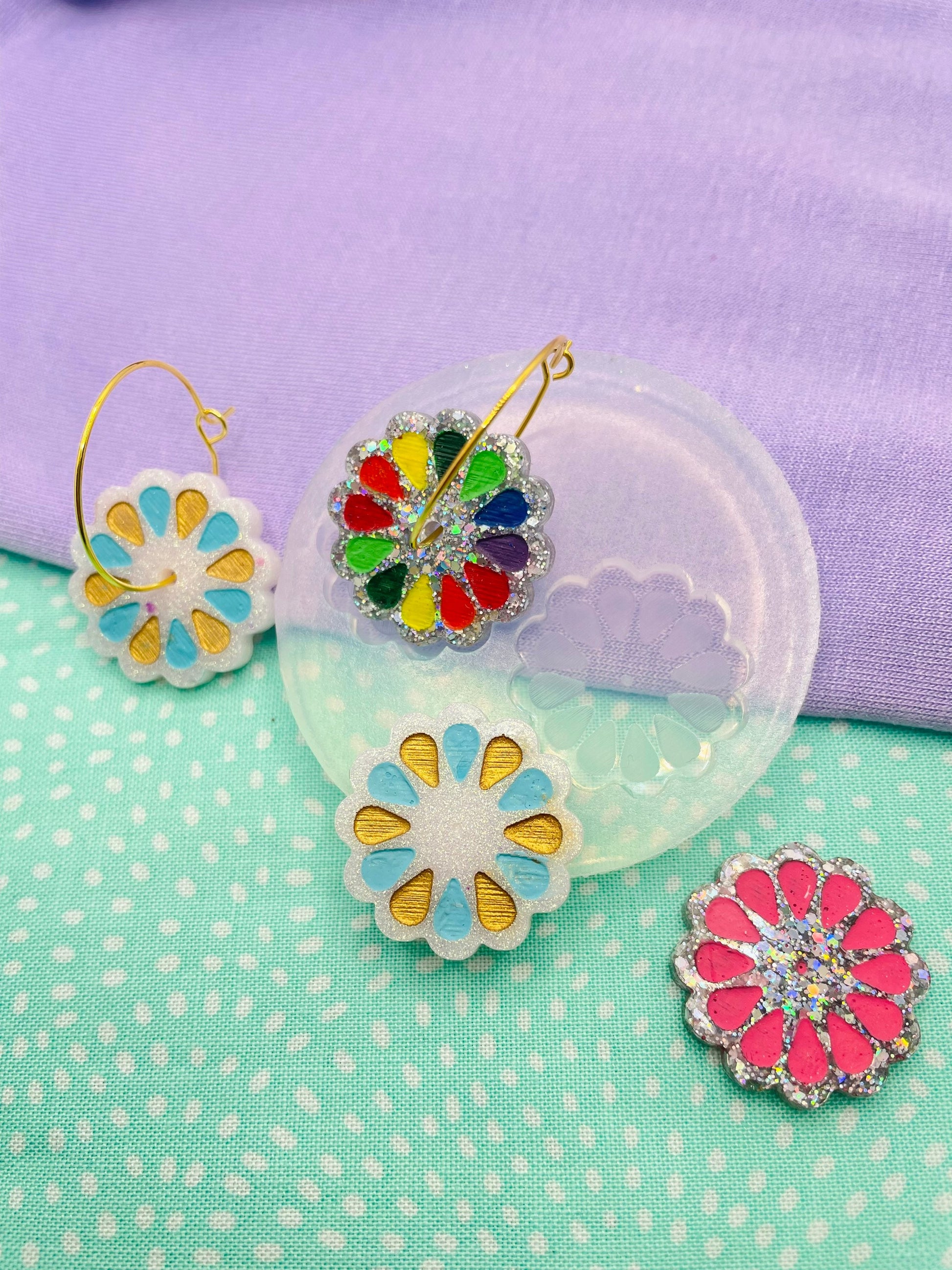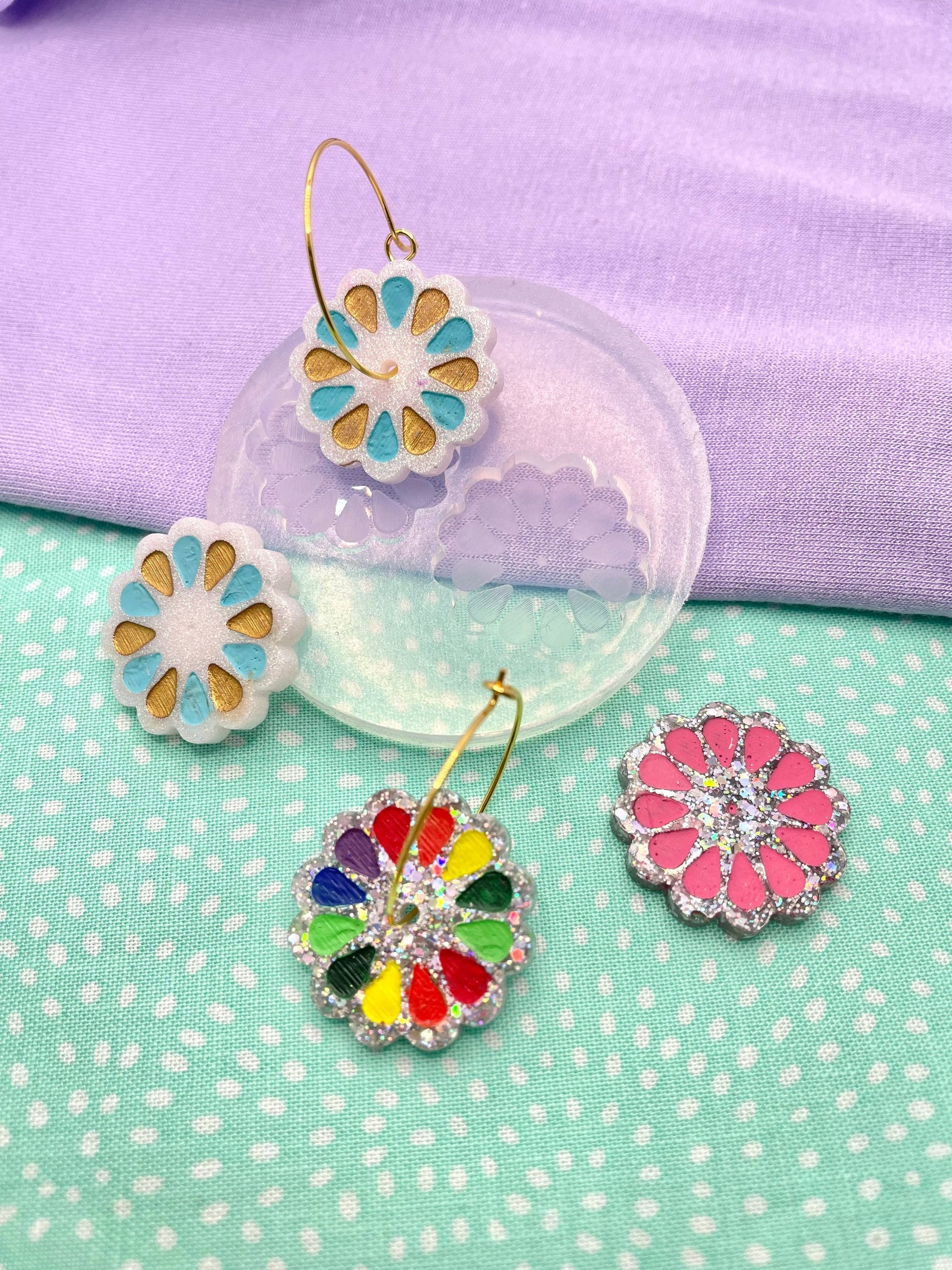 Versatile Engraved Flower Stud spinner Earrings Mold