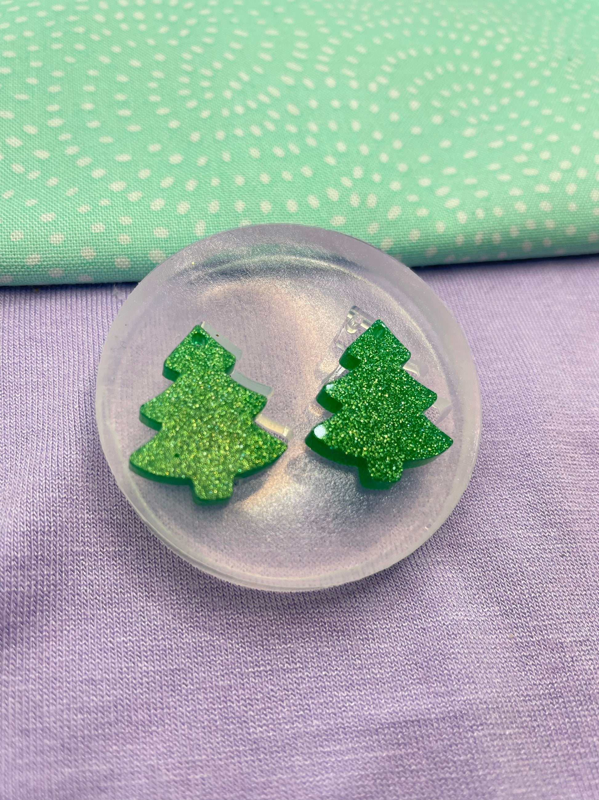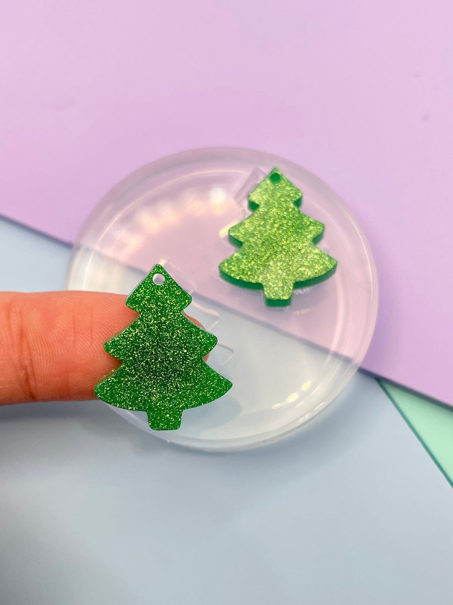 Small mini 2 cm tall Christmas tree dangle earring mold