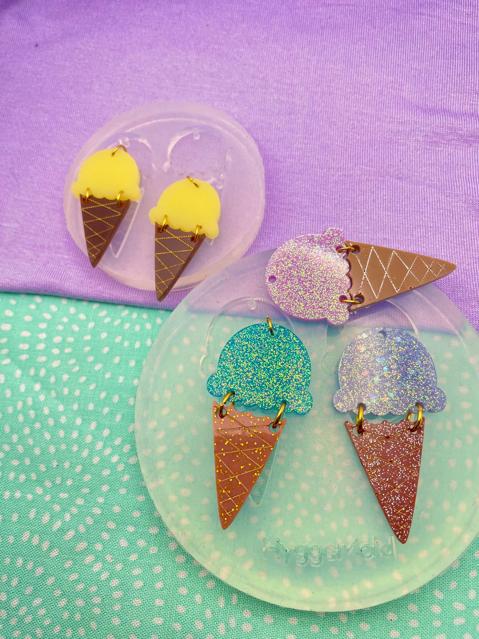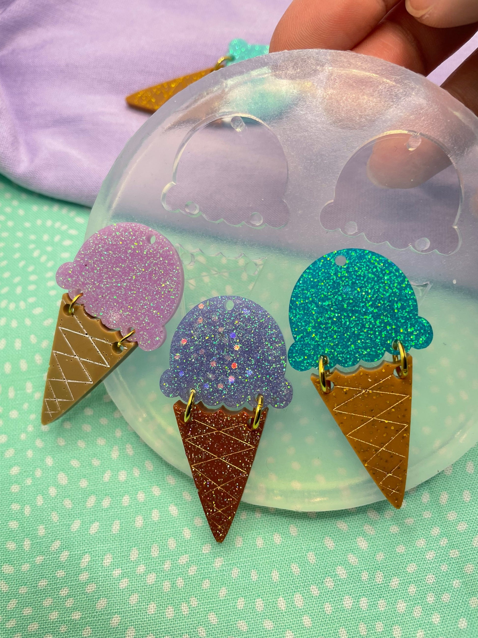 3.7/4.8 cm Two-part Ice-cream dangle drop earring mold with pre-drilled holes