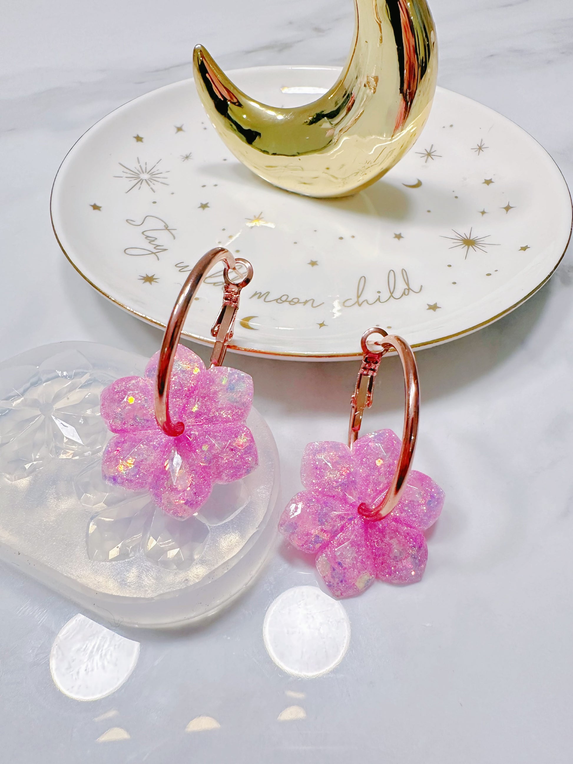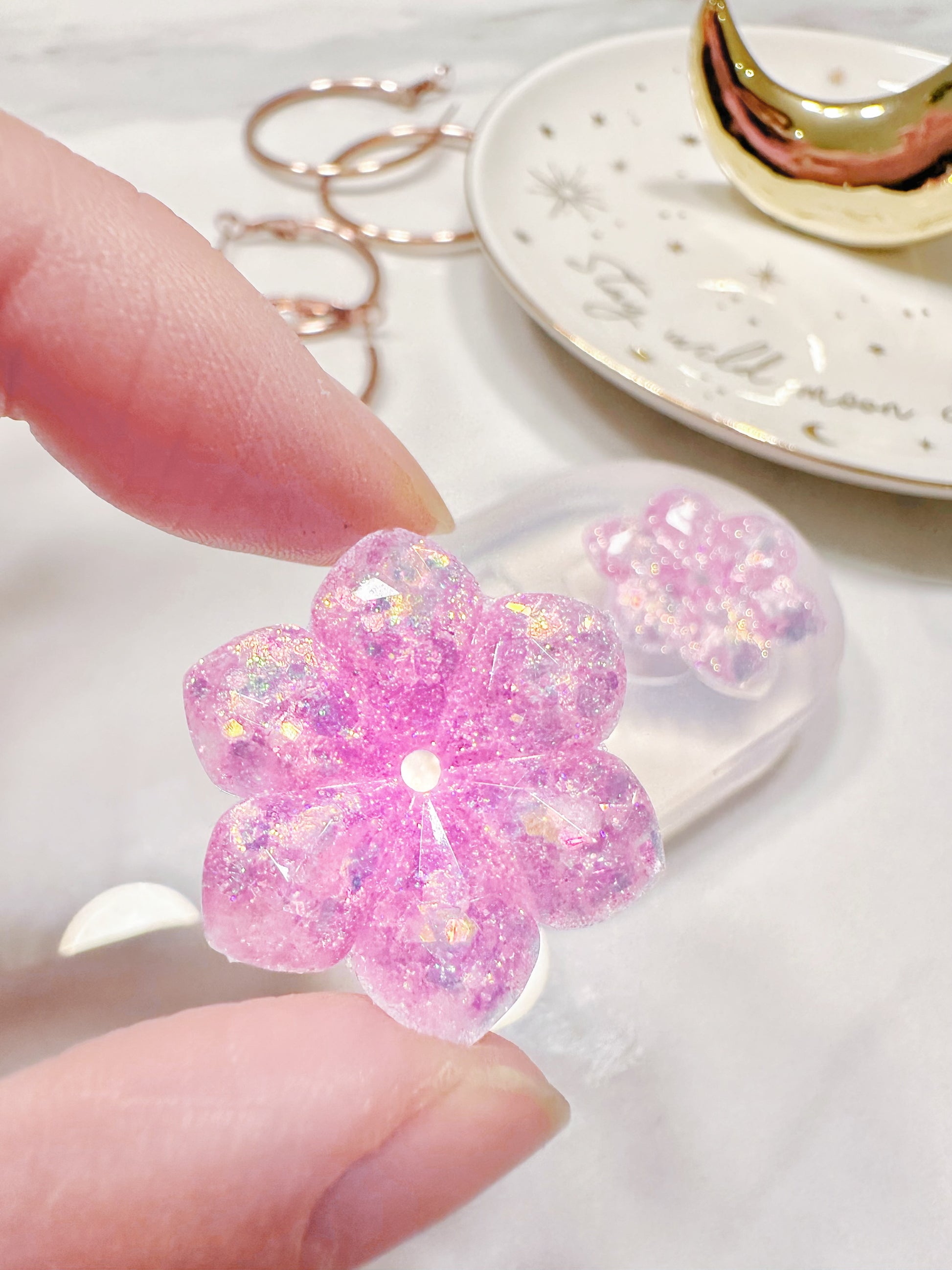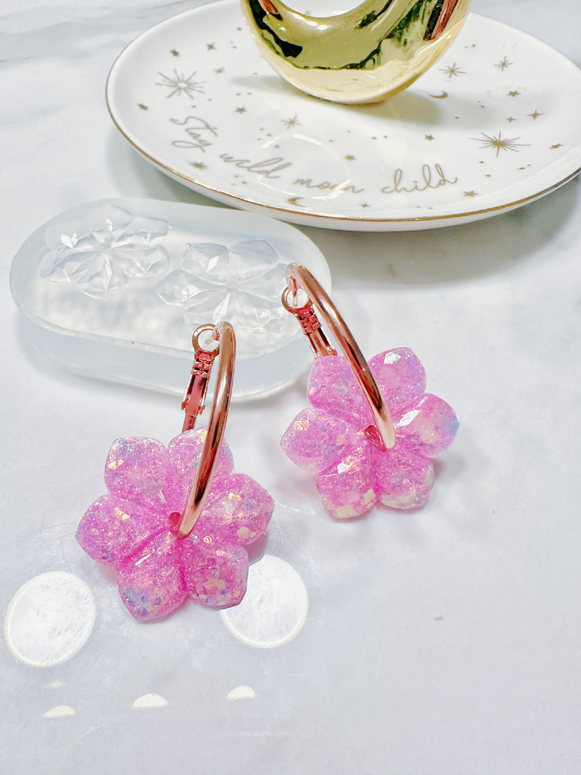3cm Medium Faceted Flower Hoop Spinner Earring Mold