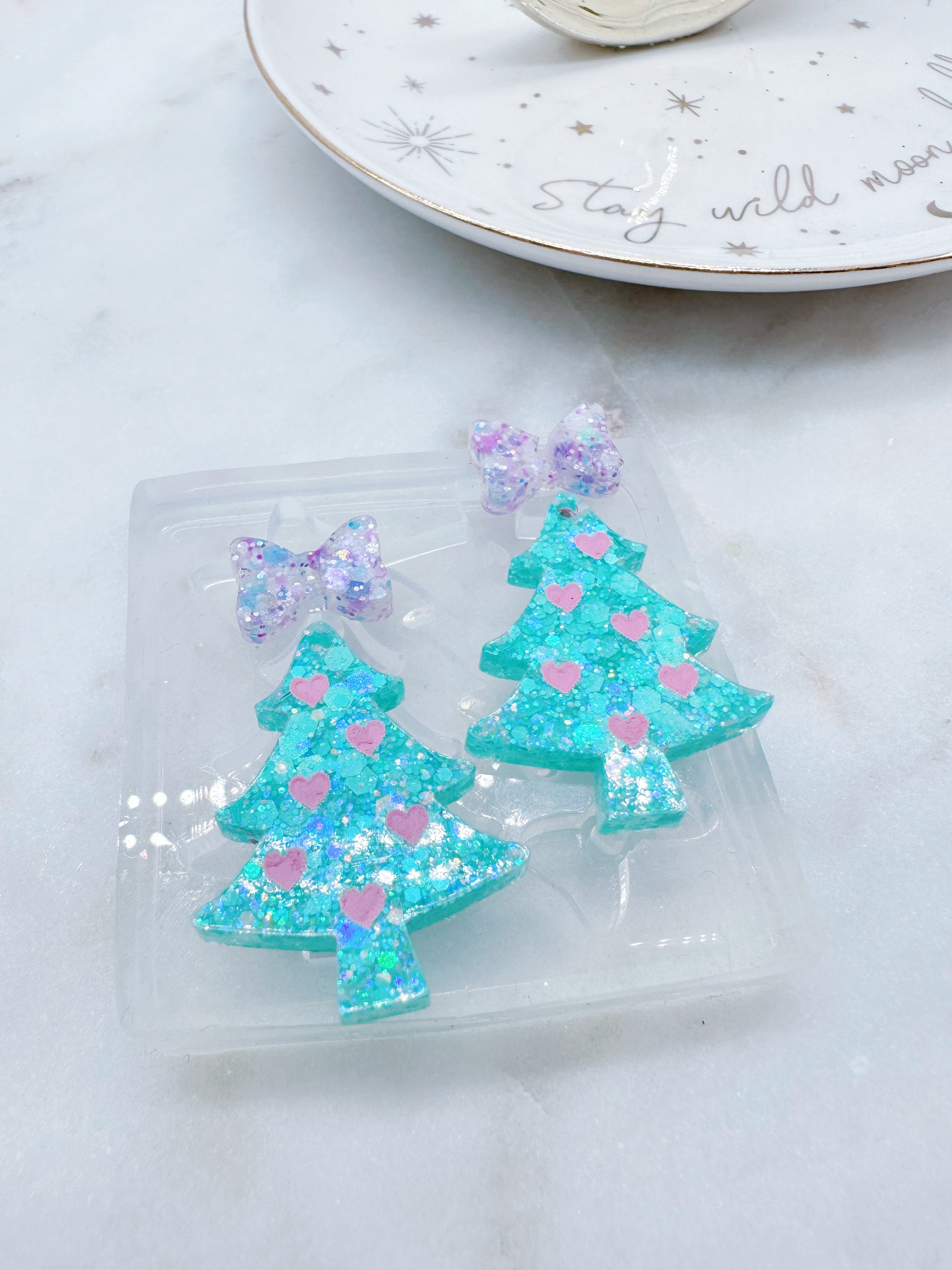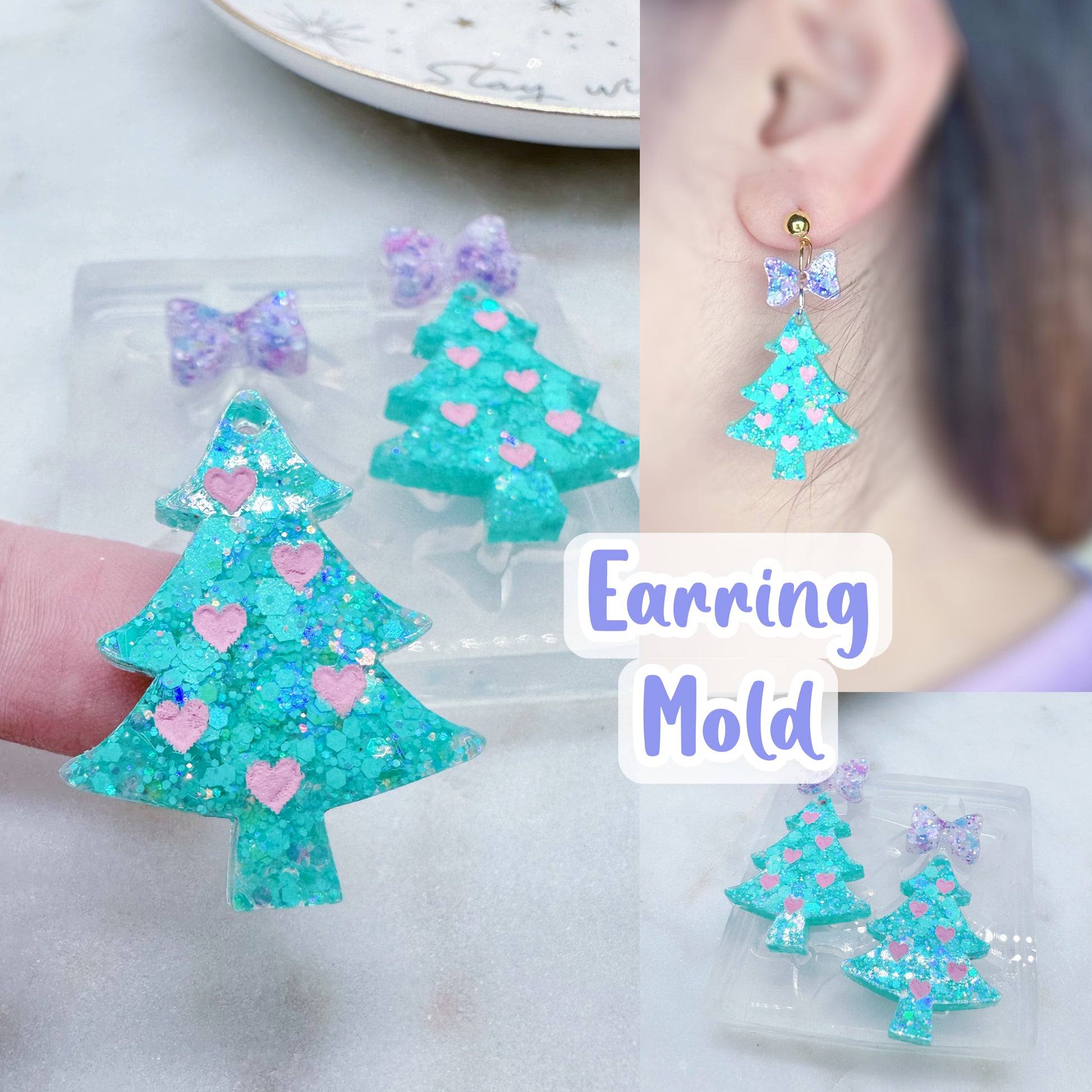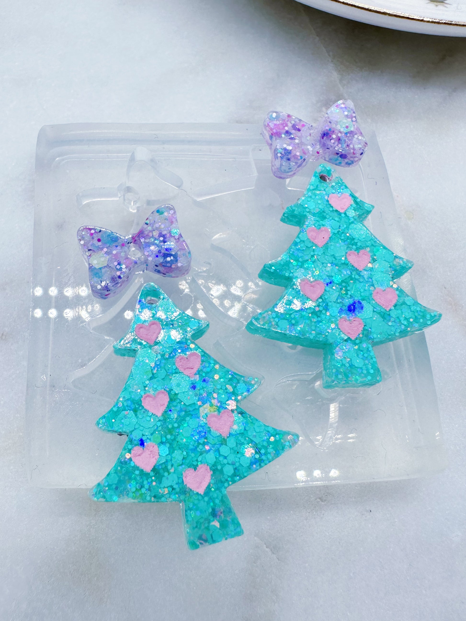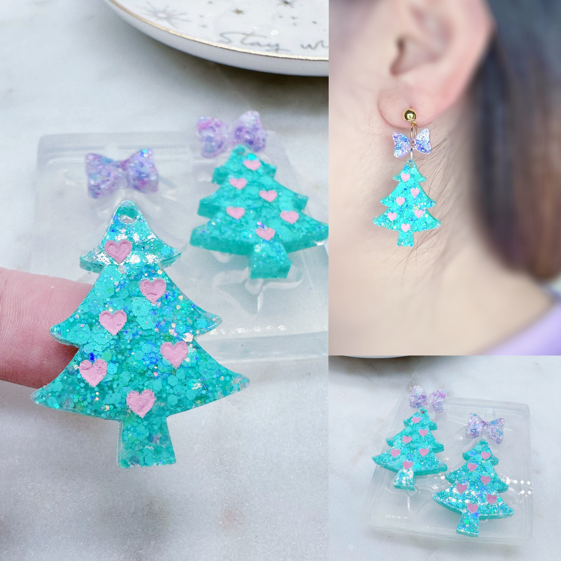3cm Small Christmas Tree with Bow Dangle Earring Mold