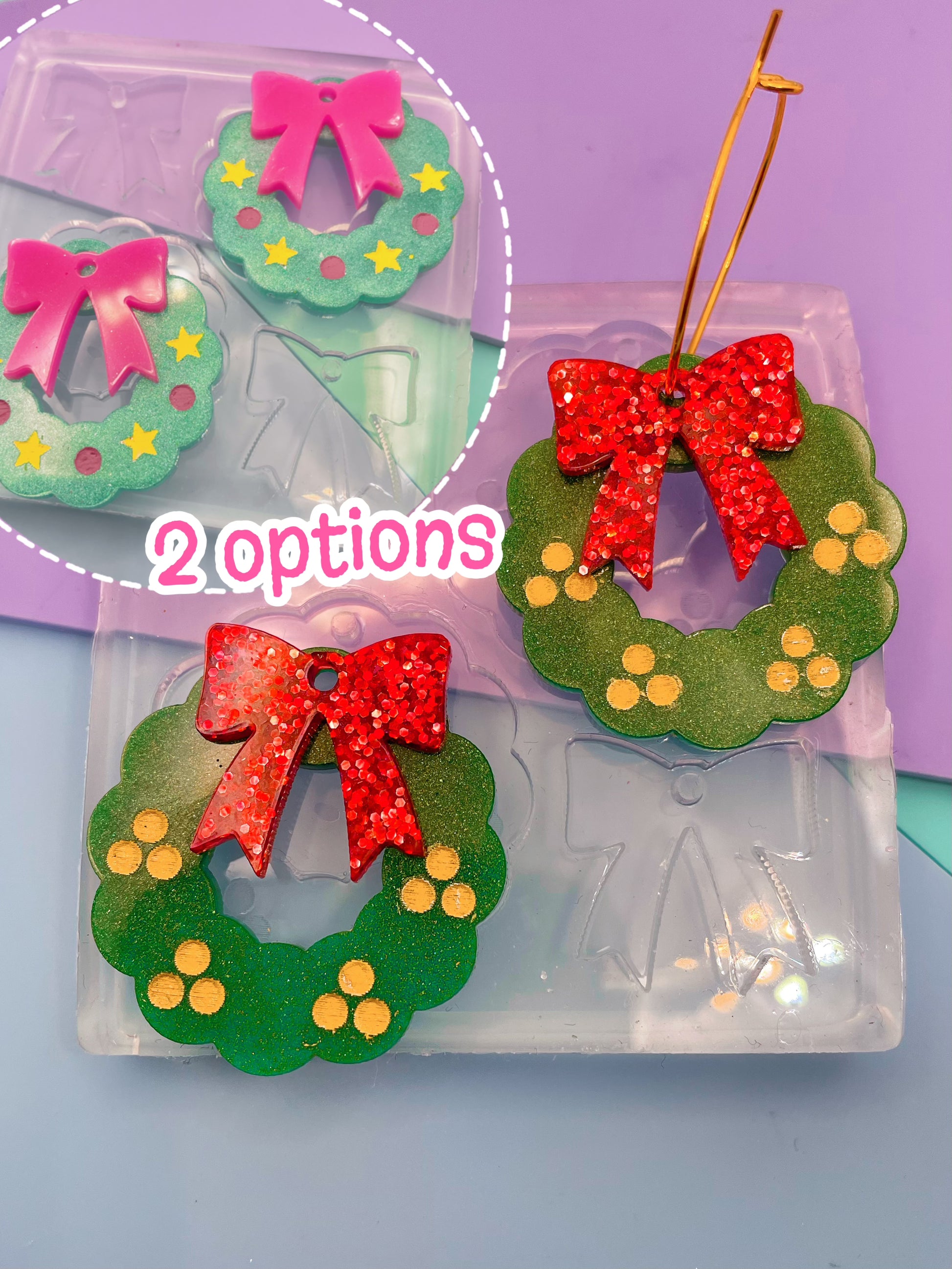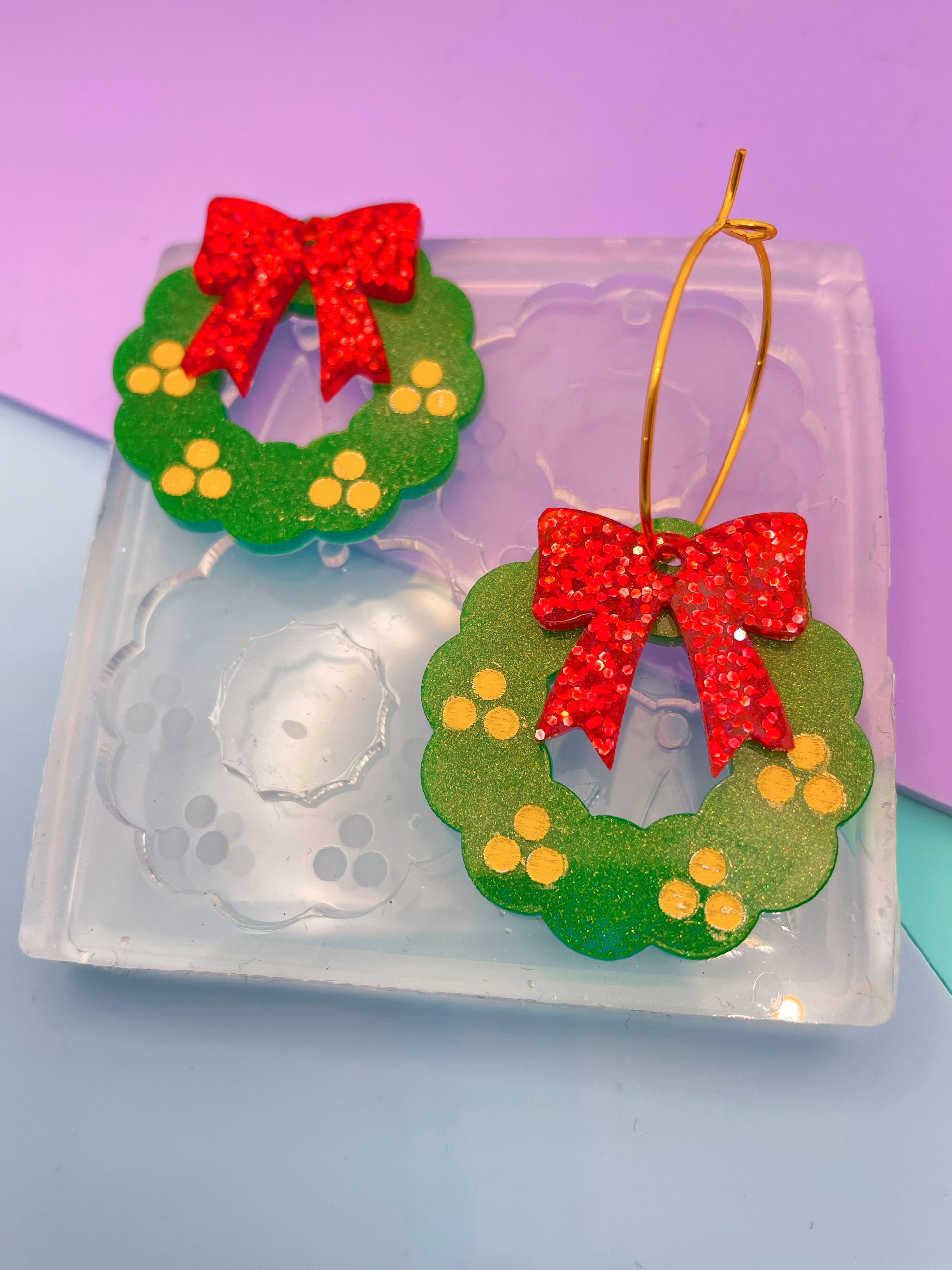 3.3cm Two-part Christmas Wreath Dangle Earring Mold