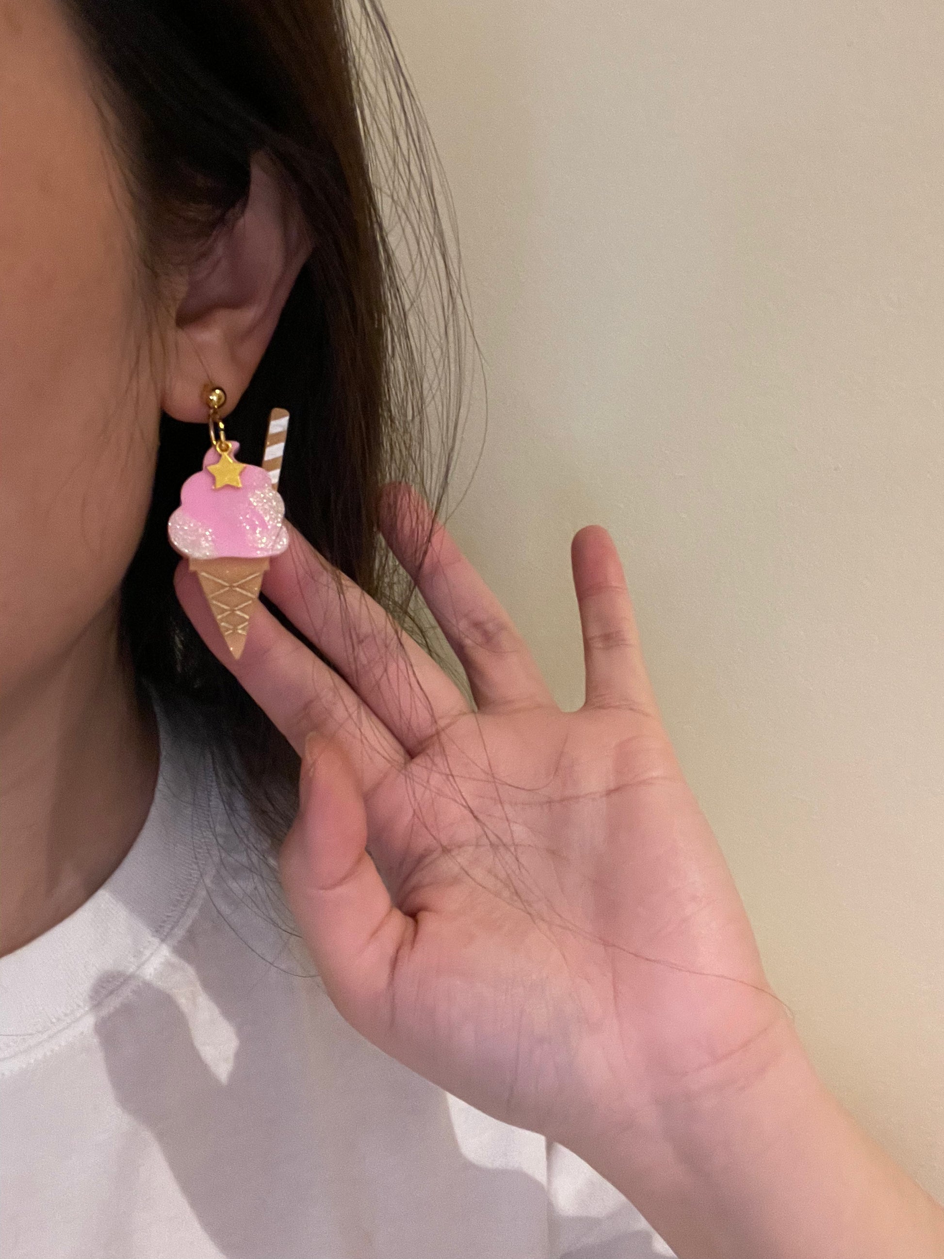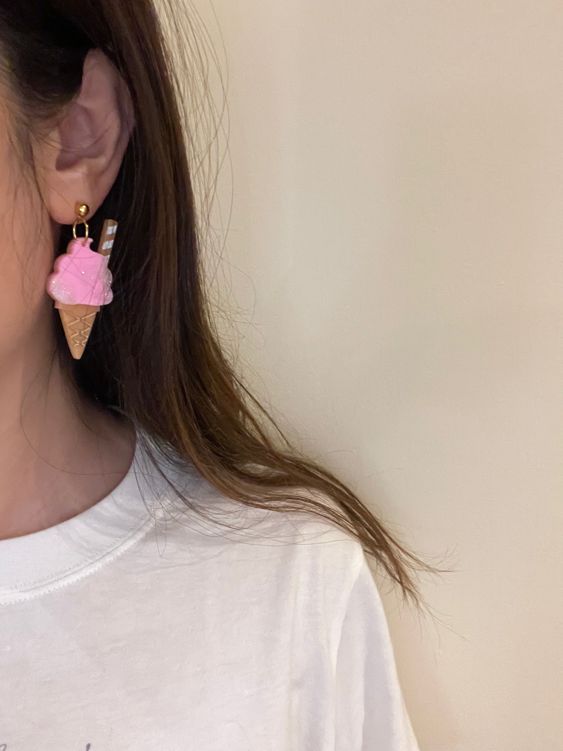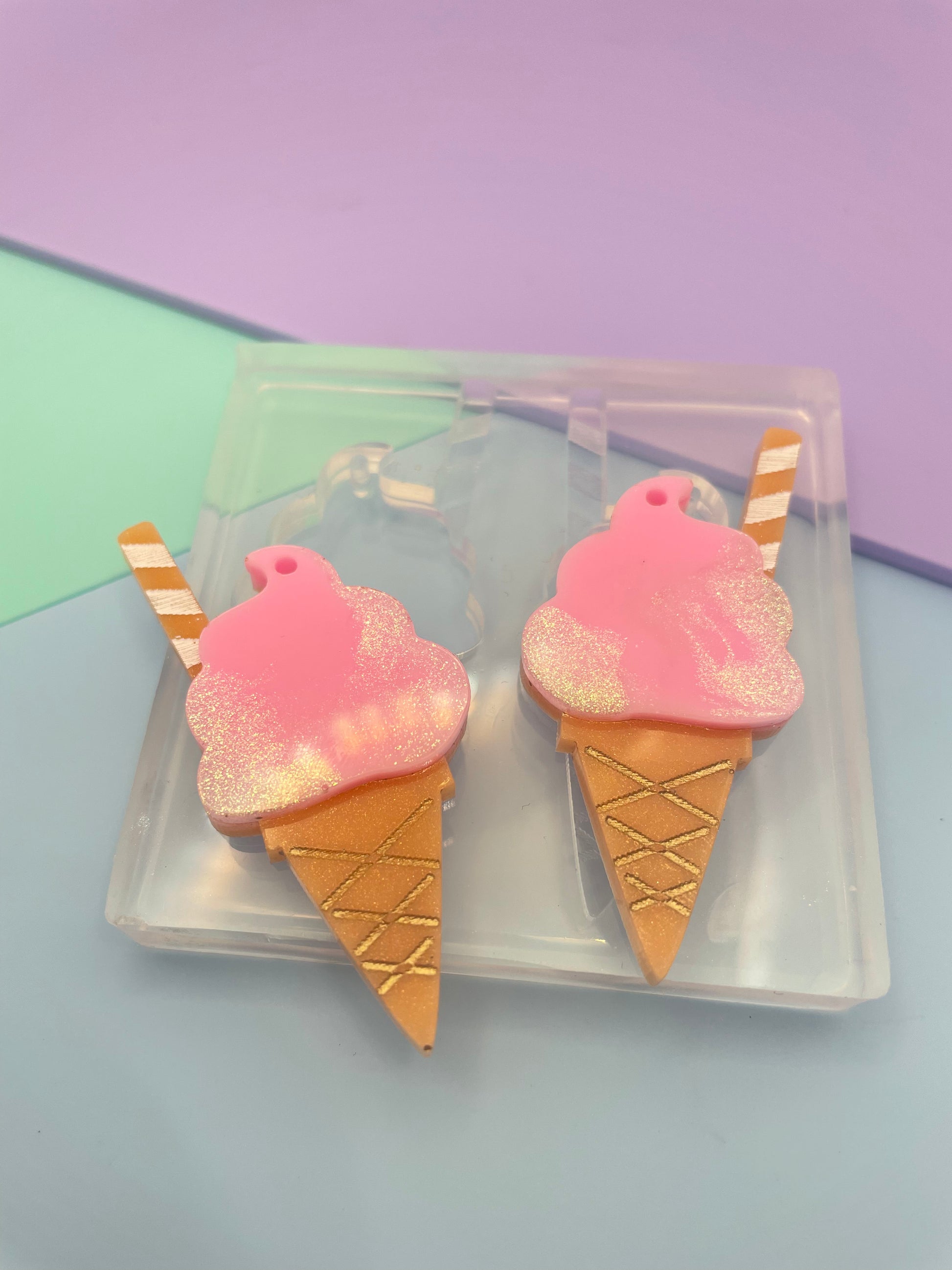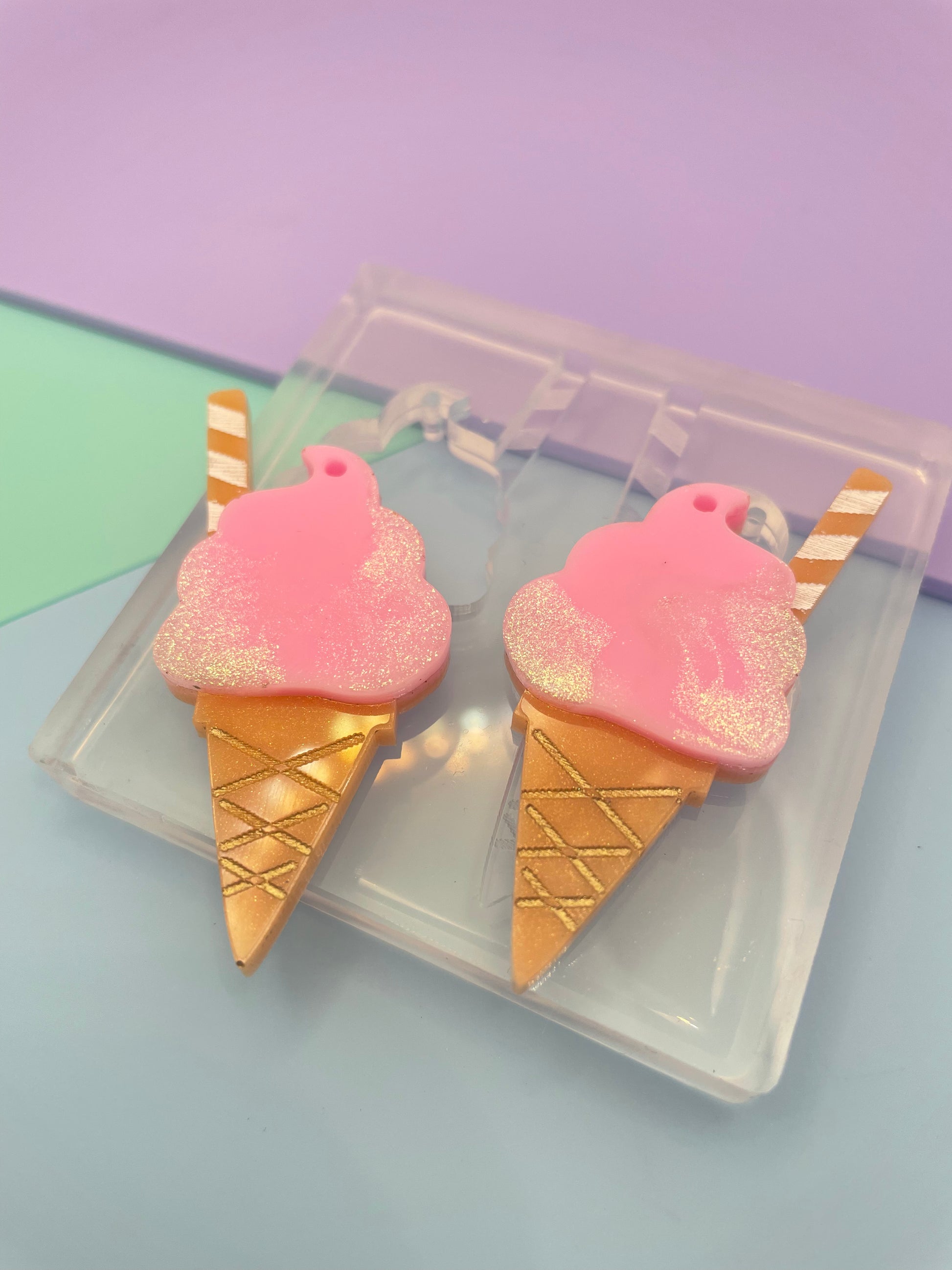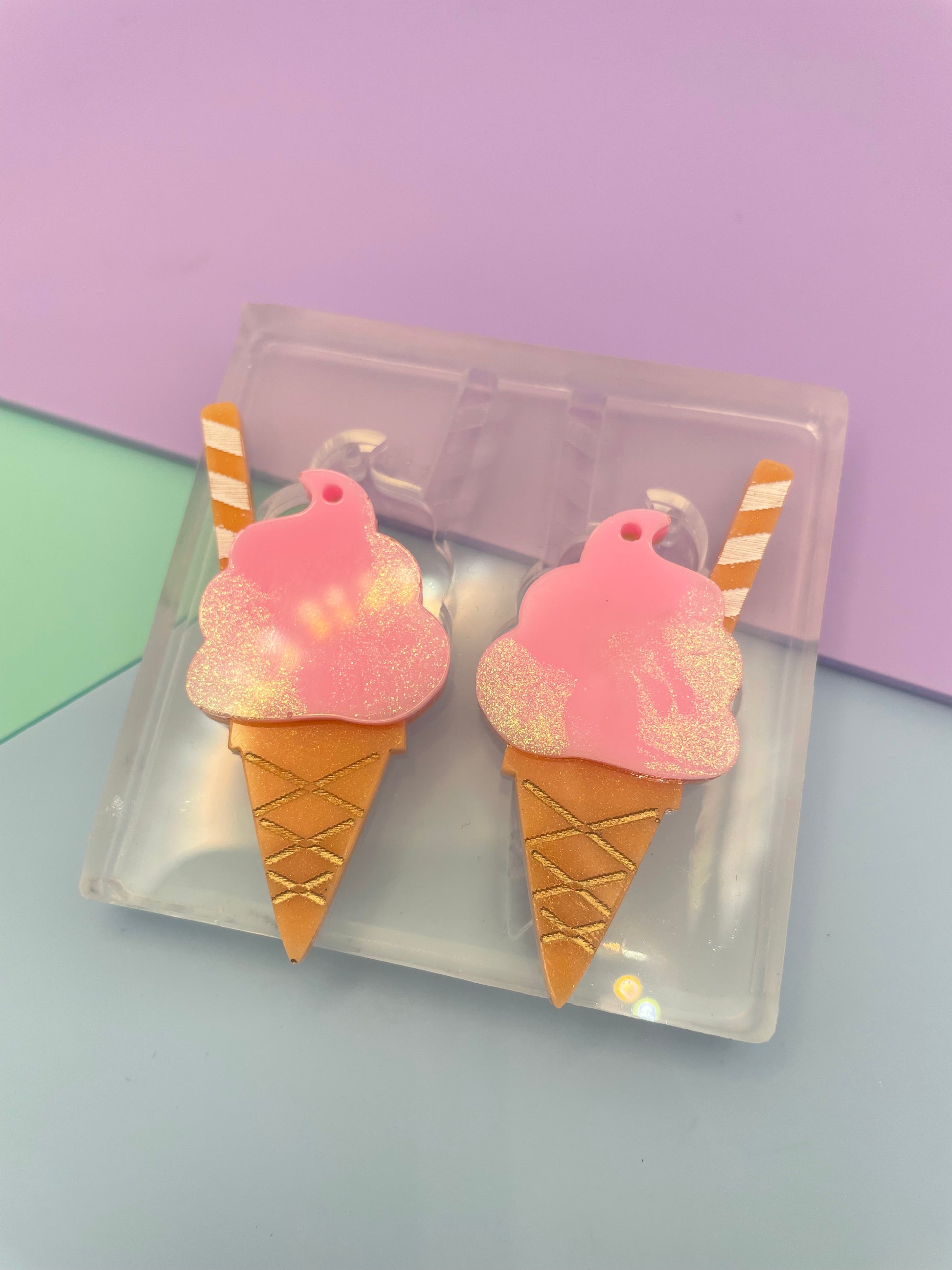 5 cm Sundae Ice Cream Waffle Cone Dessert Dangle Earring Mold