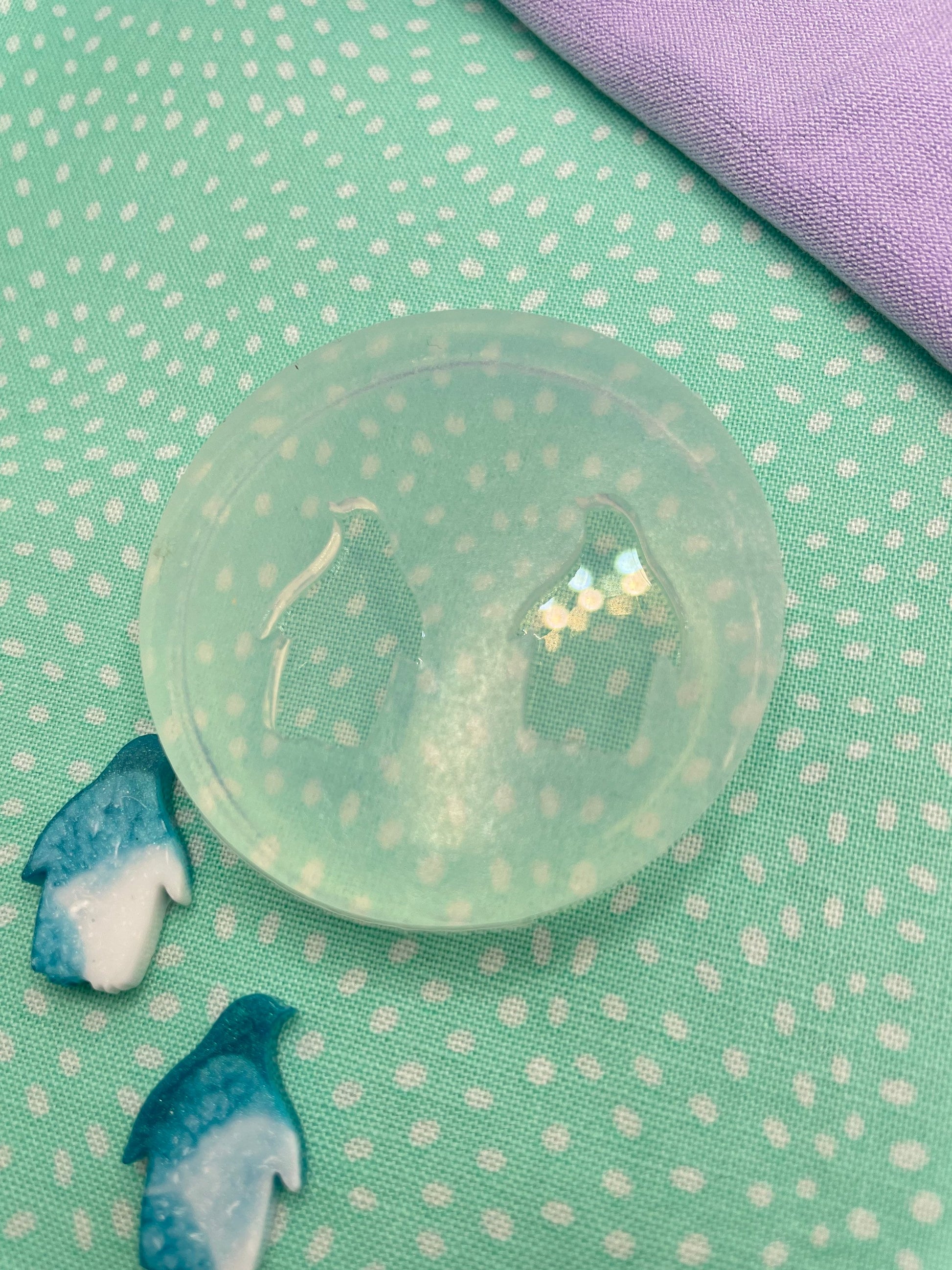 Although colored silicone molds with mica or glitter are very attractive, we usually don't recommend them because clear silicone molds give you a better vision as to what's going on inside e.g. trapped bubbles and so are more practical for resin artists. However, if you would like to get a colored mold, we have the pigment needed. Please contact us for more details.