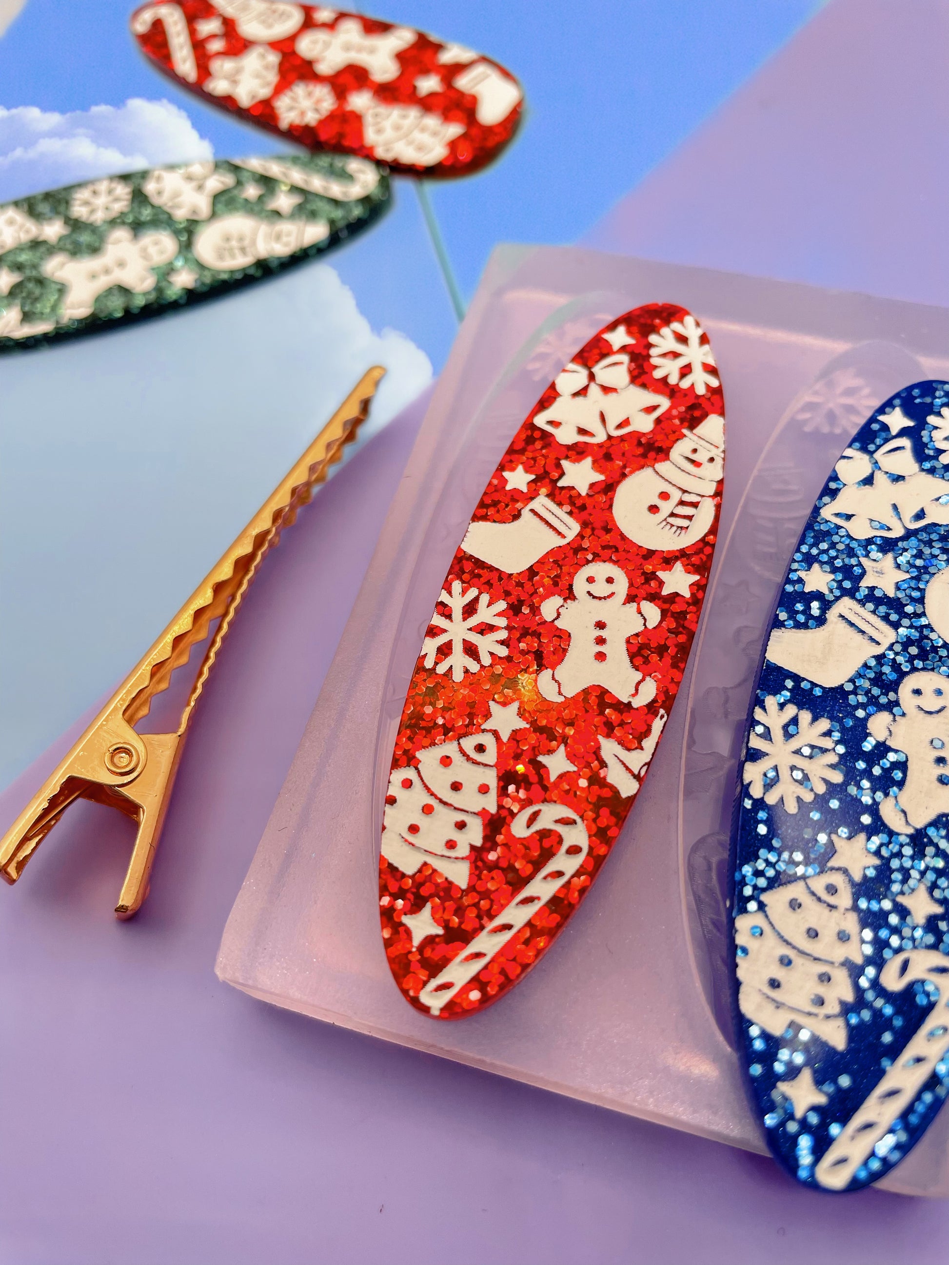 Christmas Themed Alligator Hairclip Barette Mold