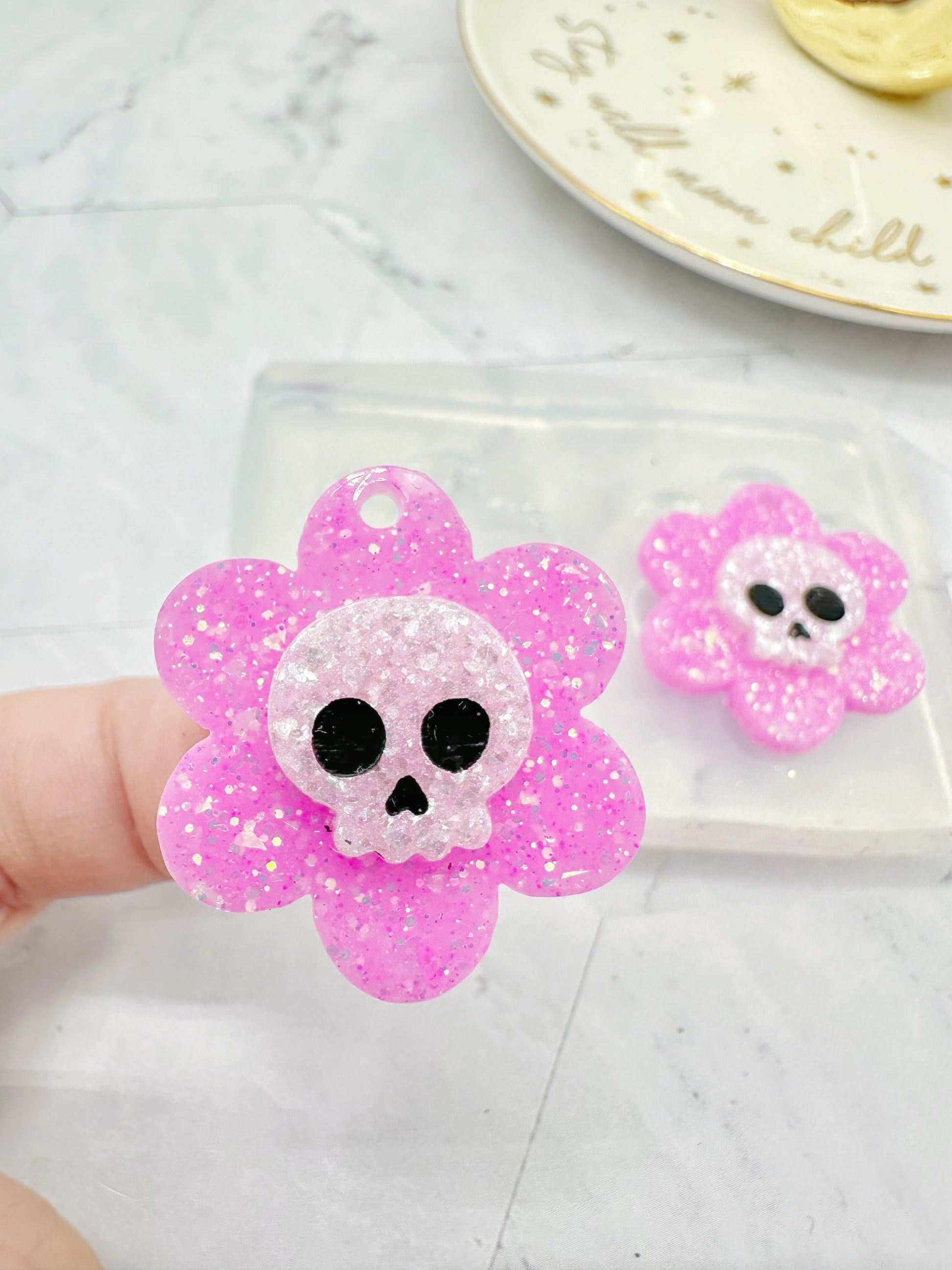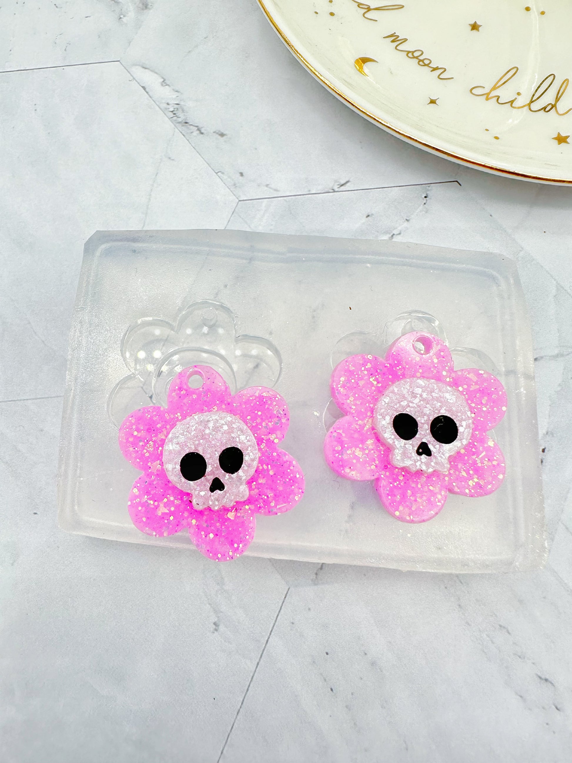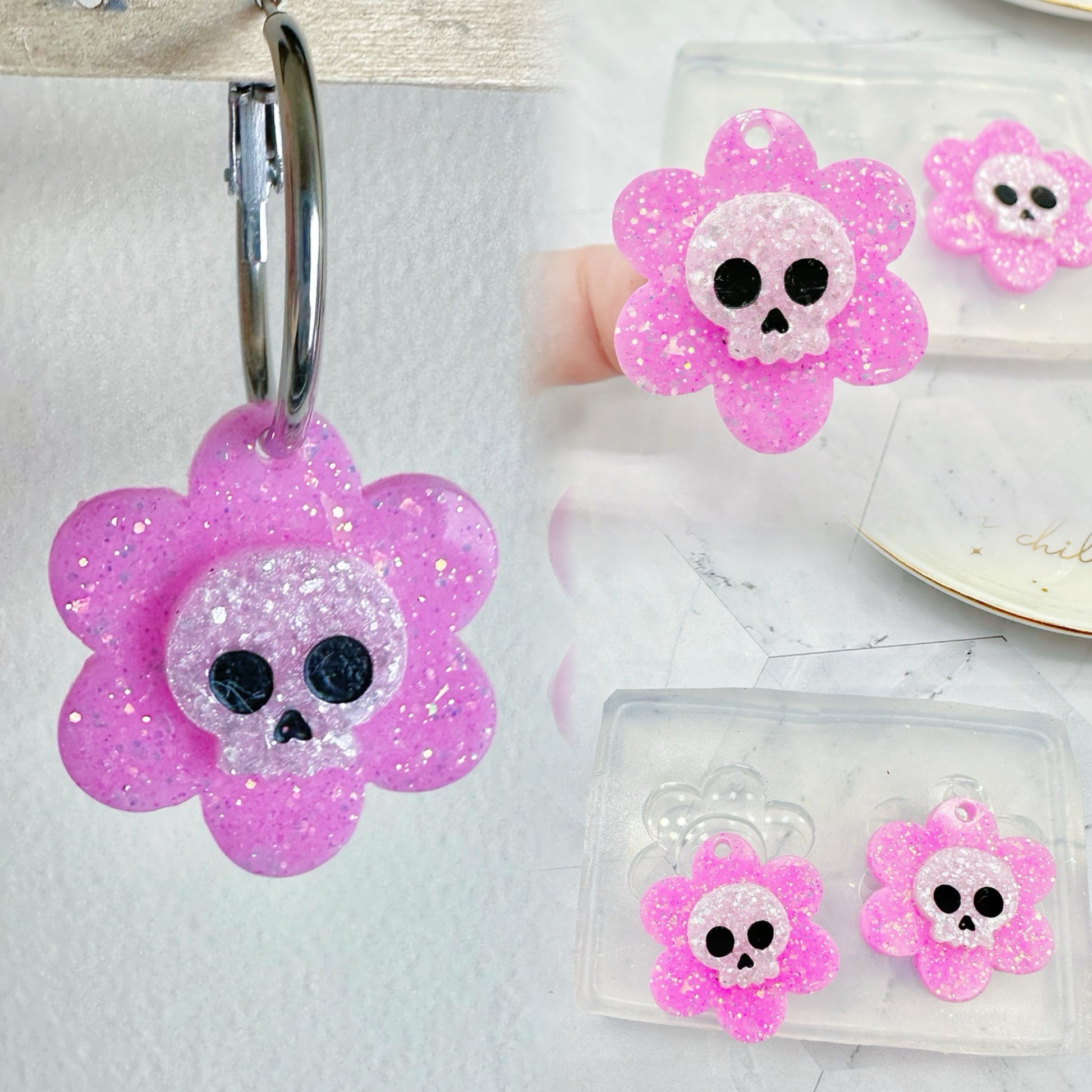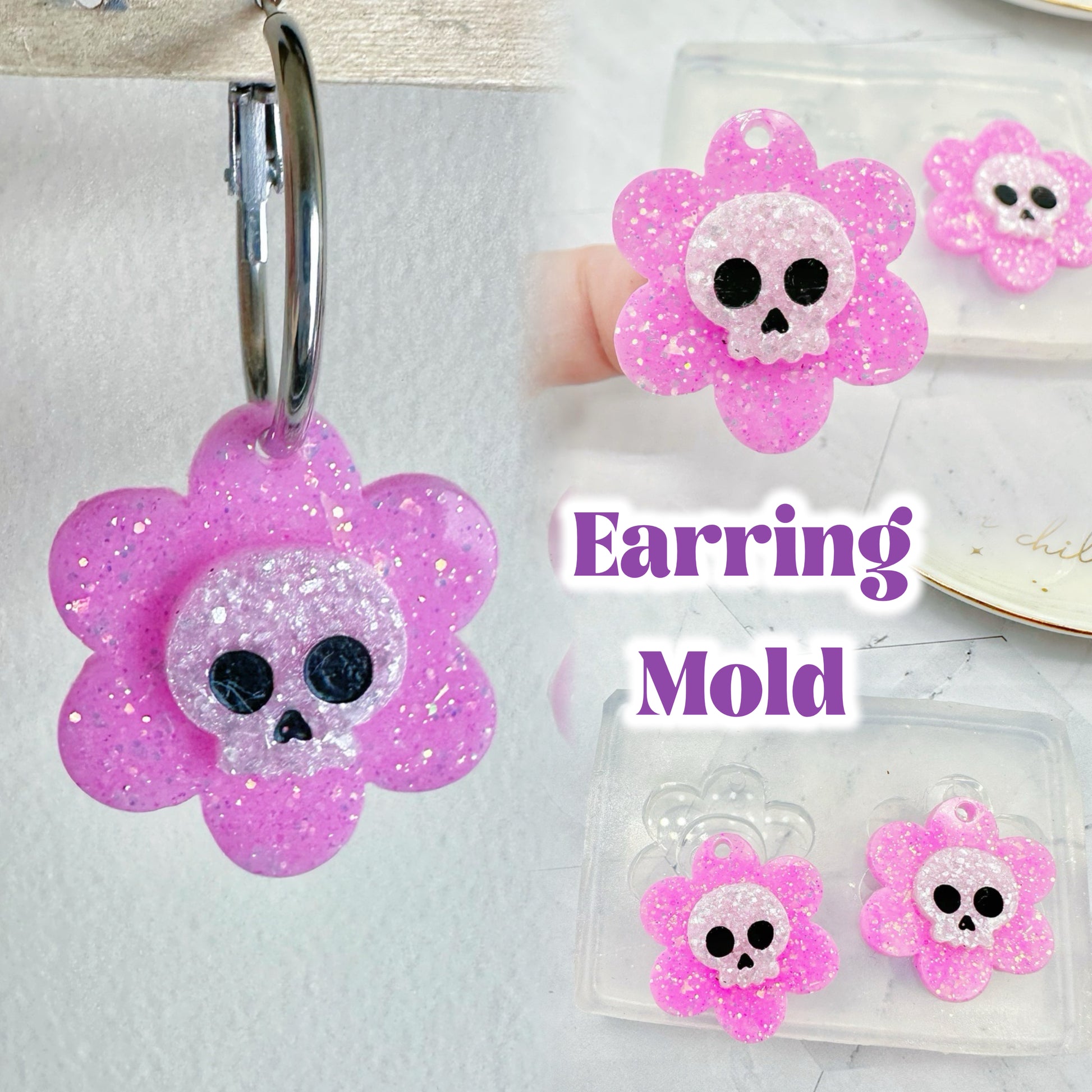 Cute Layered Skull Flower Dangly Charm Mold Dangle Earring Mold for Hoops