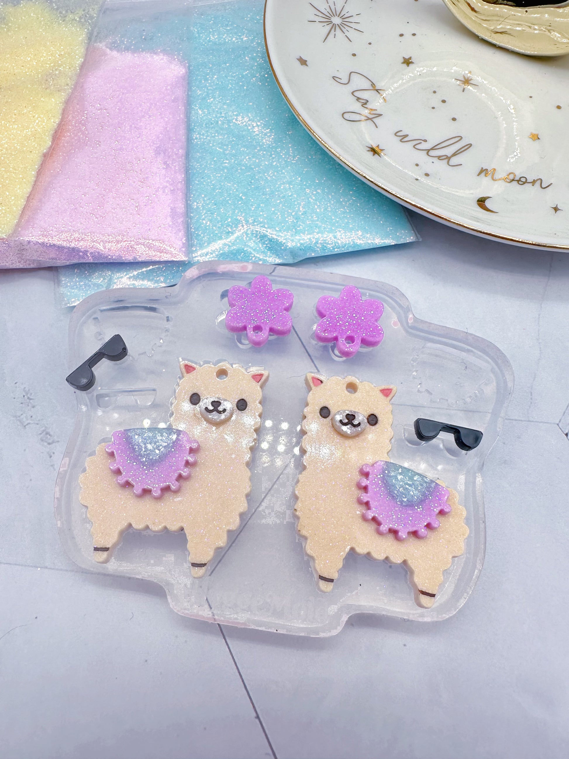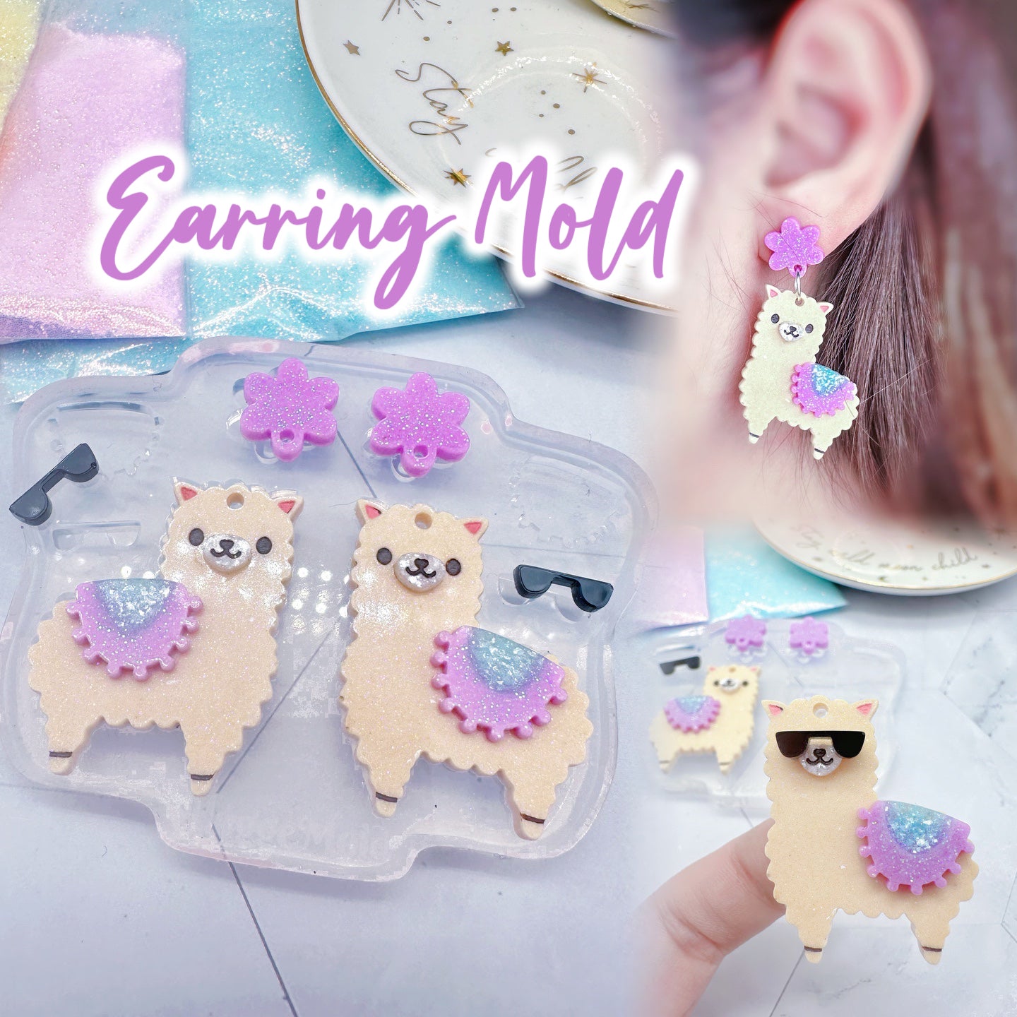 Cute Llama Alpaca Dangle Earring Mold with Flowers, Blankets, and sunglasses accessories