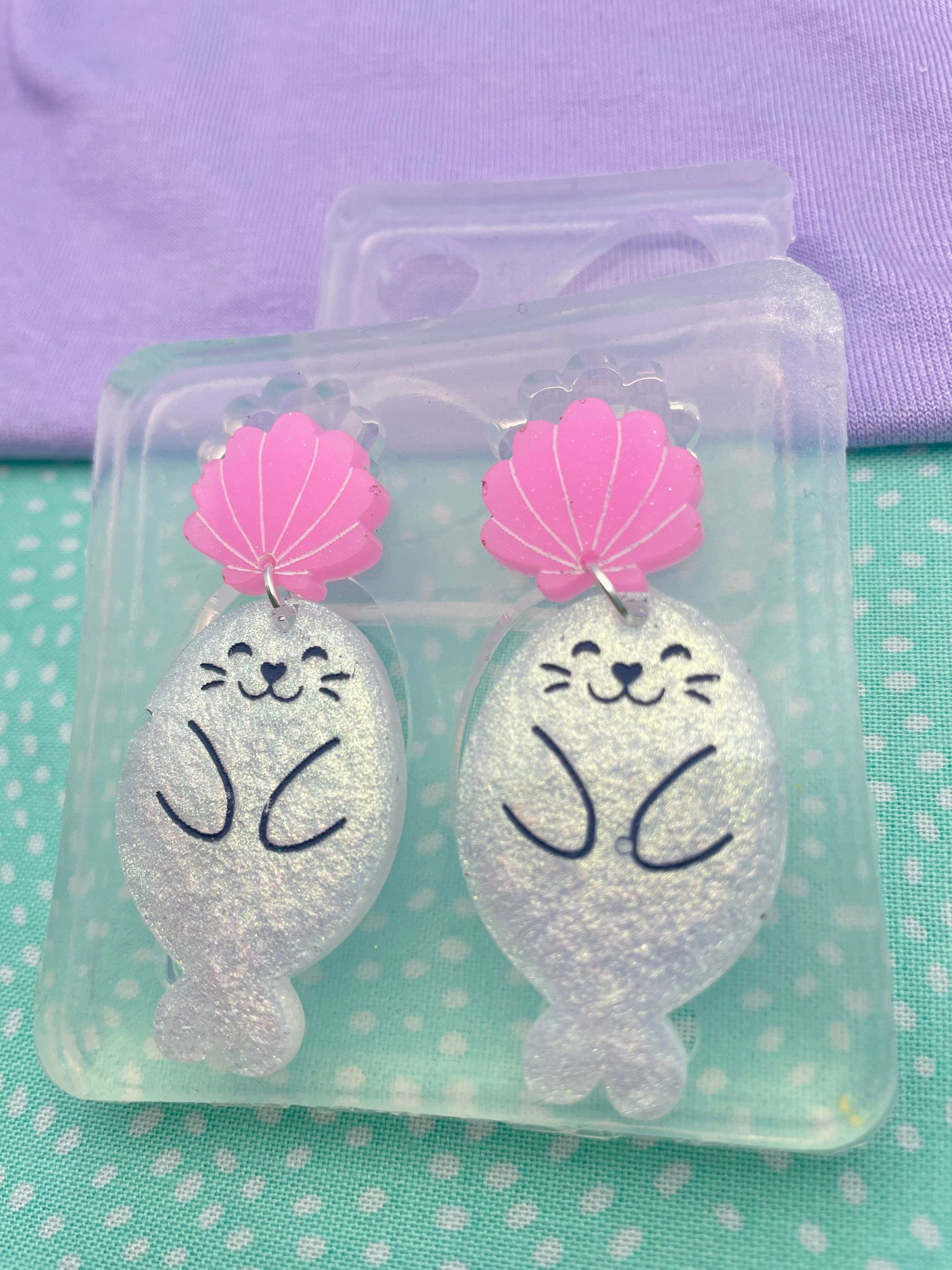 Engraved Shell and Seal Sea Lion dangle earring mold