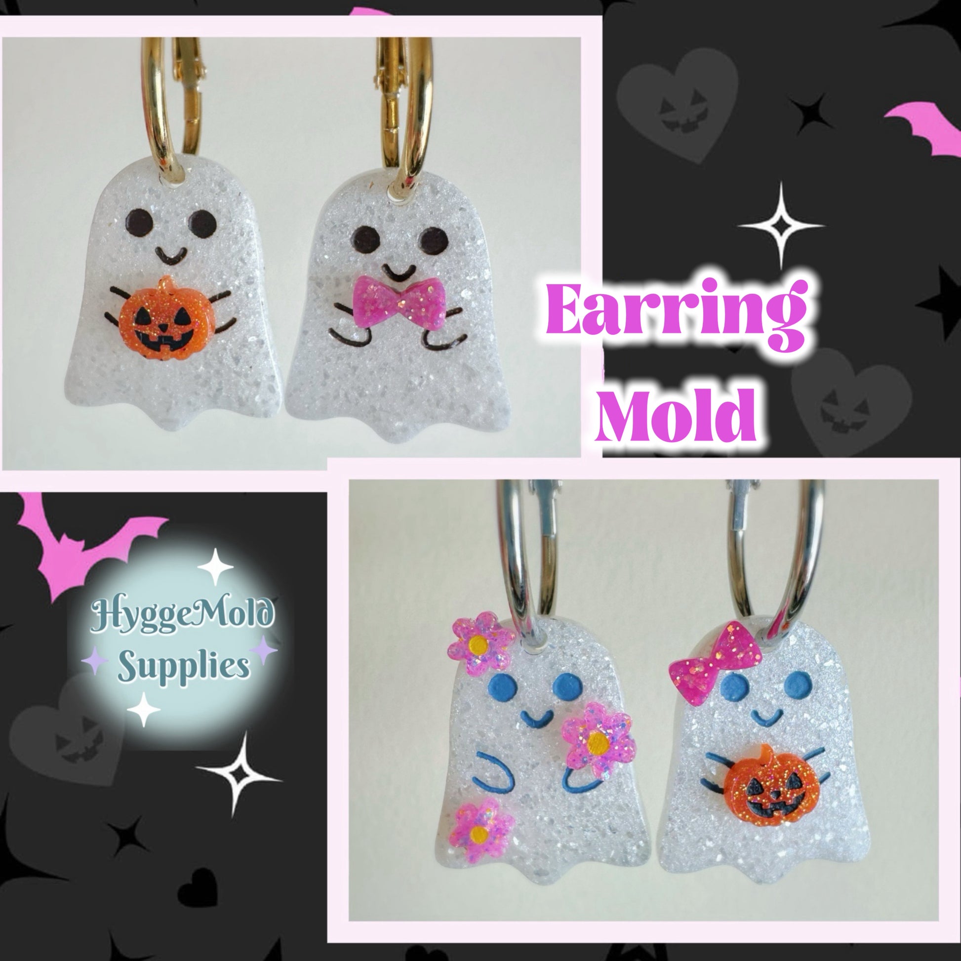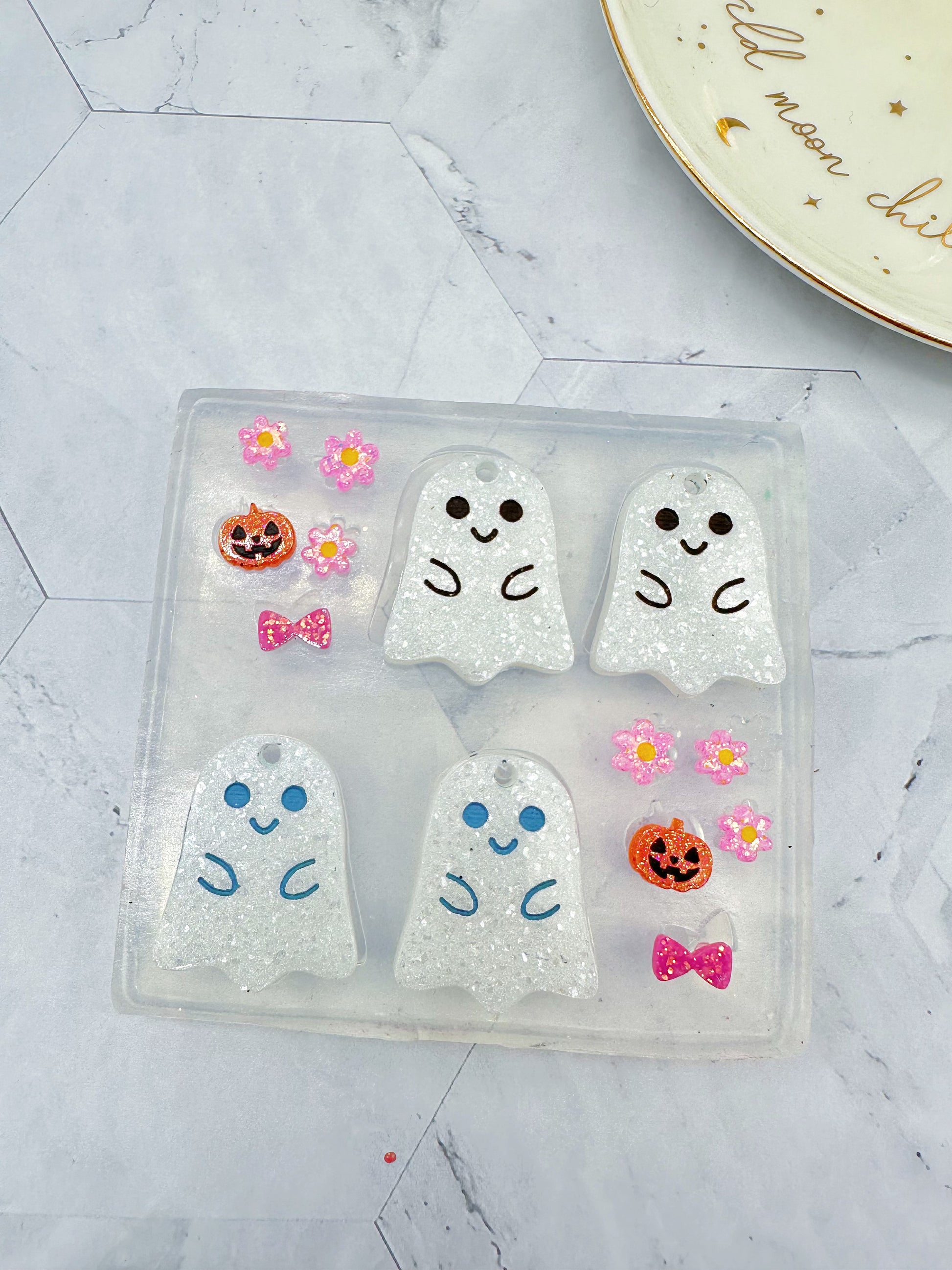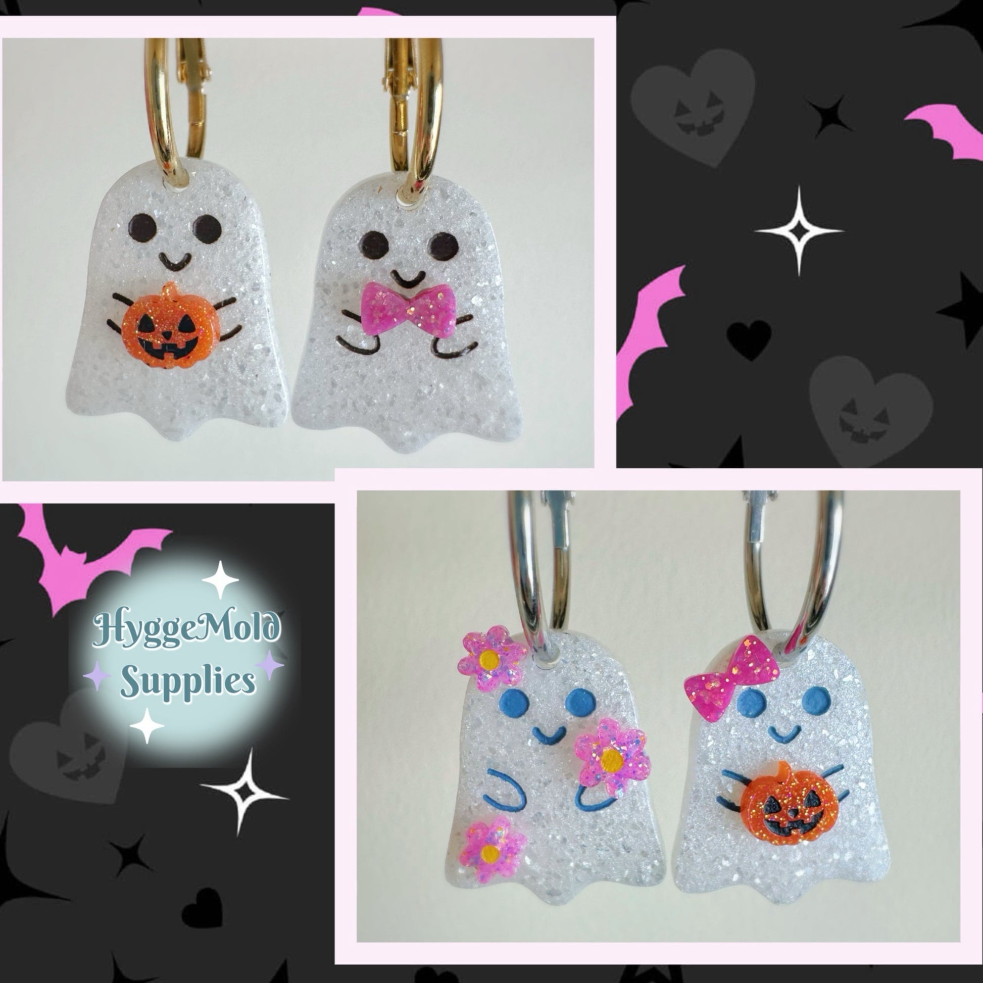 Cute Happy Baby Ghosts with Accessories Dangly Charm Earring Mold flower pumpkin ribbon bow