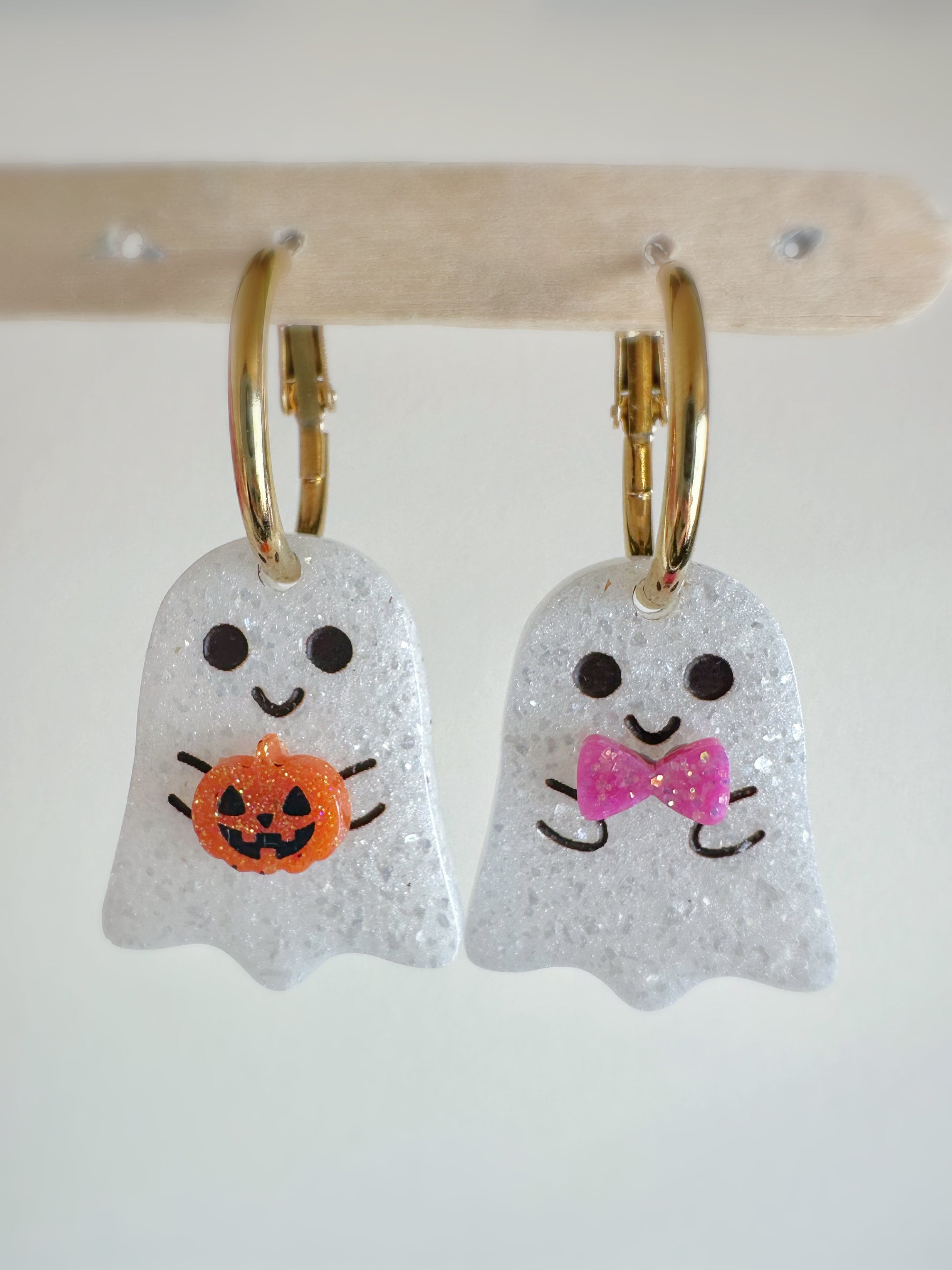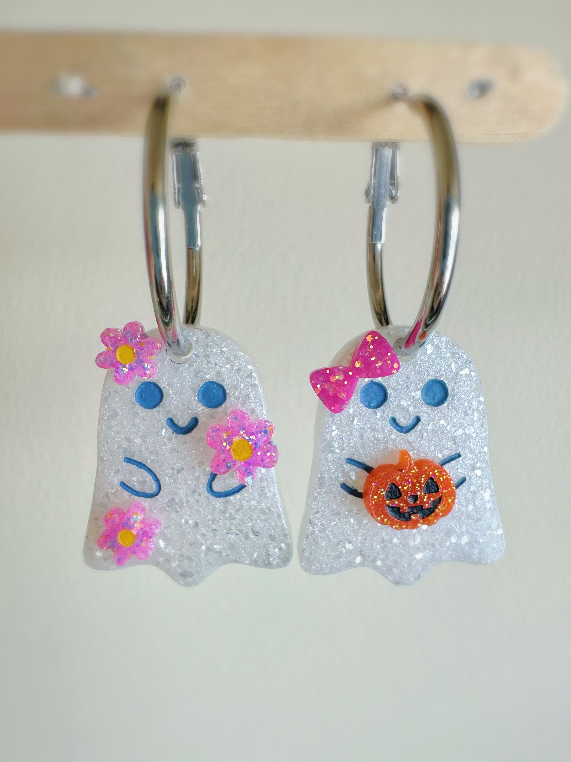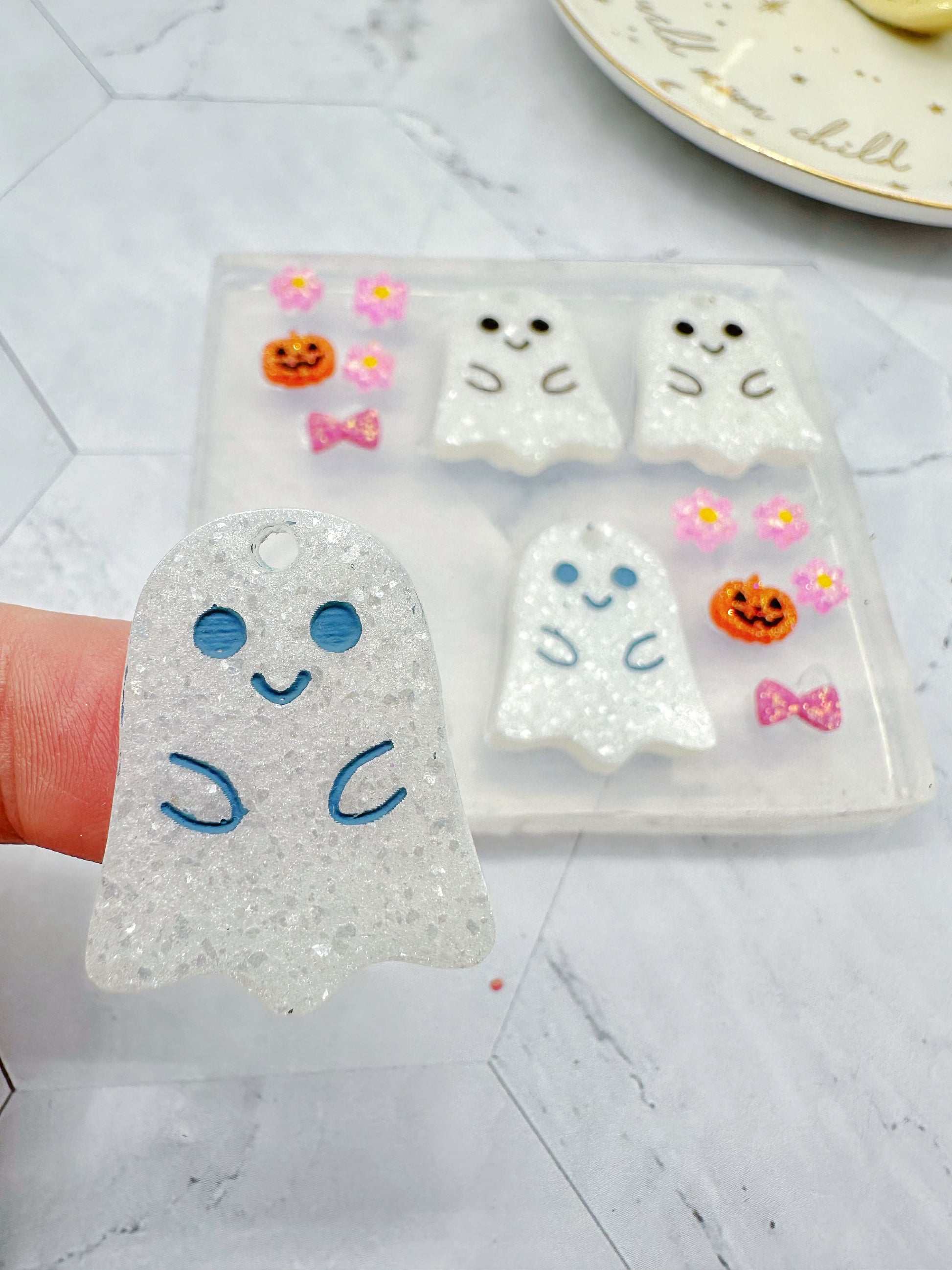 Cute Happy Baby Ghosts with Accessories Dangly Charm Earring Mold flower pumpkin ribbon bow
