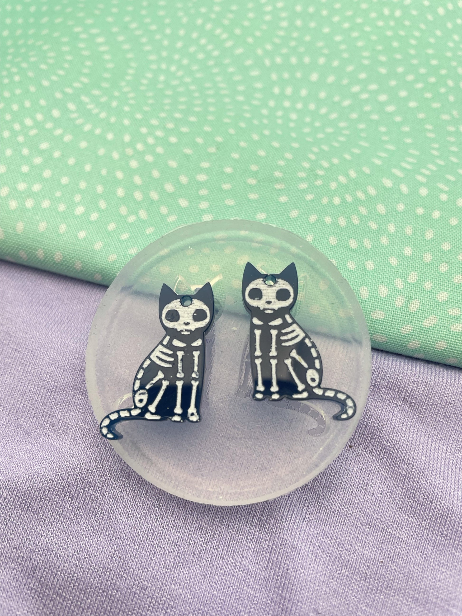 Halloween Gothic Skeleton Cat Dangle earring Mold