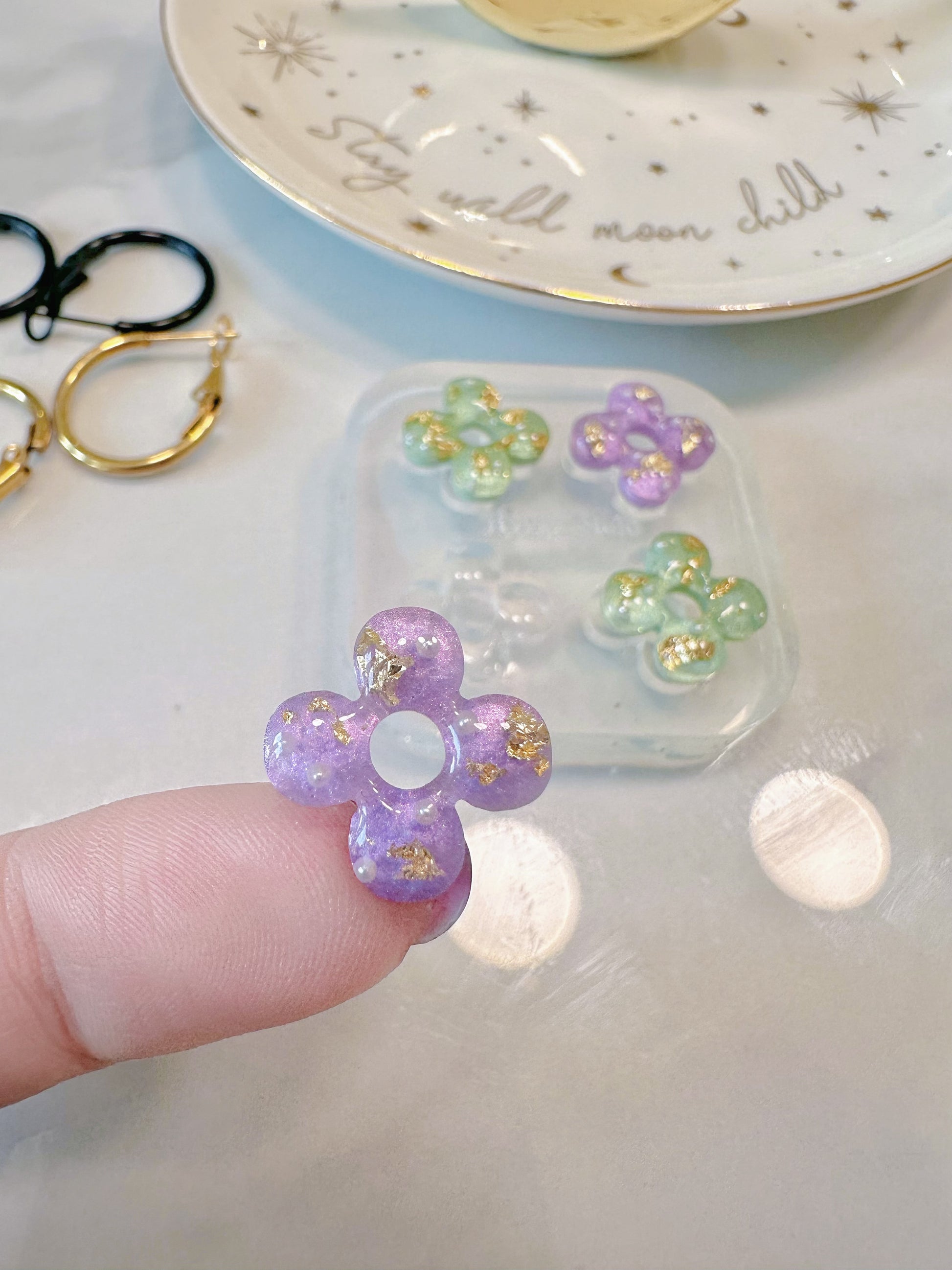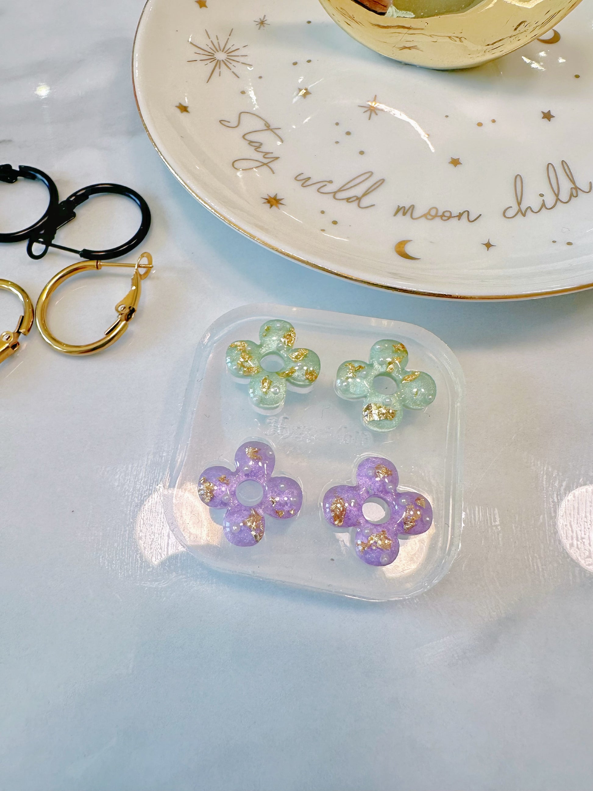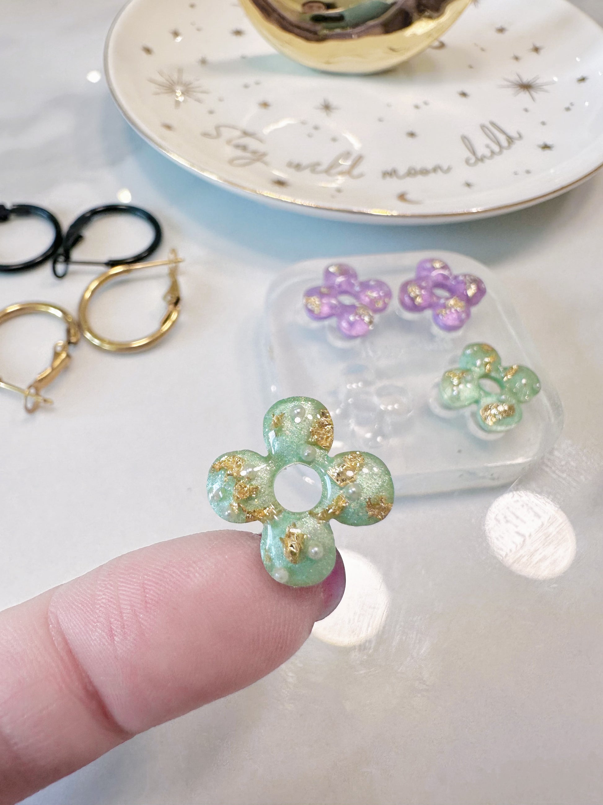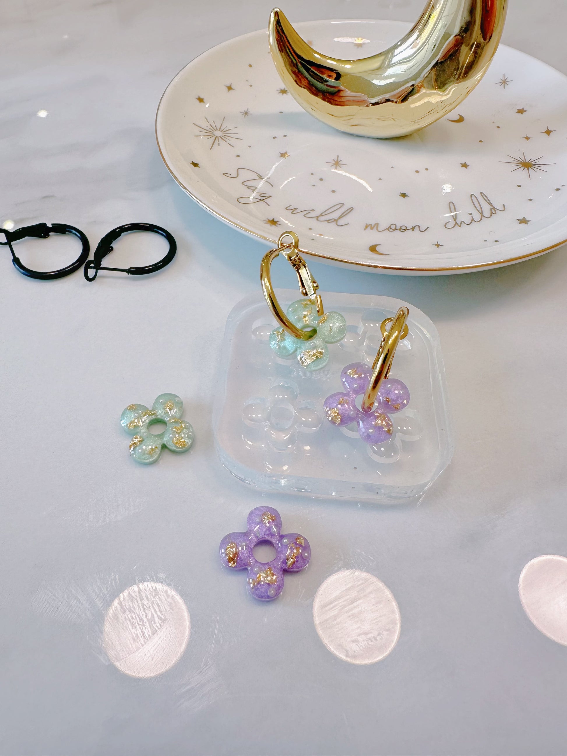 Mini dainty flower earring mold with predomed shiny finish! Perfect for creating demure studs or hoop earrings! Pair with our bestselling Stella hoops to create cute hoop earrings!