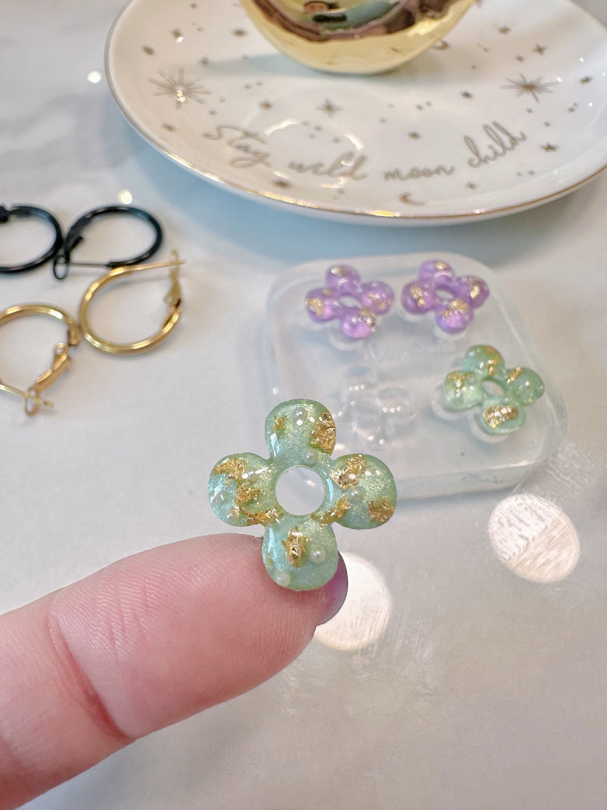 Mini 1.6 cm Predomed Clover Flower Stud Hoop Spinner Earring Mold