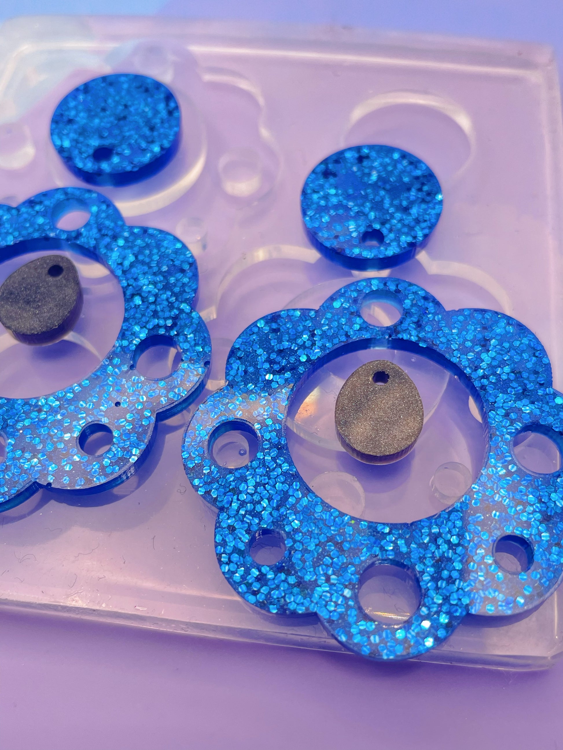 Although colored silicone molds with mica or glitter are very attractive, we usually don't recommend them because clear silicone molds give you a better vision as to what's going on inside e.g. trapped bubbles and so are more practical for resin artists. However, if you would like to get a colored mold, we have the pigment needed. Please contact us for more details.