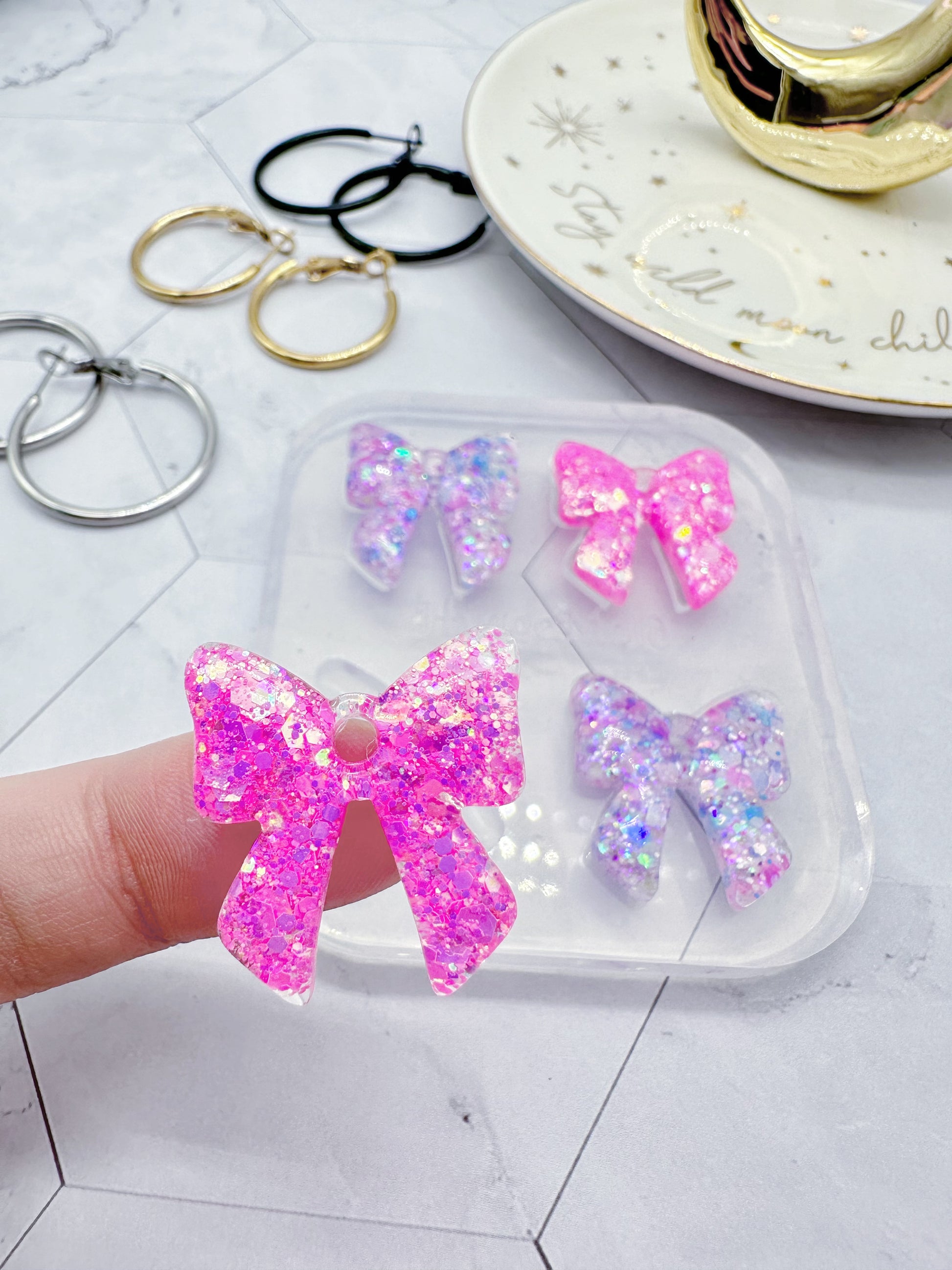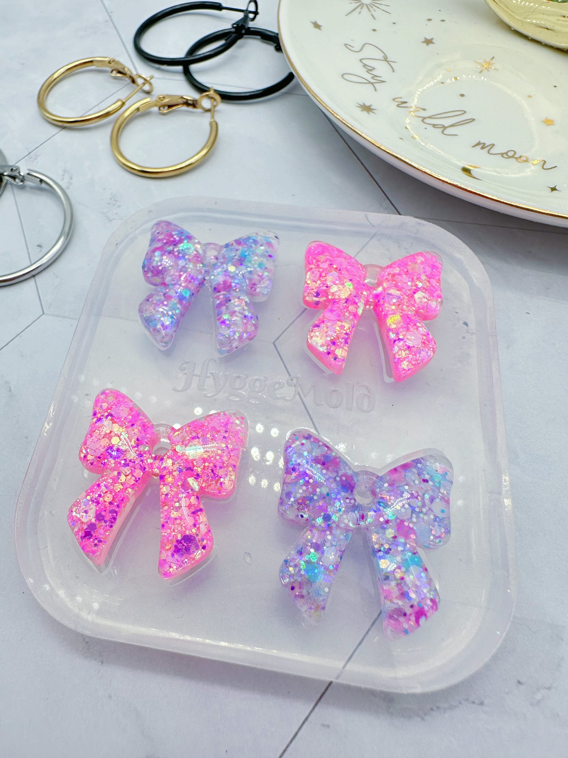 Pre domed Ribbon Bow Hoop Charm Dangle Earring Mold