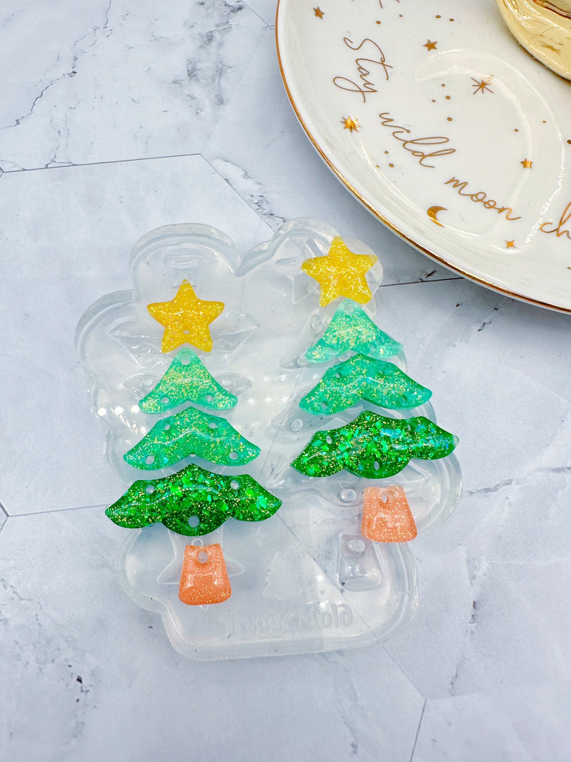 Create beautiful, unique dangly christmas trees with this high-quality mold giving a predomed, shiny finish!