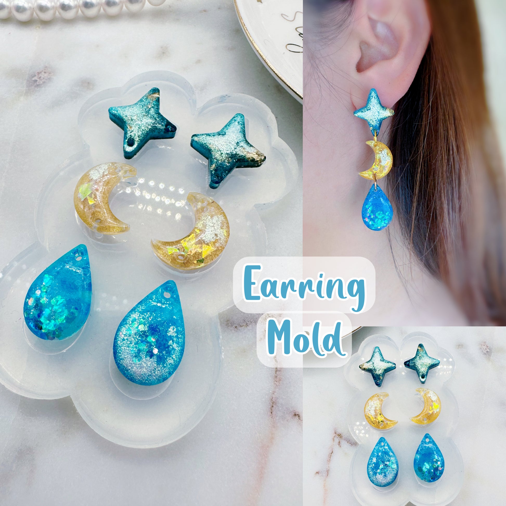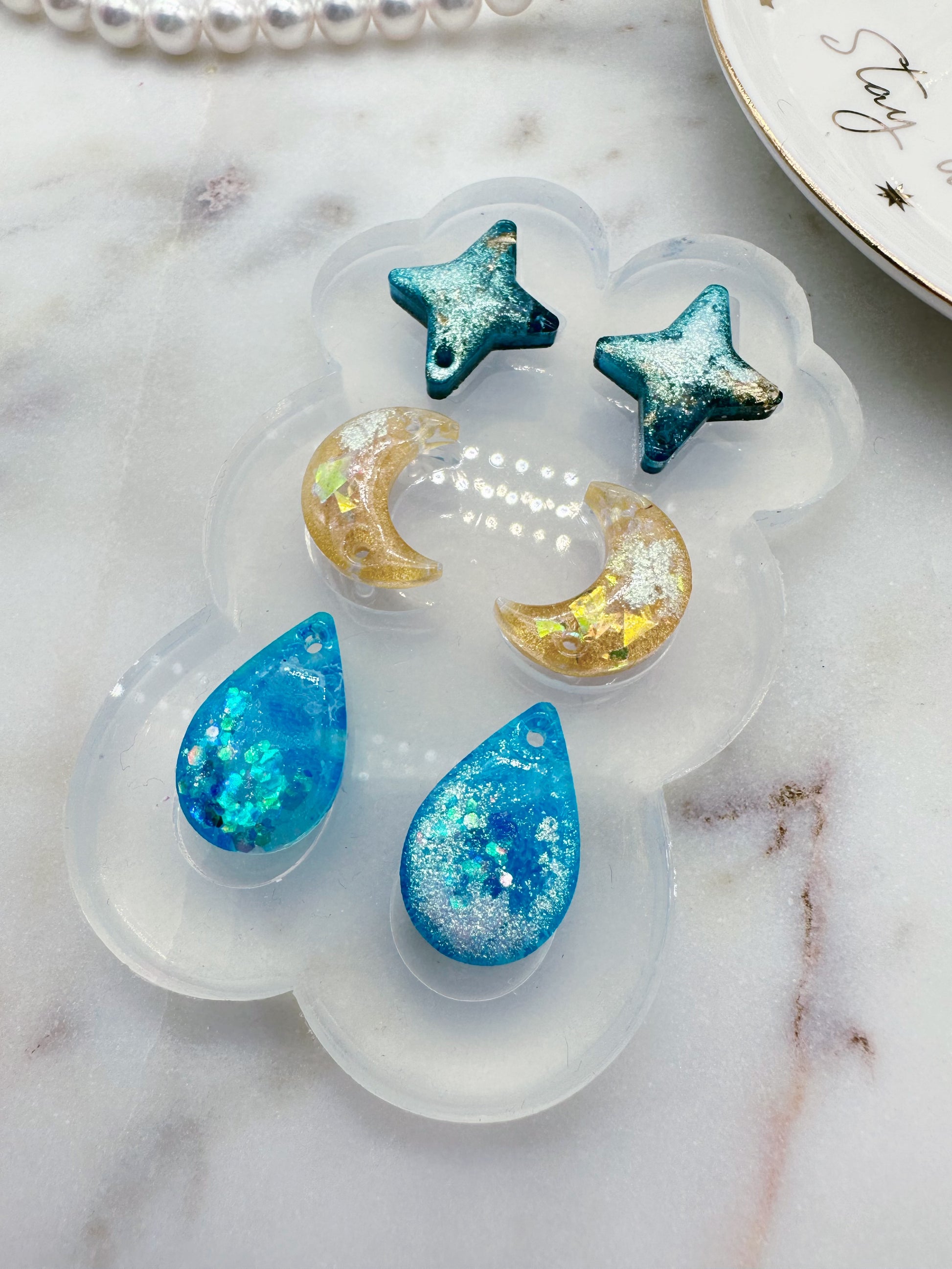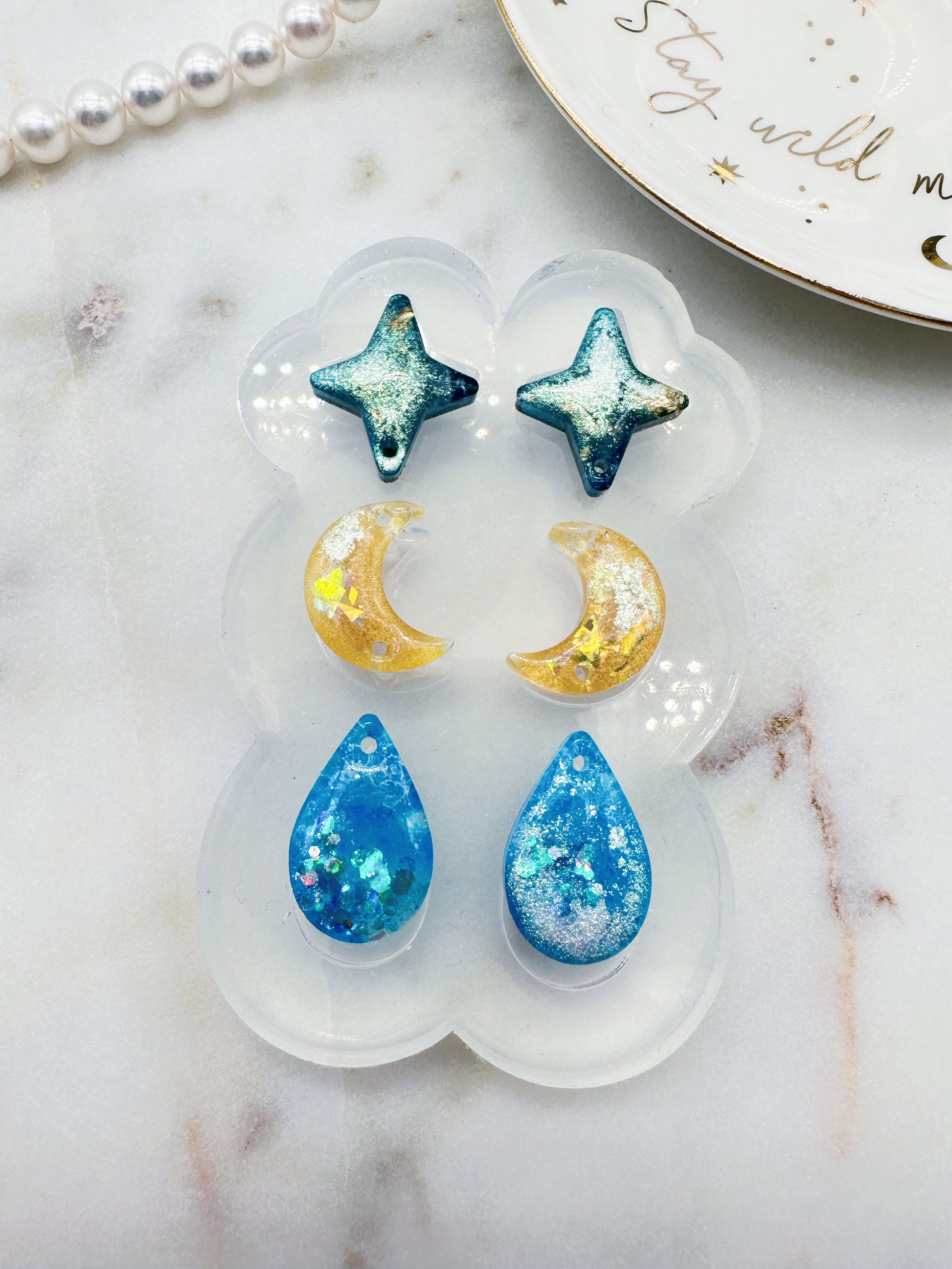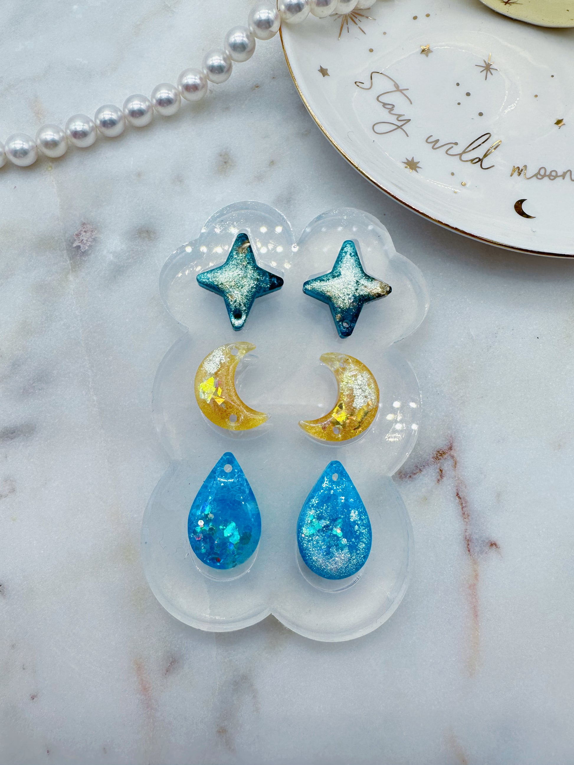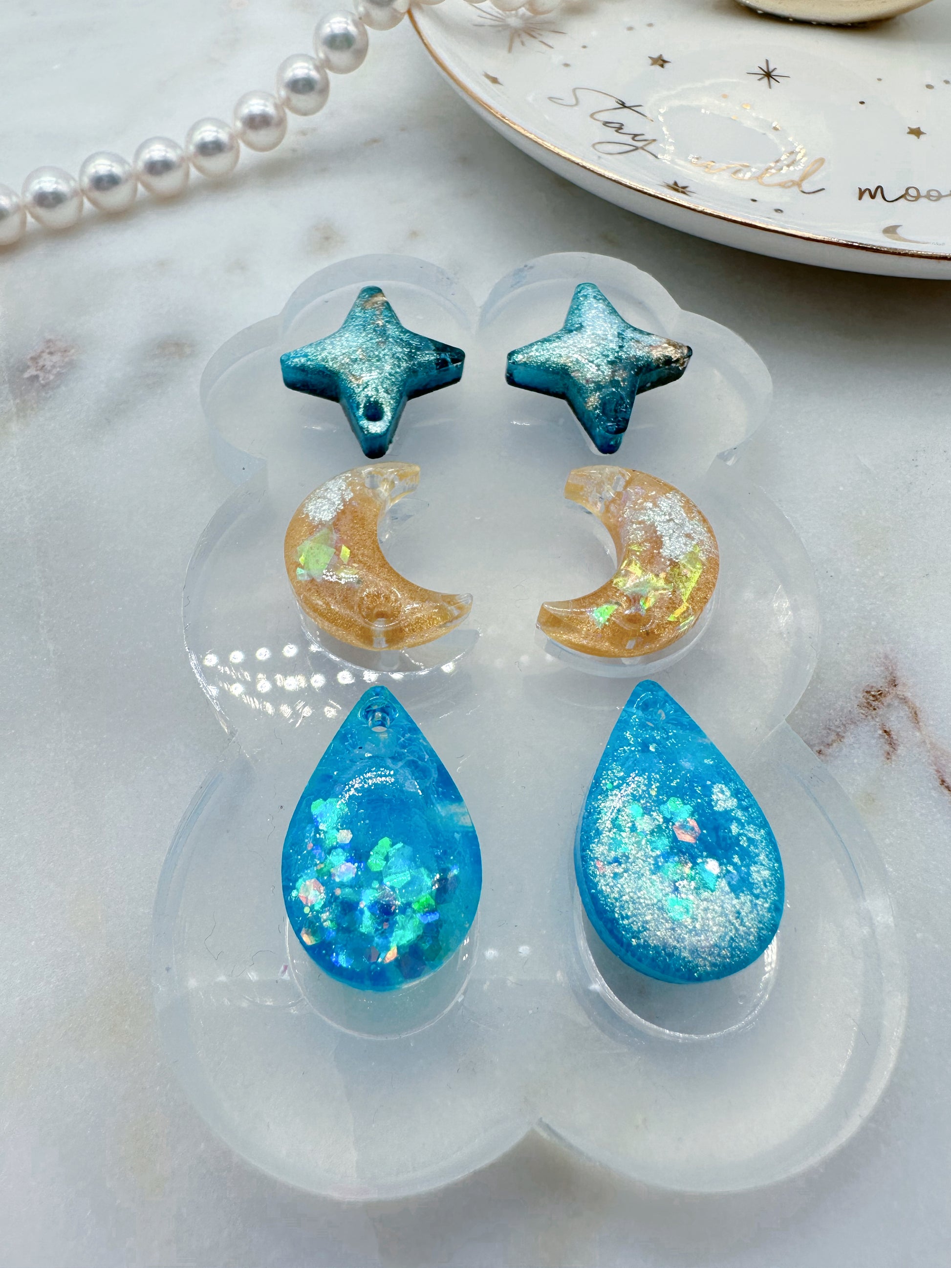 Get creative with these Predomed Triple Celestial Rain Drop Dangle Earring Molds! Perfect for making your own linear earrings that combine celestial elements with a beautiful long water drop shape, that will flatter your face shape. Their domed, shiny finish will make them a perfect accessory for everyday wear. Add a little celestial beauty to your life!