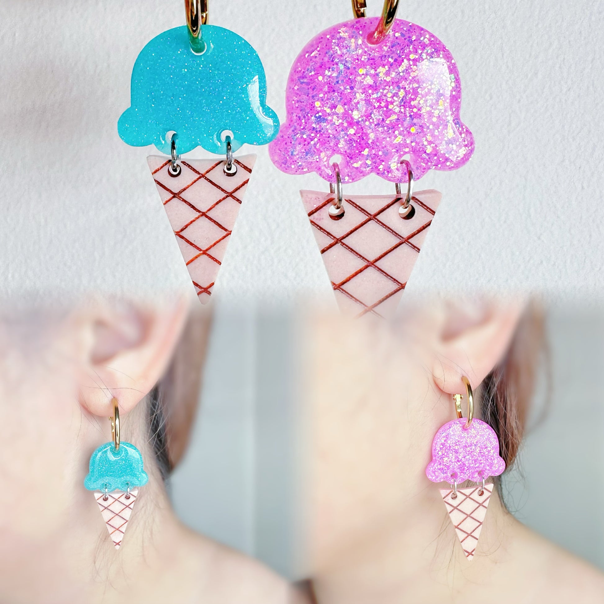 Predomed Two-part Ice Cream Scoop Cone Dangle Earring Hoop Charm Mold